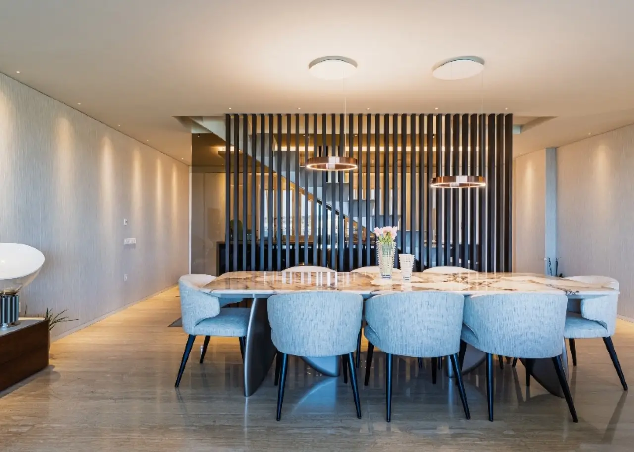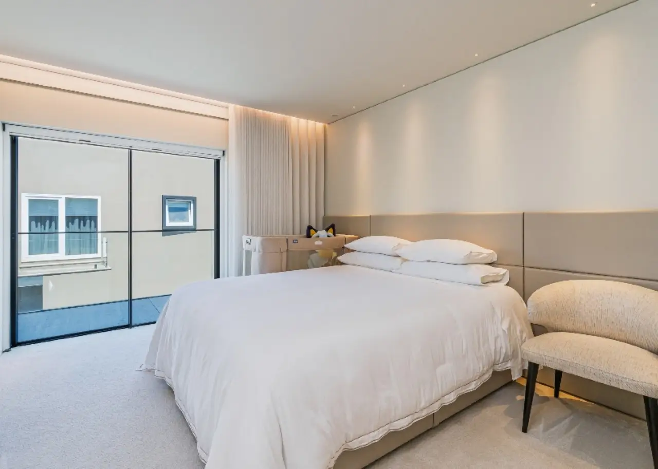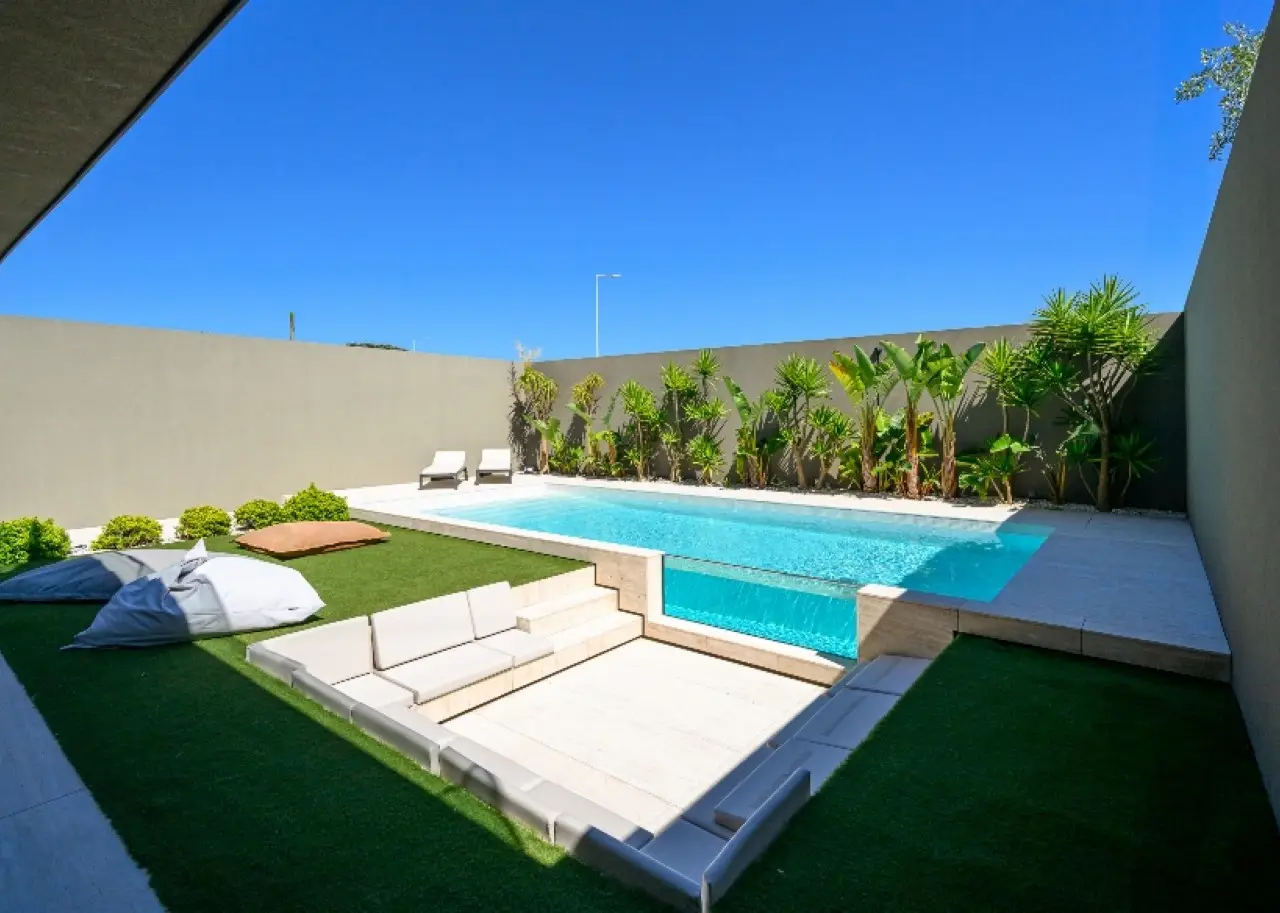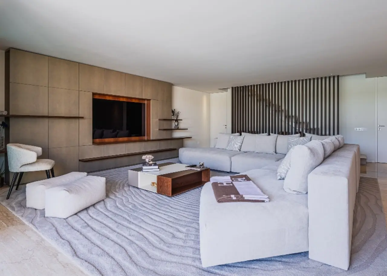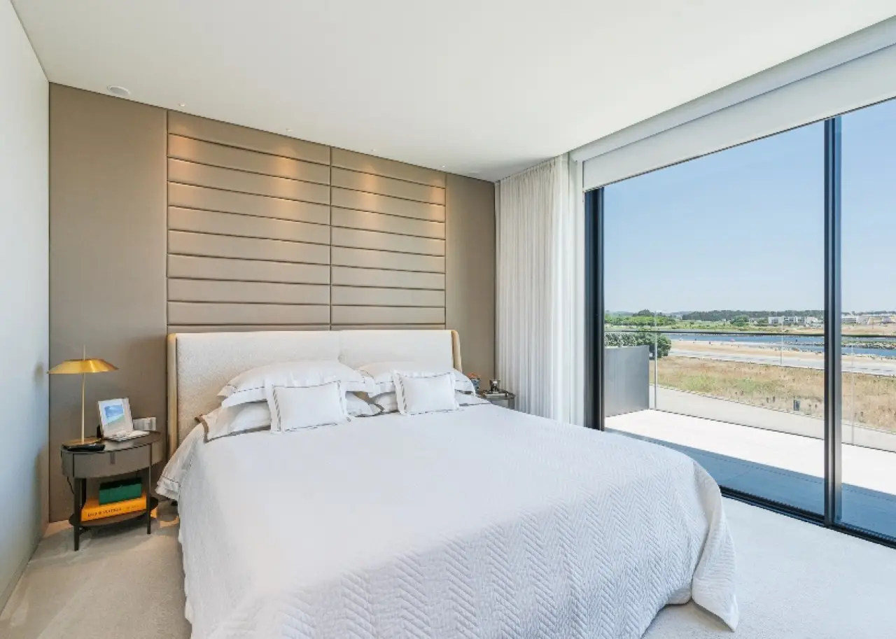 Located in a quiet, established residential area, this contemporary villa stands out for its sophisticated design, by one of Portugal's most renowned architects. It is in excellent condition and has high quality finishes. Spread over three floors, it benefits from privileged sun exposure and plenty of natural light throughout the day. On the top floor is the elegant master suite with dressing room and stunning sea views, accompanied by two other suites, both with access to private balconies. The entrance floor houses a modern open-plan kitchen , a guest bathroom and a large living room with a direct connection to a generous balcony, perfect for relaxing outdoors. The lower floor offers a pleasant private cinema room , which extends into the garden, where you can enjoy the heated swimming pool with ionization system . A unique property, ideal for those looking for comfort, privacy and a simply unforgettable view. CHARACTERISTICS: Plot Area: 359 m2 | 3 864 sq ft Deployment Area: 146 m2 | 1 576 sq ft Building Area: 379 m2 | 4 084 sq ft Bedrooms: 3 Bathrooms: 5 Garage: 3 Energy efficiency: C FEATURES: South-facing garden with swimming pool; Underfloor heating; Travertine marble floor.