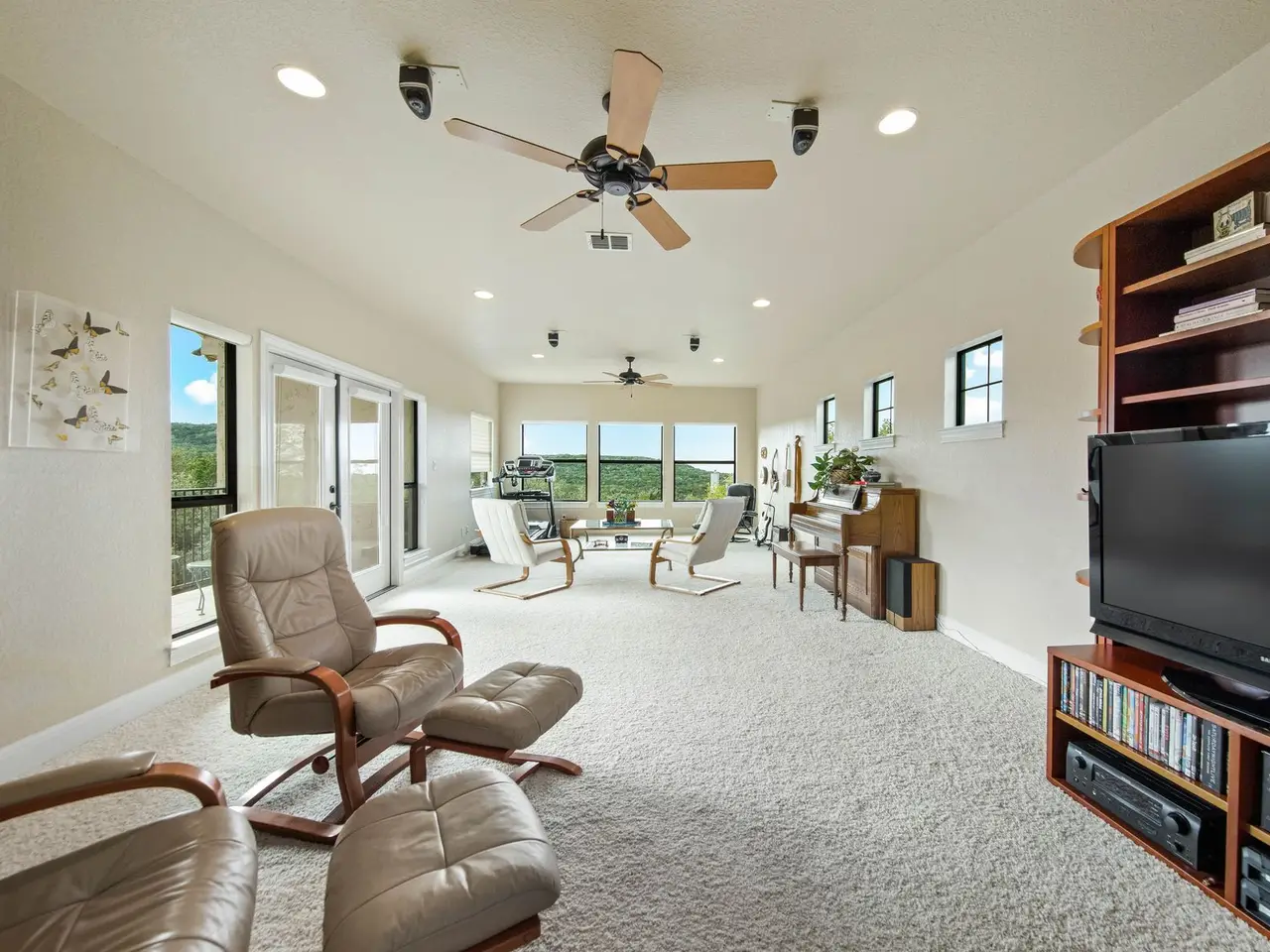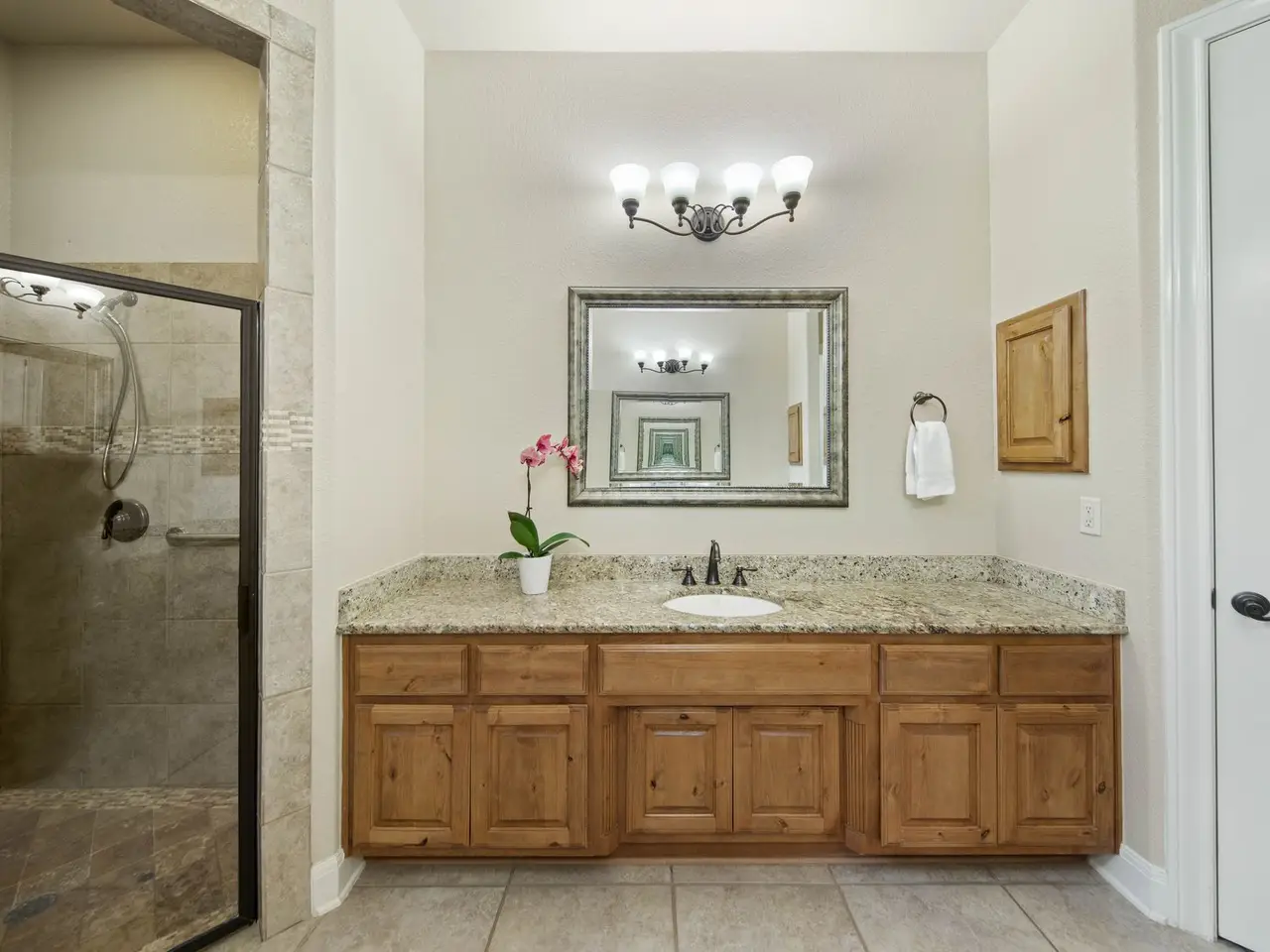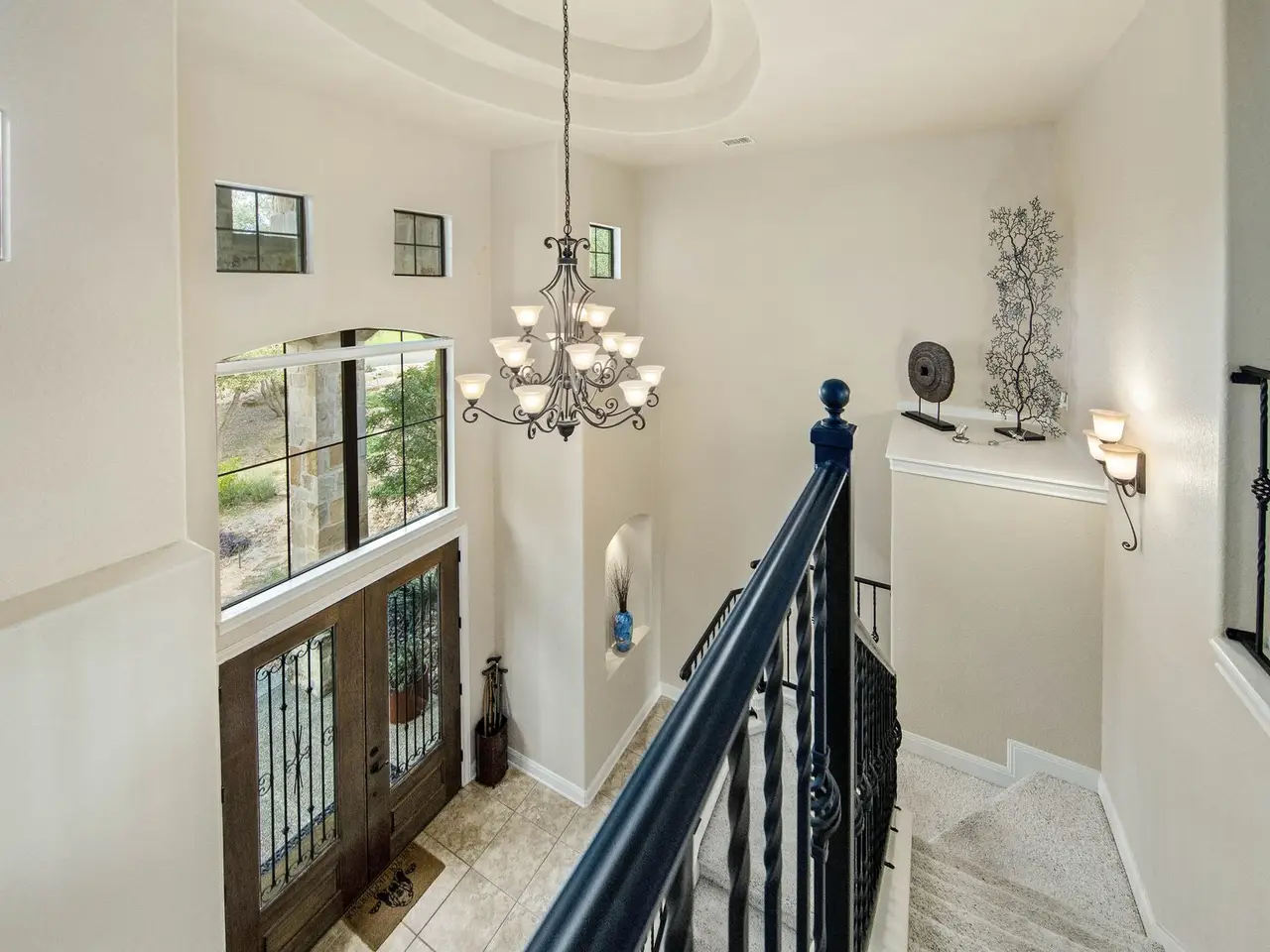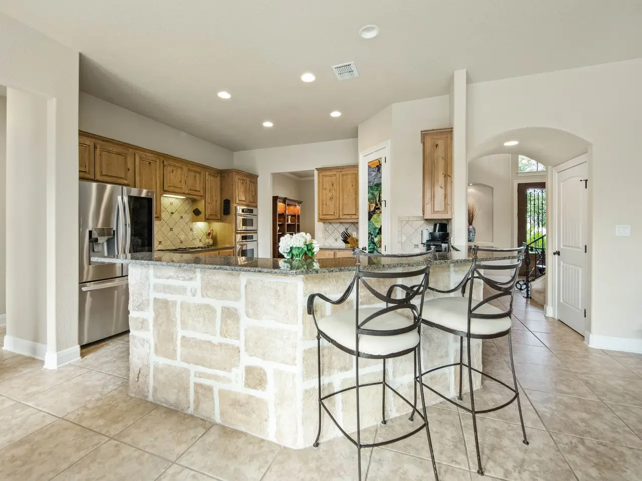 Located in the gated Shadow Canyon community, this beautiful Hill Country home offers approximately an acre of stunning Government Canyon surroundings with scenic views of the hill country. The home features a private study, formal and informal dining, a massive entertainment room with a private balcony, wrought iron details and custom fixtures throughout. The living area features beautiful travertine floors, a stone fireplace and oversized windows with views of the green outdoors. The granite kitchen provides ample counter space and storage with oversized granite counters and a breakfast bar, custom cabinetry, gas cooking, stainless steel appliances, a walk-in pantry and an open dining area with outdoor access. The primary suite offers beautiful hardwood floors and a private bath with massive granite double vanities, a luxurious soaking tub and walk-in shower. Outdoors, an oasis awaits with an expansive flagstone patio featuring an outdoor fireplace and kitchen overlooking your naturally xeriscaped backyard with stone walkways throughout. This stunning home also comes with a three-car garage equipped with a sink and electric vehicle charging capability. Community also features an observation deck with views of Government Canyon State Natural Area.