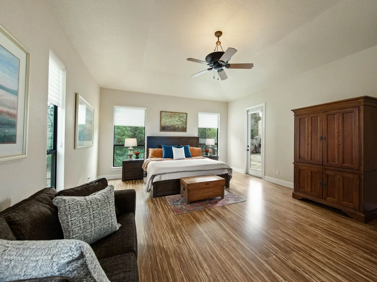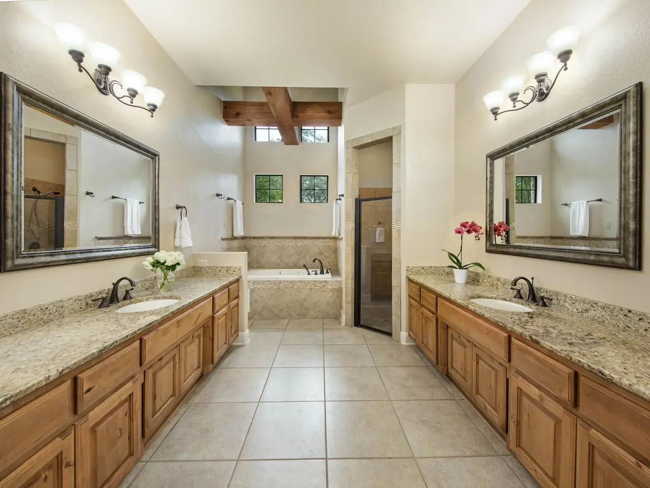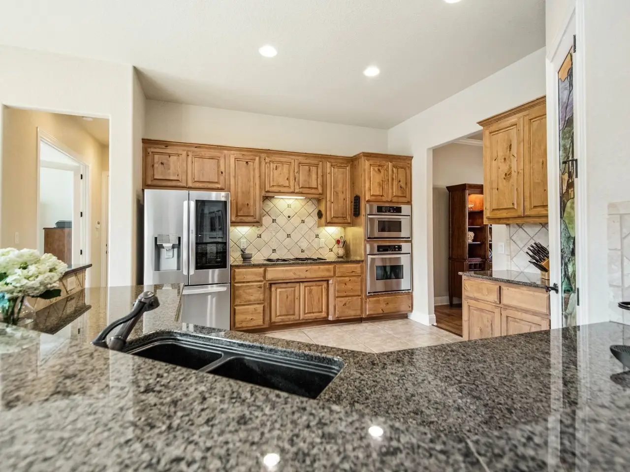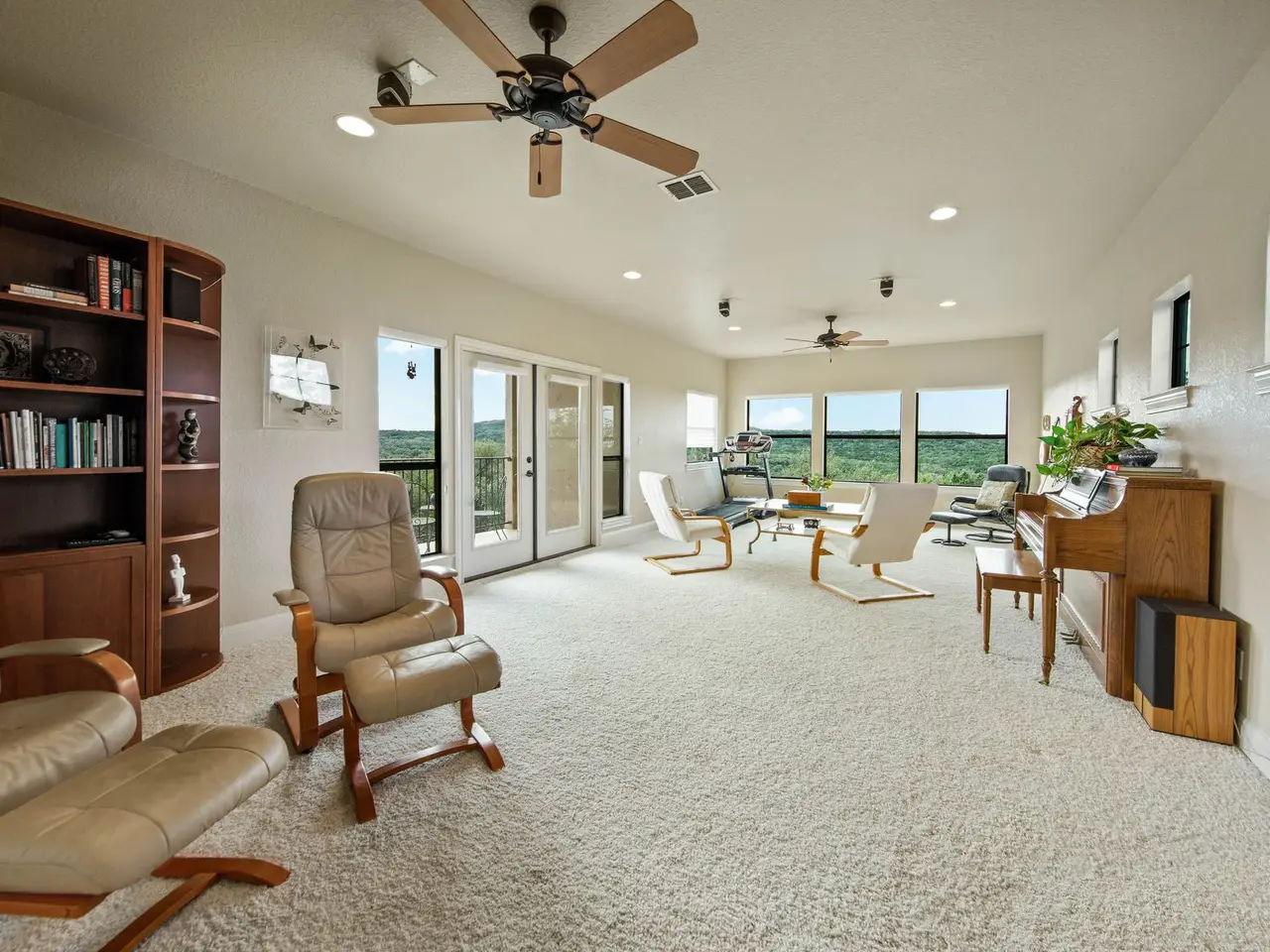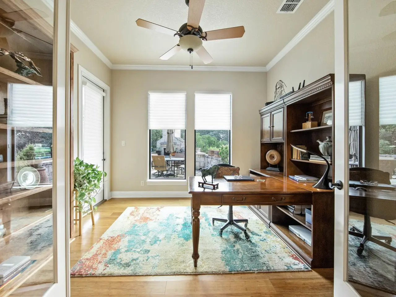 Located in the gated Shadow Canyon community, this beautiful Hill Country home offers approximately an acre of stunning Government Canyon surroundings with scenic views of the hill country. The home features a private study, formal and informal dining, a massive entertainment room with a private balcony, wrought iron details and custom fixtures throughout. The living area features beautiful travertine floors, a stone fireplace and oversized windows with views of the green outdoors. The granite kitchen provides ample counter space and storage with oversized granite counters and a breakfast bar, custom cabinetry, gas cooking, stainless steel appliances, a walk-in pantry and an open dining area with outdoor access. The primary suite offers beautiful hardwood floors and a private bath with massive granite double vanities, a luxurious soaking tub and walk-in shower. Outdoors, an oasis awaits with an expansive flagstone patio featuring an outdoor fireplace and kitchen overlooking your naturally xeriscaped backyard with stone walkways throughout. This stunning home also comes with a three-car garage equipped with a sink and electric vehicle charging capability. Community also features an observation deck with views of Government Canyon State Natural Area.