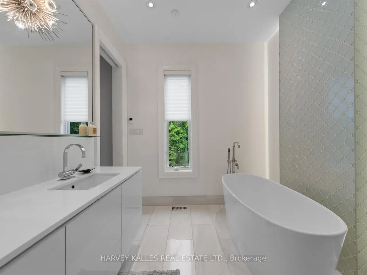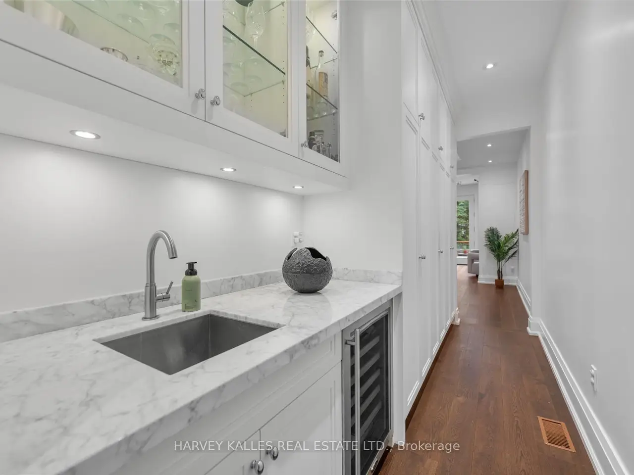Experience the timeless sophistication of a New York brownstone, reimagined in the heart of midtown Toronto. This bespoke builder's own residence showcases hand-finished limestone architecture and over 4,200 sq. ft. of interiors defined by 11 main floor ceilings, elegant proportions, and meticulous craftsmanship. An inviting marble mosaic entry hall introduces the home, where elegant French pocket doors reveal the chef's kitchen. At its centre, bespoke cabinetry is paired with book-matched marble, a large island, and a sun-filled breakfast area. A discreet walk-through pantry offers abundant storage along with a wine fridge, bar, and display. Expansive glass doors extend the living space to a private deck and landscaped yard - ideal for both refined entertaining and everyday living. Elegant curves throughout, including a sweeping staircase, lend architectural drama, while solid core wood doors and a built-in Bose surround system underscore the home's quiet luxury. A dedicated space alongside the staircase also allows for the addition of a private elevator. Upstairs, with soaring 10 ceilings, the oversized primary suite is a sanctuary complete with an expansive dressing room and dual spa-inspired ensuites joined by a dramatic walk-through shower. Two additional bedroomseach with its own ensuitecomplete this level, including one with a private study ideal for a home office, reading nook, or serene retreat. The versatile lower level features a bright recreation room/gym, guest bedroom, full bath, laundry, and direct access to the double garage. This home delivers a rare blend of convenience and sophistication. Perfectly positioned close to synagogues as well as Toronto's elite public and private schools, this residence offers both lifestyle and locationjust moments from downtown. A residence of rare distinction for those who value timeless design, craftsmanship, and modern comfort.