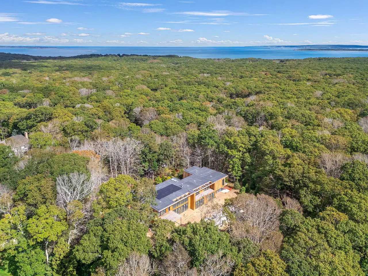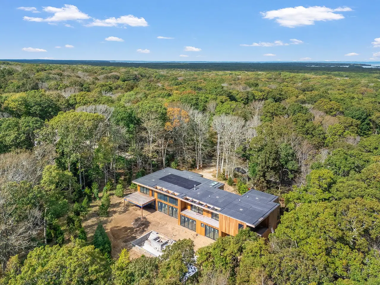 This refined modern is unparalleled. Set on 1.67 acres within the coveted Bell Estate in Amagansett and bordering over 50 acres of reserve, the setting affords exceptional privacy and a locational advantage you will love. A perfectly positioned residence just minutes to Amagansett's Main Street, the ocean, and the bay. Meticulous execution, thoughtful design, and noticeable attention to detail throughout this new construction, the results showcase natural light, embrace the surroundings, and seamlessly blur the lines between indoor/outdoor living. The minimal exterior offers clean lines and texture, beginning with its vertical grain clear cedar siding, custom-milled cedar screens and floor-to-ceiling windows and doors. A dramatic architectural overhang at the rear elevation filters the light and adds rhythm to terraces and balconies below. A stunning custom 50' gunite pool with lap lane, spa, and sun shelf anchors the backyard along with a pergola-covered lounge offering welcoming shade on a hot summer's day. Mature native landscaping enhances and surrounds the abundance of exterior living space with over 3,000 square feet of terraces including a covered outdoor kitchen and dining area, bluestone patios, Ipe balconies, and an upper sundeck. Inside, clean lines meet sumptuous and enduring materials. From the second-floor mezzanine one can fully appreciate the impressive main living area. A 20' vertical clear cedar wall defines the dining area, while a double-height window wall brings the outdoors in. A STUV wood-burning fireplace encased in statuary marble is the perfect transition from the great room to the spacious den. Features include 7' wide white oak flooring, 9' interior doors, recessed silo lighting, and a striking steel-and-oak mono-stringer staircase. The home spans approximately 10,000 square feet across three finished levels. Eight ensuite bedrooms include a first-floor primary suite, second-floor primary, and junior primary. All feature walk-in closets, floor-to-ceiling glass sliding doors, and access to private or semi-private outdoor spaces. Spa-caliber bathrooms, with full-height natural stone and marble tile, cedar accents, floating white oak vanities, brushed nickel fixtures, Robern medicine cabinets, freestanding tubs, and integrated custom mirrors with vertical lighting. Natural light continues all day in the fully finished lower level with an east and west facing sliders, plus oversized windows. Here indulge in your own private wellness suite including a mirrored fitness studio with ballet barre, cedar-walled sauna with glass panel, separate steam room, and custom stainless steel Reiki soaking tub. Additional amenities on this level include a modern wine room, wet bar, media space, and expansive recreation lounge. Back on the main level, the kitchen is a work of art and is made to entertain. The Henrybuilt kitchen offers refined aesthetics with exceptional function; an oversized fluted white oak island, statuary marble countertops and backsplash, and integrated Gaggenau appliances, including wine column, induction cooktop, wall ovens, and fridge. A discreet auxiliary kitchen offers matching finishes, Miele and Gaggenau appliances, a gas range with custom steel hood, coffee bar, and utility island. Adjacent mudroom, side entrance, and laundry room add everyday convenience. Engineered and fully equipped for longevity and efficiency, the home features a Lutron RadioRA smart system for app-controlled HVAC, lighting, AV, and pool. All bedrooms and living spaces are AV/media ready. Additional green features include spray foam insulation, whole-home water filtration, a 10kw solar array, and a HERS-rated energy performance build. Set for completion late fall 2025 within Bell Estate in Amagansett. Listing ID: 923878