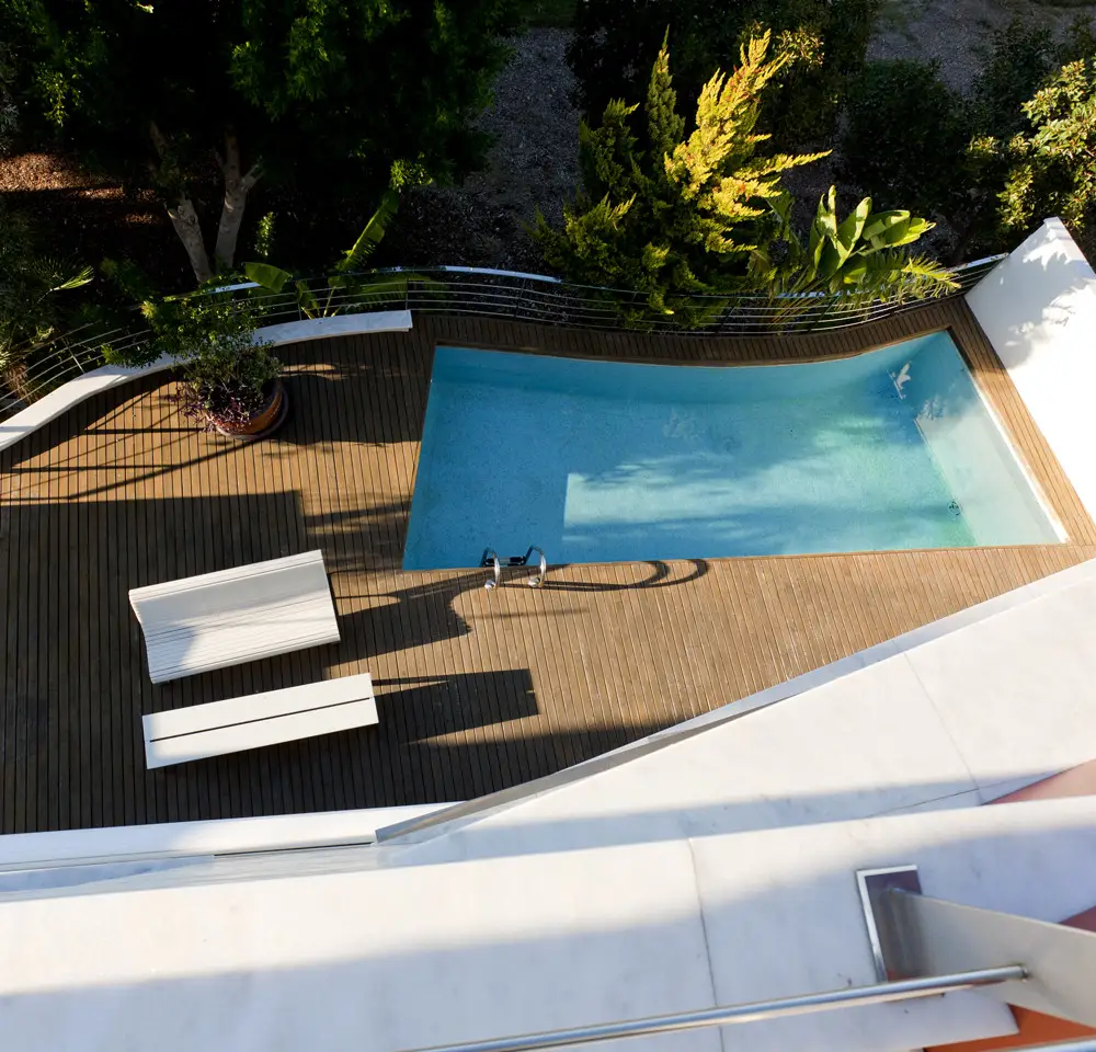 • Teak wood surrounding swimming pool