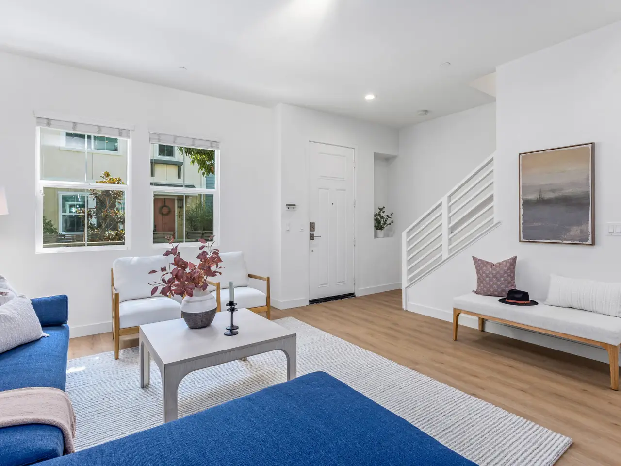 Experience stylish California living in this beautifully updated 3BR/2.5BA townhouse in the sought-after Winslowe Development. Built in 2018 with nearly 2,000 sq. ft. of living space, this home features fresh paint, new flooring, reverse osmosis, and a water softener system. Soaring ceilings and natural light enhance the airy feel. The ground floor offers a flexible space perfect for an office or studio, plus an attached two-car garage. Upstairs, the open-concept great room stuns with a chef's kitchen, oversized island, sunny balcony, and powder bath. Retreat to the top level with a serene primary suite, two bright guest rooms, and laundry area. Enjoy resort-style amenities--sparkling pool, spa, bocce court, clubhouse, and lush garden--all just minutes from UCSB, beaches, shops, and dining.