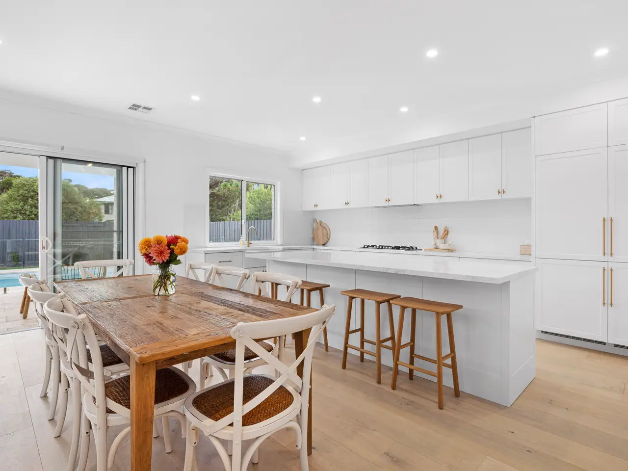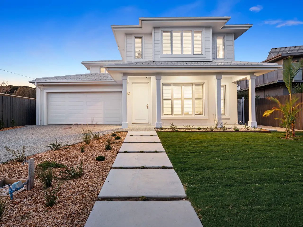 Brand new and just a five-minute stroll from the shore, an exceptional coastal lifestyle awaits with an inground pool, plenty of space for family and guests and nothing left to do but enjoy walks along the beach and a morning coffee in the village. Epitomising coastal elegance, the home impresses with master suites on each level, a connoisseur's kitchen, oak floors, three living areas, three bathrooms and a modern coastal palette that further accentuates the bright, light-filled living spaces. Sliding stacker doors open the main living and dining area to a covered travertine patio and the sparkling inground pool in the sun-soaked backyard where kids have space to run and play and alfresco entertaining promises to be sublime. A feature gas log fireplace in the family room adds ambience in winter, while the kitchen with marble-look stone benchtops, Ilve cooking appliances, a butler's pantry, farmhouse sink and soft-close draws is an entertainer's delight. Also on the lower level is a quiet formal lounge and a study with a built-in desk for two beside a powder room. Upstairs, three children's bedrooms with walk-in robes are set beside a third living area and the main bathroom, while parents are indulged with an enormous main bedroom, his and hers walk-thru robes and a sleek modern ensuite with double shower, double vanity and separate toilet. Other features include a remote double garage, ducted reverse cycle heating and airconditioning, an outdoor shower, brass tapware and fittings and quality throughout. Backing onto Kennedy Reserve and surrounded by lush lawns and low-maintenance gardens, Hamptons charm meets beachy chic - making this the perfect luxury weekender or indulgent permanent residence! To be notified when inspections of this property are available, to be sent a copy of the Contract and advised of property updates, simply submit an enquiry on this page. The Belle Property Southern Peninsula team is proud to be offering this property for sale. For further information, please contact Tim Bradler at the Blairgowrie Office on 0400 312 412 or tim.bradler@belleproperty.com Disclaimer: Whilst every care has been taken in preparing the property information, it is to be used as a guide only. Please refer to the appropriate legal documentation to complete your due diligence.