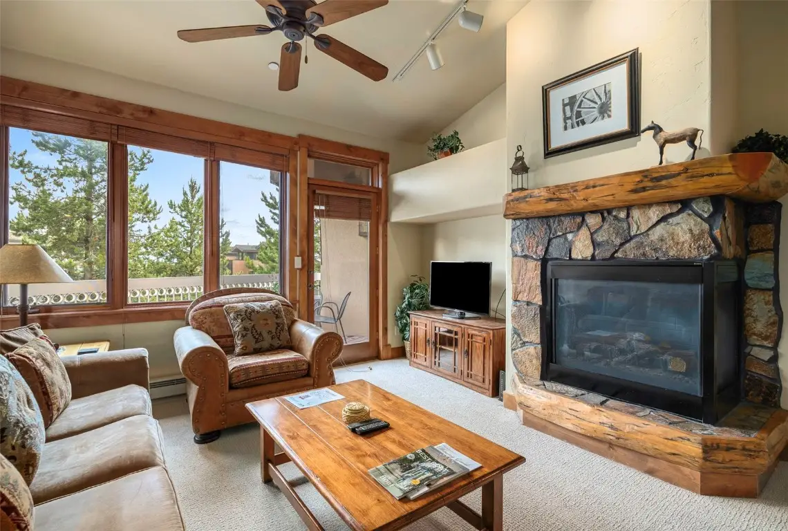 Enjoy this well appointed Trappeurs Crossing condo within walking distance to Steamboat's ski area and some of the best amenities in town! Fully furnished two bedroom, two bathroom, top floor opportunity at the Timberline Lodge. Recent upgrades include new carpet and paint. The fully-equipped kitchen with granite tile countertops and bar stool seating opens up to the dining and living areas, ensuring a comfortable stay. The living area boasts inviting furnishings and a charming stone fireplace for cozy winter nights. Step onto the covered patio to savor the mountain air. With in-unit washer & dryer, locked owner's closet, and easy access to heated underground parking via elevator, convenience is key. Trappeurs Crossing enhances the experience with private ski storage, a central courtyard with a fire pit, 4 heated pools, 10 hot tubs, a fitness center, 2 tennis courts, ski shuttle services, on-site concierge, owner's lounge with Après Ski happy hours, 24-hour security, and a front desk. Nestled in the heart of the Mountain Area, just "a skip and a hop" from the Ski Area and trails, this maintenance-free condo is your stress-free haven to explore all that Steamboat has to offer. Immerse yourself in the epitome of mountain living at its finest!
