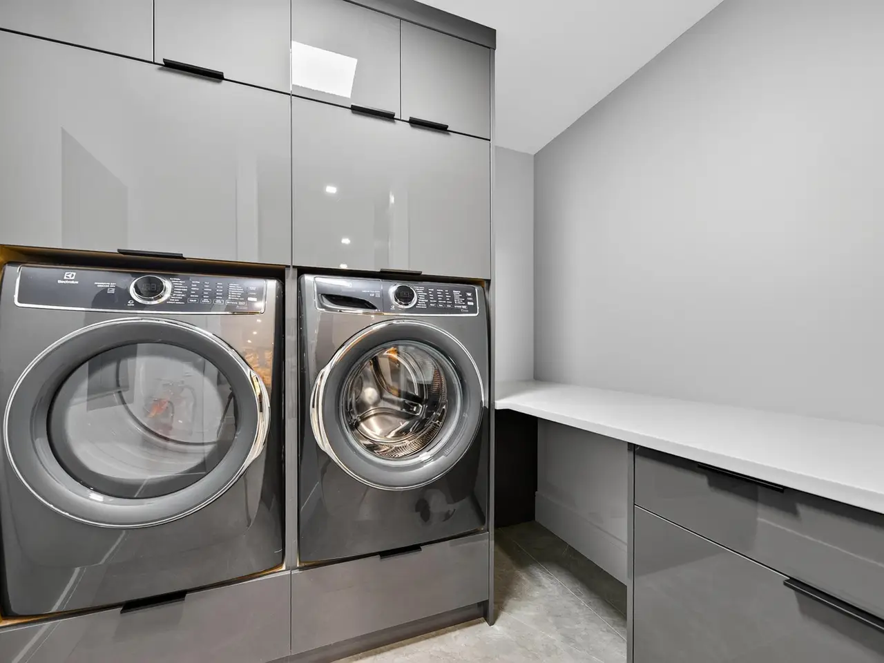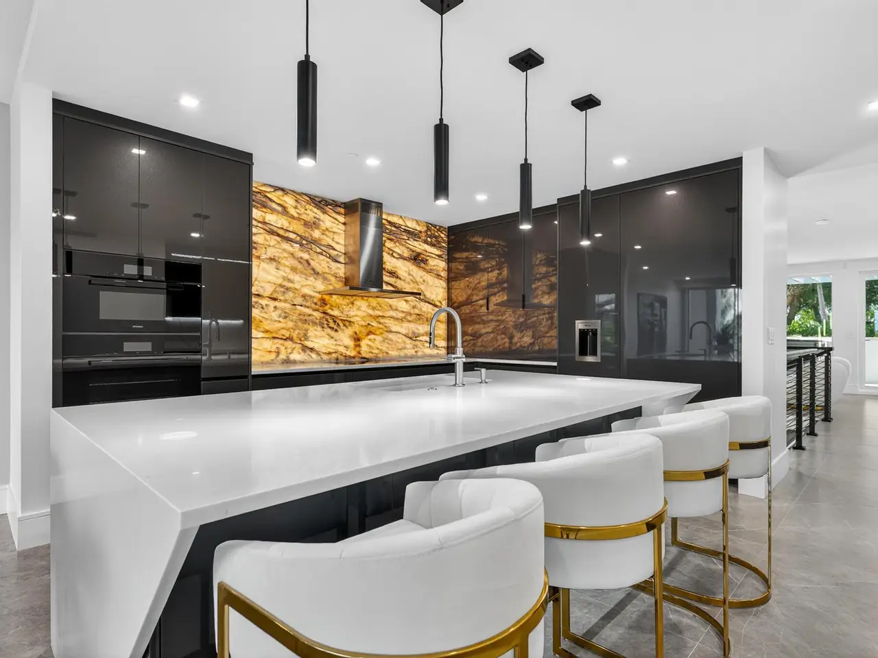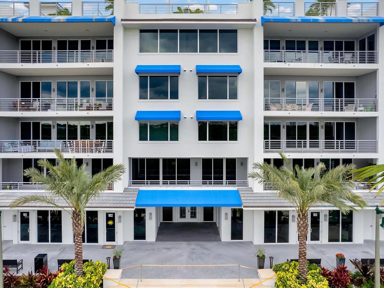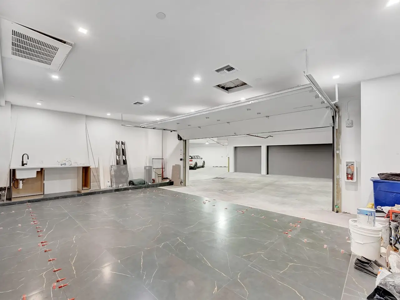 Introducing an exceptional designer condominium built in 2025, offering two bedrooms, two bathrooms, and a powder room, complemented by a spacious loft and a dramatic grand foyer with ample room for an office. This residence features two expansive covered balconies at the front and back of the building and is uniquely connected to its own private, climate-controlled two-car garage--an unmatched convenience in today's market. Every detail has been thoughtfully curated, blending modern elegance with seamless indoor-outdoor living. The entryway immediately captivates with a floating staircase, soaring 20-foot ceilings, and a statement designer chandelier, setting the tone for the open layout. The loft connects effortlessly to the gourmet kitchen and great room, all finished with oversized