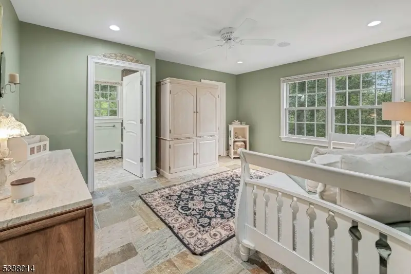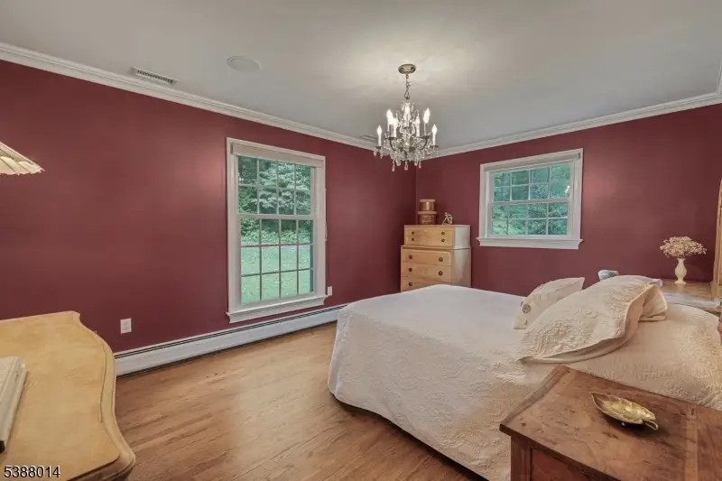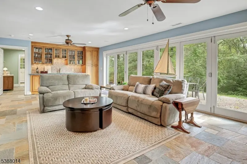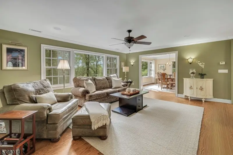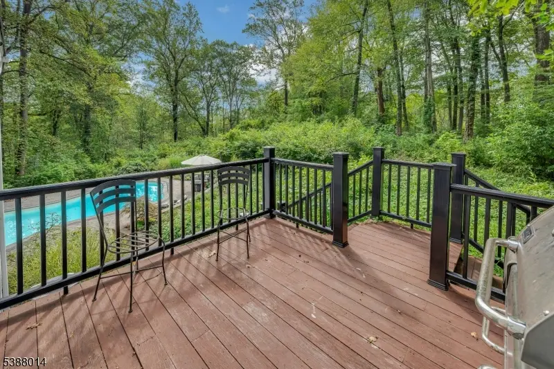 Privately situated amidst an abundance of nature with sweeping views of lush treetops, this charming mid-century elevated ranch has been thoughtfully updated for modern living. Boasting single-level living with three spacious bedrooms, two full baths, and a powder room, the home also features a beautifully finished walkout lower level complete with an additional bedroom and ensuite bath, a great room, a game room, and an exercise room all filled with natural light.The custom-designed kitchen and baths blend timeless style with practical luxury, including radiant heated flooring in the kitchen along with exquisite salvaged antique French tiles. The primary bedroom is a sanctuary with expansive walk-in closet and generous bath with separate shower and soaking tub. Step outside to a peaceful gravel patio perfect for alfresco dining or relax by the sparkling pool, surrounded by nature.The Post House neighborhood, located in desirable Harding Township provides direct access to miles of scenic trails in nearby Jockey Hollow yet is only minutes from downtown Morristown, Bernardsville, and the train to NYC all with low taxes. This property is a rare find.