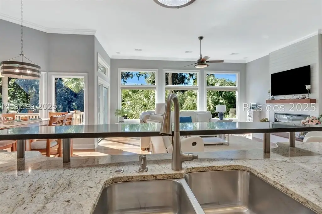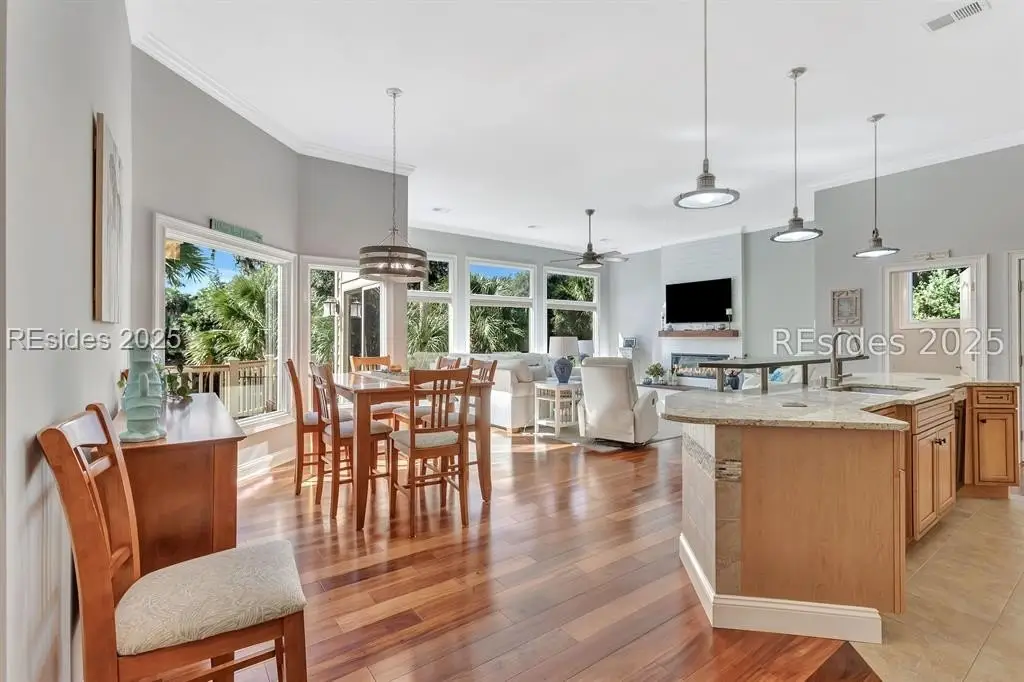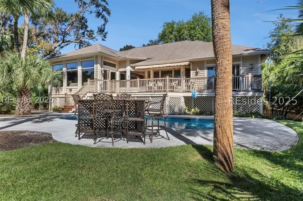 Stunning Lowcountry home in Palmetto Dunes, 4 bedroom, 3.5 bath home with a golf view of Robert Trent Jones #2 hole. Gourmet kitchen with granite countertops and stainless steel appliances. Open floor plan, large living room fireplace, flex room, private pool and large deck makes this home perfect for entertaining. Remodeled 2014 and major updates 2024. This home is located at the end of Haul Away on a quiet cul-de-sac. 2 car garage. Access to the beach is at the entrance of Haul Away. Palmetto Dunes offers golf, tennis, pickleball marina access, beaches, restaurants. Great Primary home or Short Term Rental Investment Property.