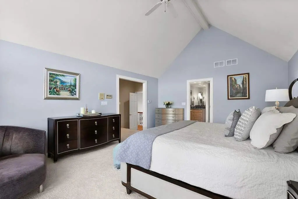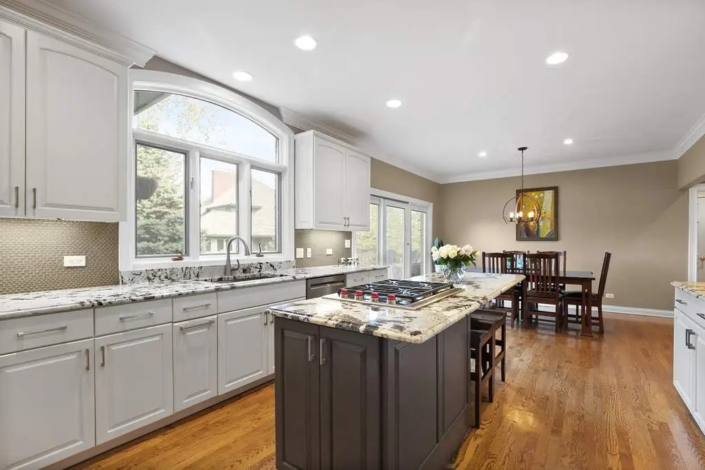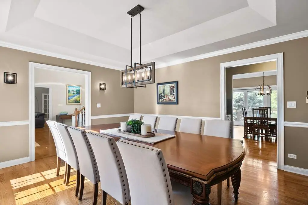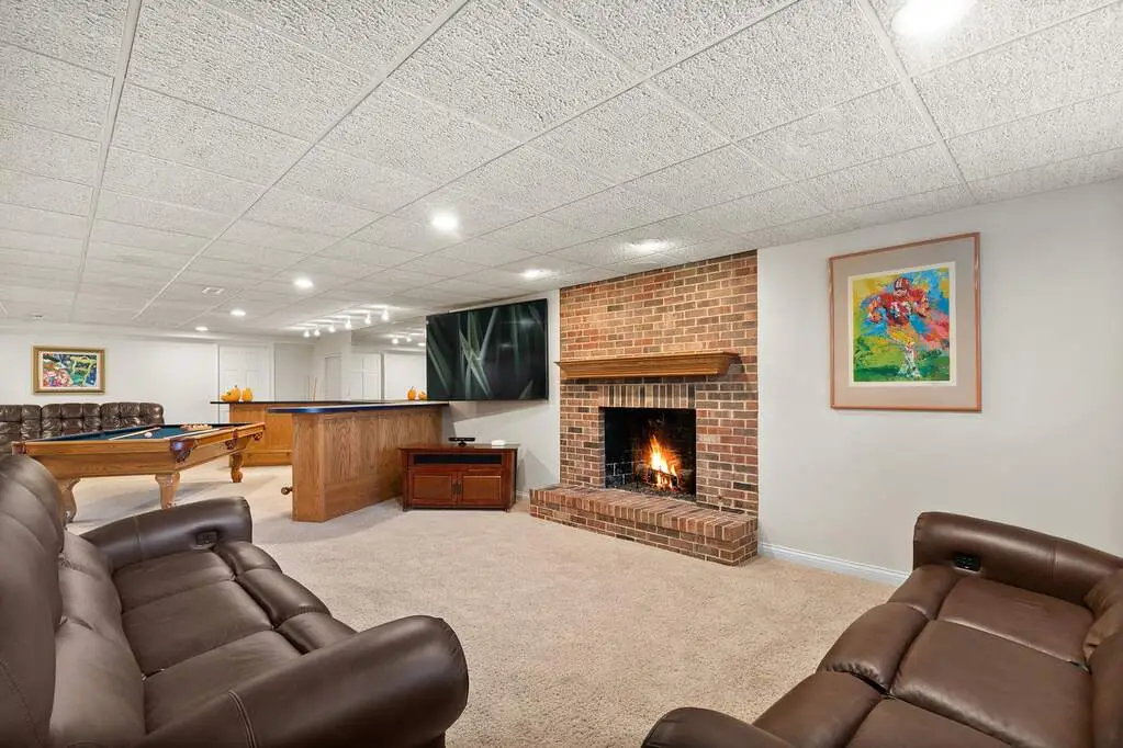 Welcome to 1296 Kajer Lane, a stunning 5 bedroom, 4.5 bath brick home in the highly desirable Arbor Ridge subdivision. Perfectly positioned on a half-acre lot with serene pond views and beautifully landscaped, mature gardens, this residence offers a total of 5300 square feet of thoughtfully designed living space, including the wonderful finished basement, that combines timeless elegance with modern comfort, just steps from Everett School. A grand, light-filled two-story foyer with a sweeping staircase and beautiful hardwood floors sets the tone as you enter. The formal great room impresses with its cathedral ceiling, dramatic fireplace, and seamless flow into a stylish wet bar complete with a sink, beverage fridge, and generous wine storage, an entertainer's dream. Beyond the bar, the inviting family room showcases spectacular backyard and pond views, another gorgeous fireplace, and sliding doors that open to the screened porch, creating a perfect space for relaxation and gatherings. At the heart of the home, the chef's kitchen has been beautifully updated, most recently with a brand-new 42 inch Sub-Zero refrigerator, Wolf cooktop and downdraft, all added in 2025. Enjoy casual dining in the sunlit breakfast nook with direct access to the spacious deck, or start your day at the built-in coffee bar. A secondary staircase provides convenient access to the upper level. The formal dining room offers an elegant setting for special occasions and holiday celebrations, while the spacious laundry and mudroom area features a new washer and dryer, abundant cabinetry, and even a dog wash station for added convenience. A versatile fifth bedroom on the main floor, currently used as an office, serves equally well as a guest suite or in-law arrangement thanks to its private full bath and the possibility to access through a separate entryway. Additional features on the main level include ample closet space, elegant powder room, and direct access to the three-car garage. Upstairs, double doors open to an inviting primary suite with soaring cathedral ceilings, a large walk-in closet, and a private balcony overlooking the tranquil pond - an ideal spot for morning coffee or quiet reflection. The luxurious primary bath offers a double whirlpool soaking tub, a two-person shower with rainfall heads and wall-mounted jets, dual vanities, and a clever hidden cabinet for storing essentials. Three additional spacious bedrooms each feature walk-in closets and updated bathrooms; one boasts an en-suite bath, while the other two share a charming "Romeo and Juliet" bathroom, with dual WC areas for added privacy. The open staircase from the foyer leads to the expansive 2,300-square-foot English basement, filled with natural light from large above-grade windows. This versatile level includes a bar and games area, a cozy family room with fireplace, and flexible space perfect for a gym, hobby room, or playroom. There is also a substantial additional space, also with above grade windows, offering exceptional storage or the opportunity to customize further to suit your needs. Outdoor living is equally impressive, with a spacious deck and screened porch overlooking the beautifully maintained yard and peaceful pond. The lower patio area provides additional space for entertaining or quiet evenings surrounded by nature. The roof was fully replaced in 2023. Combining sophistication, comfort, and functionality in one of the area's most desirable neighborhoods, 1296 Kajer Lane offers a rare opportunity to enjoy refined living in a truly special setting. Come and experience this exceptional home for yourself - you'll fall in love the moment you arrive