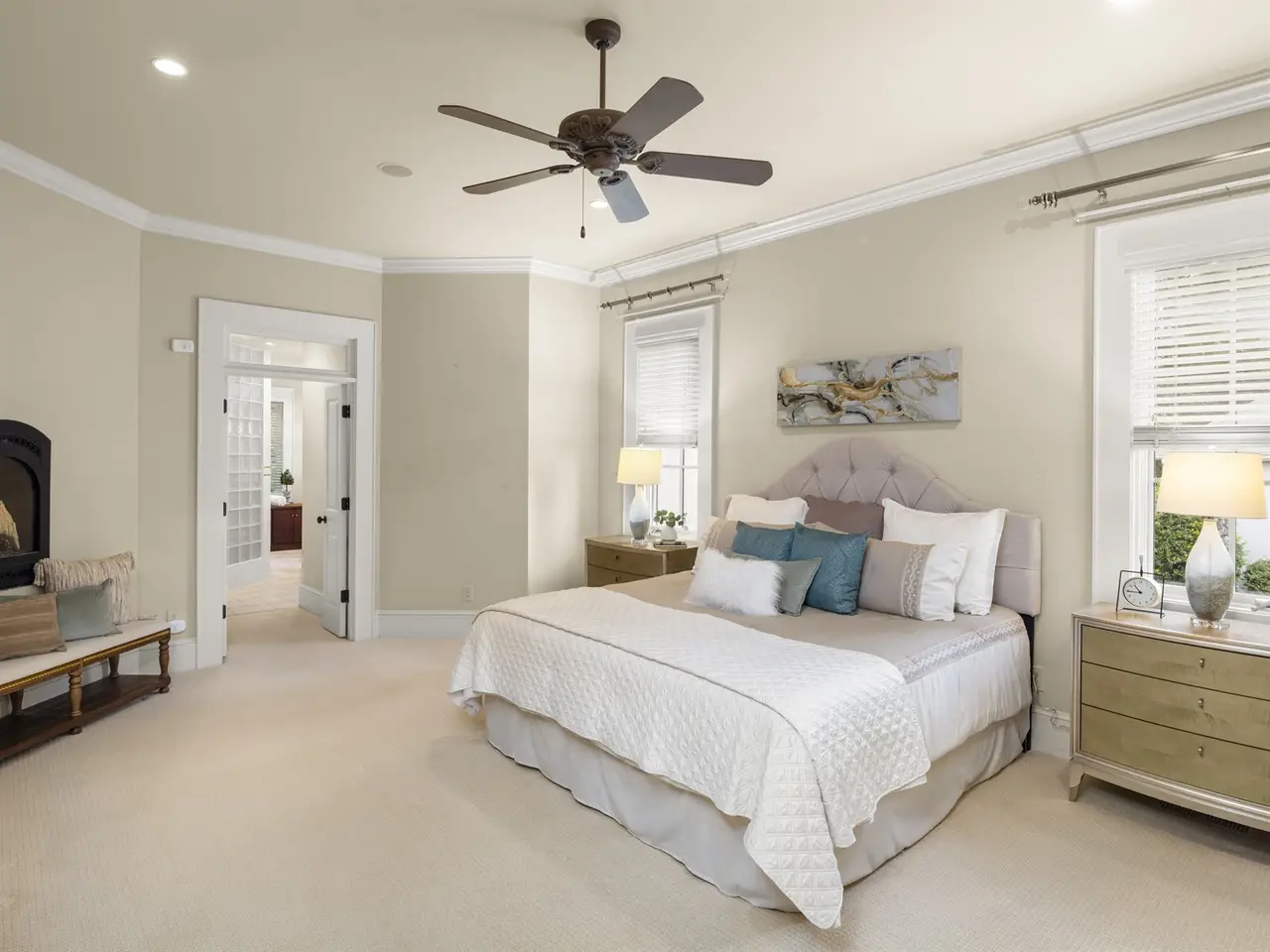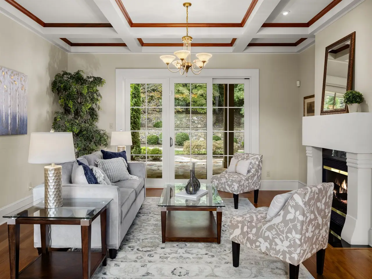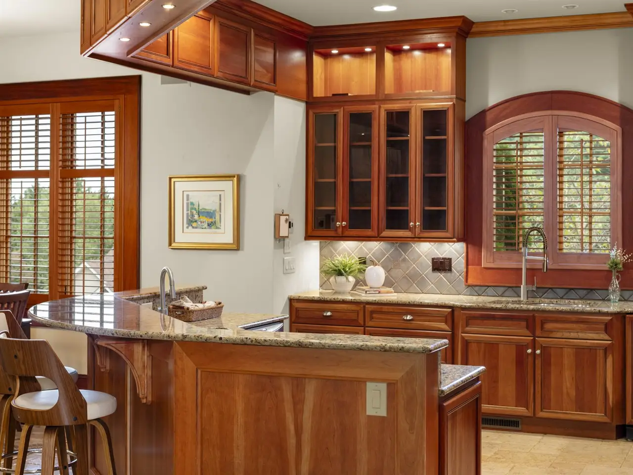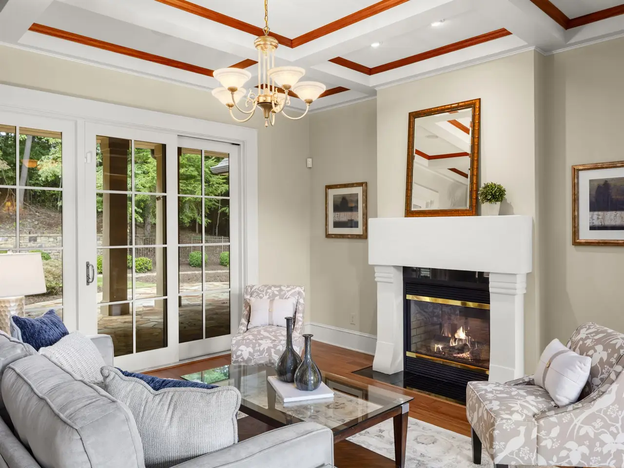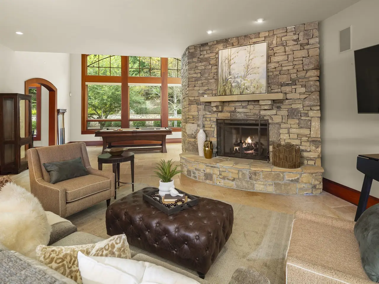 Welcome to this extraordinary residence, where timeless architecture and refined finishes come together to create an unparalleled living experience. From the moment you arrive at the gated entry, this exquisite estate makes a striking first impression. The main level offers over 4,000 square feet of luxurious living space, designed with an open-concept flow and an abundance of character. Soaring coffered ceilings, rich hardwood floors, and impeccable craftsmanship set the tone. The gourmet kitchen is a chef's dream and seamlessly connects to the dining room, breakfast room, and great room. Here, an impressive floor-to-ceiling stone fireplace anchors the space, extending into the billiards room with a full bar which is perfect for entertaining. The primary wing is a true gem, featuring a large suite with dual baths, his & hers walk-in closets, a spacious walk-in shower and a soaking tub. Also included is a private study, and a dedicated laundry room, a cozy sitting room with a see-through fireplace which opens to a second living area and a private guest suite with a full bath. Upstairs, you'll find another guest ensuite, a family room (which could function as a bedroom) and a private sauna/full bath. The lower level offers versatile heated spaces including multiple workshops, a craft room, fitness (or theatre) room, and full bath. Step outside to the covered stone terrace and enchanting English garden, where relaxation and elegance blend seamlessly. This remarkable home is a perfect balance of luxurious comfort, thoughtful design, and timeless sophistication, ideal for both private living and grand entertaining.