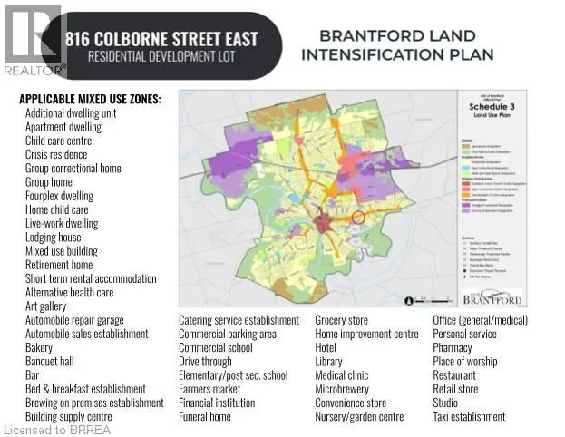 ATTENTION DEVELOPERS! Welcome to 816 Colborne Street, Brantford! Nestled in the desirable and family-friendly Echo Place neighbourhood, this property offers the perfect blend of convenience and potential. Situated on an impressive lot measuring approximately 43.86ft x 90.63ft x 451.59ft x 94.71ft x 407.48ft, this residential gem is part of Brantford's Intensification Corridor, providing excellent opportunities for future growth. Under the new zoning by-laws with the City of Brantford, the lot will accommodate a total buildable footprint of 10,167 square feet, with a height of 38 meters. Amenities abound with shopping centres, big-box stores, and a variety of restaurants just moments away along Wayne Gretzky Parkway and Colborne Street. In proximity to schools and parks, as well as easy access to Highway 403! Serviced by the Grand Erie District School Board and the Brant Haldimand Norfolk Catholic District School Board, this property perfectly suits future families seeking a community atmosphere. Build in one of Brantford’s most sought-after locations! (id:7434)