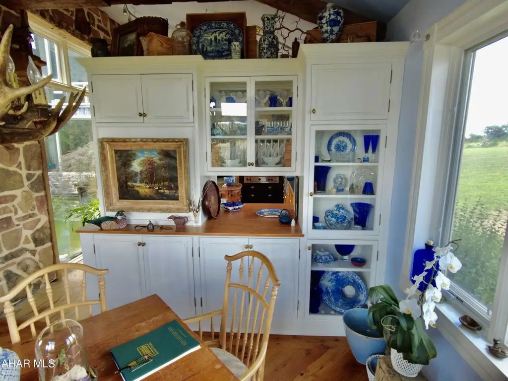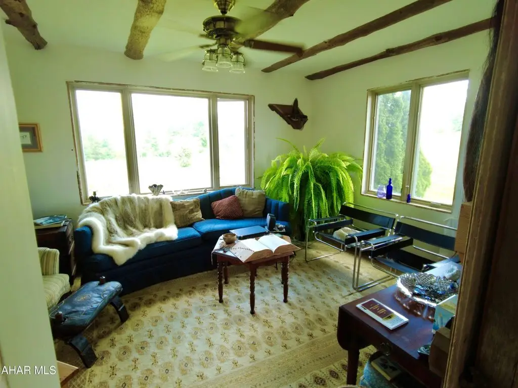 Check out the virtual tour! Experience the many unique 'facets' of this 'one of a kind GEM' overseeing Pennsylvania's Laurel Highlands' mountains.Perched high up, one has a commanding 360 degree view of the surrounding mountains and valleys ... some, 30 miles away! Easy access to main roads for convenience. Your own 'slice of heaven' in 'God's Country.' A masterpiece of thoughtful, intuitive design combines the ambiance of 'The Warm Hearth' meets 'Contemporary Aesthetics'. Comfort and convenience are intertwined throughout every aspect of the home and provenance abounds. Many building materials and finds (most locally sourced) are from centuries past and re-purposed in imaginative ways, contributing to the tenor of this home. Designed for the connoisseur with a discerning eye for quality and detail. Ingenuity, humor as well as functionality and comfort. Delight in the airy, sun filled open spaces enabling connectivity as well as peace and quiet. Explore from the foyer's (now interior) 'antique, 1860's, 8 foot+ high, walnut double entry doors to the 4'' level observation tower, experiencing each unique space that contributes to the home's overall continuity. The gourmet kitchen is designed for the serious chef with intuitive, convenient functional amenities. Bon Appetite! Top stainless steel appliances. The cabinets are custom built on site, hand crafted wormy chestnut, slate counter tops with antique white oak edges with antique nail heads, soapstone farmers sink. Adjacent 'butlers' cabinets are highly detailed, solid wood, painted white with antique chestnut counter. These cabinets continue into the adjoining dining room. A custom, one of a kind, china cabinet is lined with the wormy chestnut. The flooring is made from 200 + year old antique white oak beams ... exquisite. Half bath has custom wormy chestnut wainscoting and trim. Floating 3 C/B?B=' thick spalted pine counter with antique copper sink, floor is pegged antique grainery wood planks. Antique barnwood sliding door on authentic track.Careful consideration has gone into all design aspects from the imported antique French door handles/levers, the huge, bright horse stalls and management to the landscaping (including a purple beech tree). Marvel at the amazing emerging sunrise, the spectacular blazing sunsets and the expansive starry night sky complete with the Milky Way! There is still work to be completed in some rooms. Most of the materials are on site which include trim, flooring, lighting with ceiling fans to be installed. The hard parts are done.Oil, gas, and mineral rights convey with sale.Follow this link to see extra photos:https://photos.app.goo.gl/8dJf8s6PCxnmZSFs5