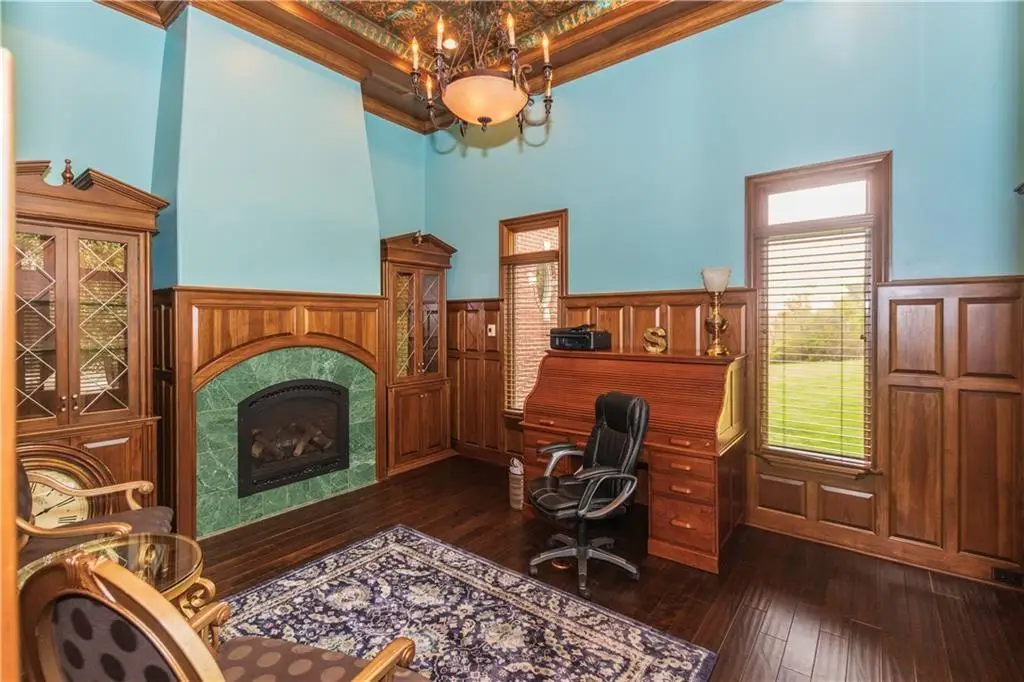 Library with fireplace