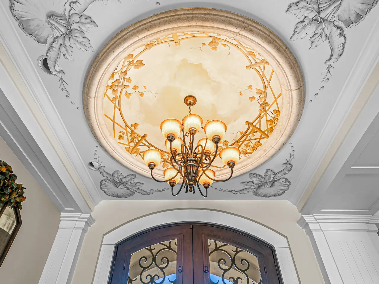 Enter across the threshold of this luxurious estate's grand custom iron and glass doors into a realm of refined class and sophistication. The entrance exemplifies the masterful design, boasting luminous windows with stunning valley views, gorgeous walnut flooring, one-of-a-kind ceiling art, and outstanding light fixtures that create a truly majestic ambiance of elegance and warmth with each room you enter. From the large spectacular gourmet kitchen with magnificent custom detail to the large lush outdoor living space perfect for entertaining, this gorgeous home is sure to captivate and impress the most discerning luxury buyer.