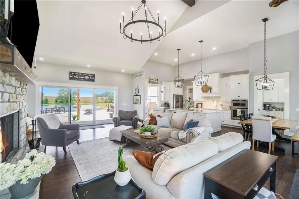 Welcome to your dream retreat! Nestled on just over 10 pristine acres with a private pond, this stunning custom-built home offers the perfect blend of luxury, comfort, and natural beauty! From the moment you pull into the drive, the charming front porch and serene setting set the tone for what awaits inside. Step through the front door into an open floor plan filled with soaring ceilings, walls of windows, and abundant natural light. The great room is the heart of the home, featuring a dramatic floor-to-ceiling stone fireplace flanked by built-ins, ideal for cozy evenings or large gatherings. The chef’s kitchen is a showstopper, designed with high-end finishes including a 9 island, quartz countertops and backsplash, farmhouse sink, pot filler, stainless steel appliances, coffee bar, double oven, and walk-in pantry. The kitchen flows seamlessly into the dining area, making entertaining effortless while overlooking breathtaking views of the pond and treed landscape. The main-level primary suite is a true retreat, offering a spa-like bathroom with soaking tub, walk-in shower, dual vanities, and an expansive walk-in closet. Also on the main floor are two additional bedrooms with a Jack-and-Jill bath, plus a convenient mudroom and laundry room located just off the suite. Upstairs, you’ll find a versatile bonus room, perfect for a home office, playroom, or creative space. The recently finished walkout lower level provides even more living space, complete with a large family room, kitchenette, full bath, fourth bedroom, and generous storage. Step outside to enjoy multiple outdoor living spaces, including an oversized patio with a hot tub that stays, perfect for relaxing, dining, or simply soaking in the sunsets over your private pond. Additional highlights include an oversized three-car garage with plenty of extra parking, and a location that offers peace and privacy while still being close to top-rated schools and conveniences. Schedule an apt for your dream home today!