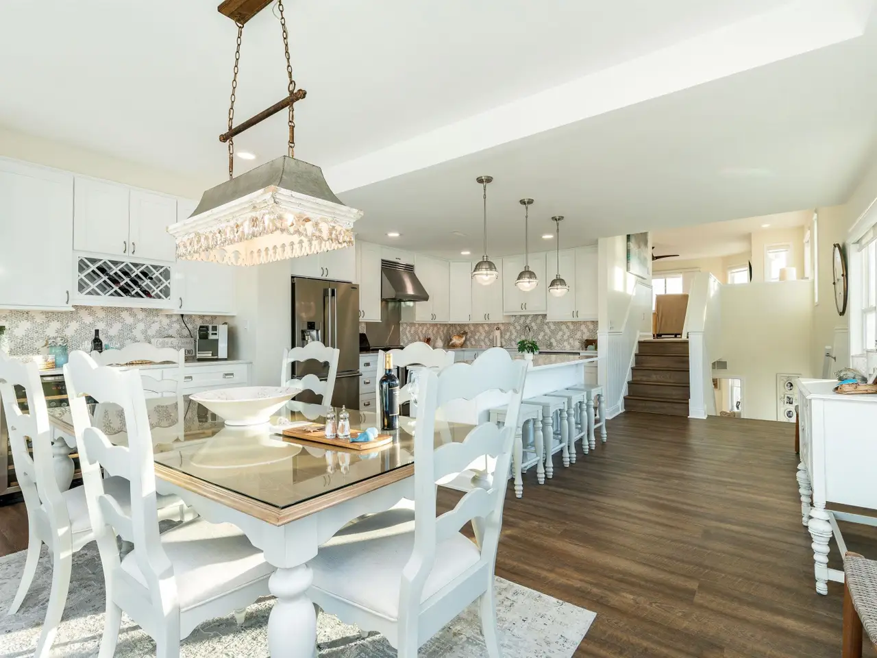 Your North Wildwood Sanctuary by the Sea! Step inside and feel the calm of coastal living wash over you. This stunning, fully updated North Wildwood retreat perfectly captures the magic of life by the ocean - where morning sunlight glimmers off the waves, the scent of salt air drifts through open doors, and every day feels like a seaside escape. For the current owners, this has been a peaceful haven - a place to gather with family, unwind after long days, and wake up to the soft sound of the surf. With 4 spacious bedrooms (including 2 luxurious master suites), 3 full baths, and 2 powder rooms, plus a finished lower-level suite with kitchenette and private entrance, this home blends comfort, elegance, and functionality in every square foot. The heart of the home - a bright, white chef's kitchen - is an entertainer's dream, featuring a 7.5' quartz island, Frigidaire Professional appliances, double pantries, an exquisite designer backsplash, and a coffee bar with a plumbed-in Keurig and wine fridge. It's the perfect place to cook, connect, and create memories. Open the sliders and let the sea breeze in as you relax on one of four expansive decks - three with sweeping ocean views - where sunrises are breathtaking, and Friday night fireworks feel close enough to touch. Upstairs, the primary suite is your private retreat in the sky, with panoramic ocean views and a marble spa bath designed for pure indulgence. Every detail of this home speaks of quality and care - from the gas fireplace with full stone surround to the custom window treatments, luxury vinyl flooring, and beautifully updated marble baths. The fenced backyard is ideal for entertaining, featuring a built-in stone dining table, outdoor shower, and lush new sod with irrigation. You'll love starting your mornings with coffee on the back deck, strolling across the street to Russo's Market, and being just steps from the beach and boardwalk. This is where luxury meets laid-back coastal charm - where every moment feels like vacation and every breeze reminds you, you're home. Don't miss this rare opportunity to own a piece of paradise. Come experience your private beachside oasis - your North Wildwood dream home awaits!
