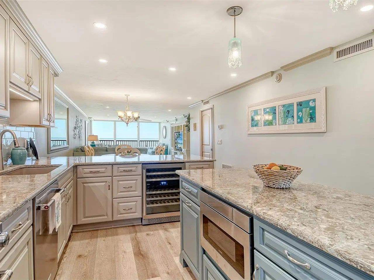 Knock, knock your slice of paradise is calling! There's no place like this home or home away from home! A gorgeous view in an exquisitely updated condo on the world’s finest beach! What more could you ask for?!! HURRICANE WINDOWS, Quartz countertops EVERYWHERE (even in the laundry room!), wine refrigerator, Kitchen Aid appliances, new cabinetry (including in the bathrooms), closet built-ins, luxury vinyl plank flooring, tasteful, coastal furniture, electronic remote control Hunter Douglas shades on windows, ample storage, full size utility room, enclosed balcony professionally done so it truly feels like part of the home. Being sold furnished with everything you need to get started living the good life! The Gulf & Bay community is packed with amenities and spacious grounds, located mid-key with easy access to the north or south bridge, with a guarded gate and on-site property management, you will not be disappointed! 4 Tennis (3 Plexi cushion, 1 clay), 6 pickleball courts, and 2 racquetball courts, shuffleboard, a fitness room and clubhouse with a library, computer and meeting/event room and card room. The common area and multiple pools are lushly landscaped and manicured, giving you that true resort feel. The parking lot is pavered and carports, with deeded parking spaces, are included with units as well as ample guest spaces. There is also a carwash area and there are electric vehicle charging stations. Building E has the advantage of being closer to the water and therefore a more up-close view of the Gulf. Click your heels together and power up that hot air balloon (or whatever mode of transport you prefer) and hurry over to follow your heart and mind and gather the courage to grab your slice of paradise before it's gone! This is not a dream, it's a dream come true!