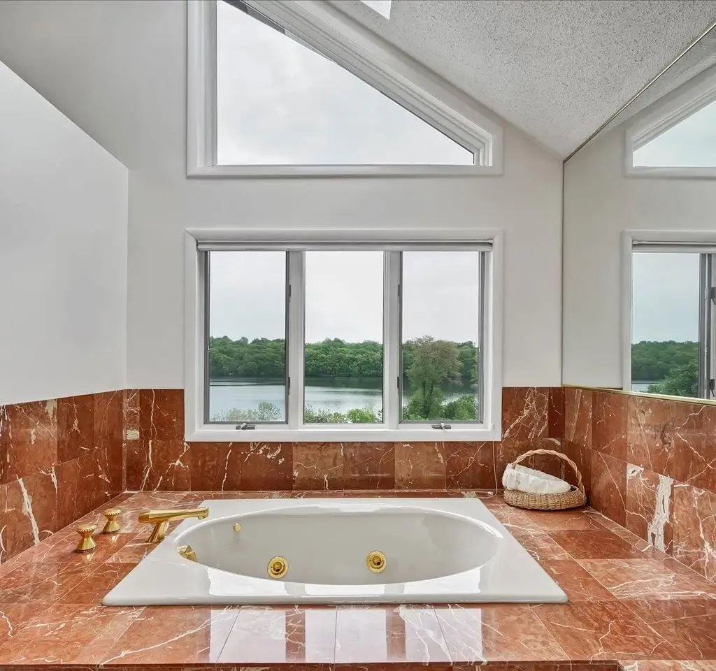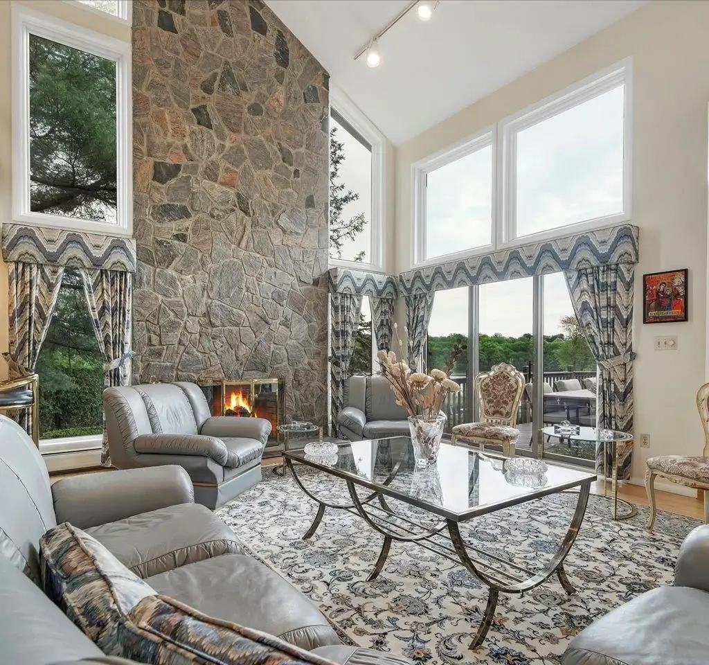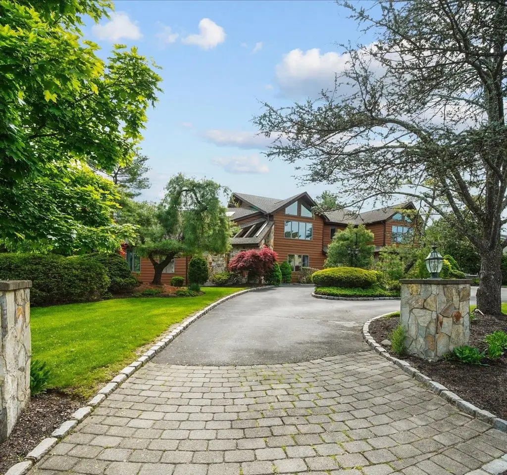 From a renowned local builder, in the exclusive private cul-de-sac of Fieldstone Court, this contemporary colonial overlooks the serene Lake Deforest. Boasting 5 bedrooms, 5 baths, an open design, spacious patio & in-ground pool, this home sits on .69 of an acre of finely landscaped grounds, with lake views throughout the home year round. Step inside to a grand atrium that flows effortlessly into dual living rooms united by a wet bar perfect for hosting. The expansive dining room, is adorned with two sets of French doors. The spacious kitchen boasts a dine-in area, high-top bar, Culligan water purification system, garbage compactor, and a versatile island equipped with an additional sink, built-in grill top, and food processor-all opening to the generous porch and poolside retreat. Cozy up at one of the two fireplaces and enjoy this vacation style home. The basement includes another estimated 1800 sqft of space with walk out access to the patio and pool. Additionally, the garage is wired for EV charging! Ideal for commuters, the breathtaking views will make you forget you're just minutes away from New York City. New City features award winning schools, fine dining experiences, shopping, outdoor activities, local parks, and easy access to major highways for an easy commute to anywhere.