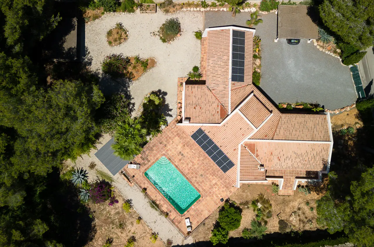 This elegant villa located in the coveted Montgó area of Jávea, Alicante, combines comfort and sustainability in a privileged natural setting. The home is spread over one floor and features three spacious bedrooms, one with an en-suite bathroom and a dressing room, ensuring comfort and functionality. It also has two additional full bathrooms and a guest toilet. The spacious living-dining room and kitchen open onto the naya. The layout is designed to maximize natural light and garden views, creating a cozy and relaxing atmosphere. Among the notable features of this villa are the terraces, both covered and uncovered, perfect for enjoying the Mediterranean climate year-round. The property includes a carefully landscaped private garden, a private pool for cooling off on the hottest days, and a convenient carport for parking vehicles. It also features a laundry room for added functionality. The villa is in good condition and equipped with solar panels, reflecting a commitment to sustainability and energy efficiency. Its mountainside location offers spectacular views and proximity to golf courses, making it an ideal choice for nature and sports lovers. This property is a unique opportunity for those seeking a home that combines elegance, comfort, and respect for the environment.