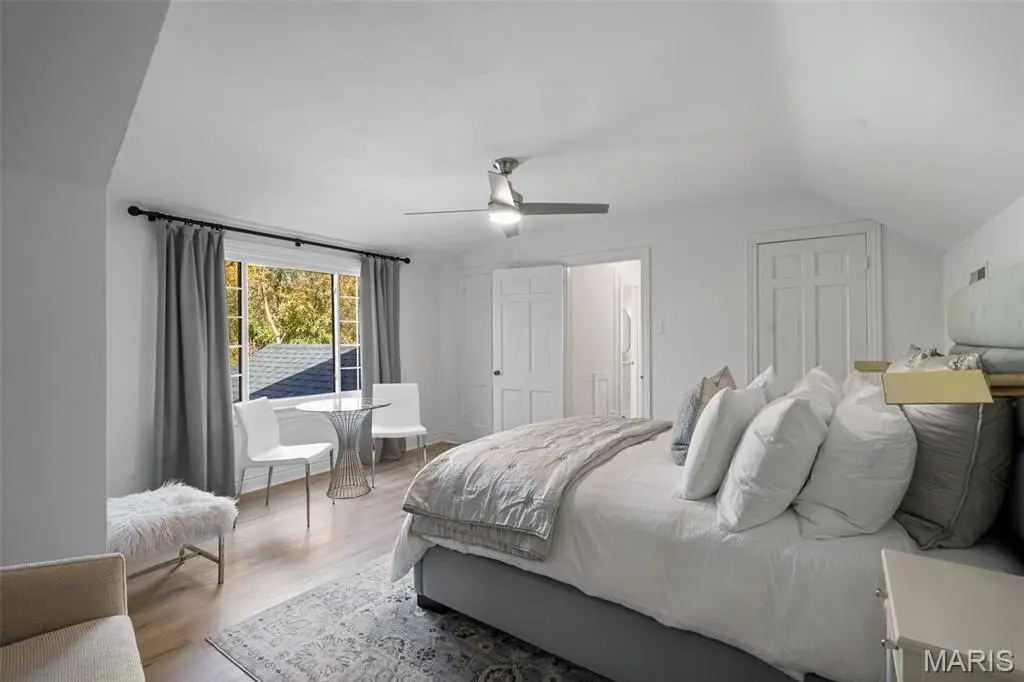 Timeless charm meets modern comfort in this beautifully updated story-and-a-half home situated on nearly a half-acre in the heart of Ladue. The main-floor primary suite offers convenience and luxury with a gorgeous, newly renovated bath. The light-filled kitchen is a standout, featuring a peninsula island, quartz countertops, newer appliances, and a eat-in area. It opens seamlessly to the backyard and covered patio—ideal for effortless entertaining and everyday living. A gracious formal living room anchors the front of the home, while a vaulted family room provides an airy, inviting retreat. Upstairs you’ll find two oversized bedrooms and a full hall bath. The finished lower level adds flexible living space, along with a dedicated laundry area and a tuck-under two-car garage. Set on a quiet cul-de-sac in a warm, welcoming neighborhood within the award-winning Ladue School District, this home offers painted white brick, a fully fenced rear yard, and an unbeatable location close to everything. A rare find in one of St. Louis’ most sought-after communities.