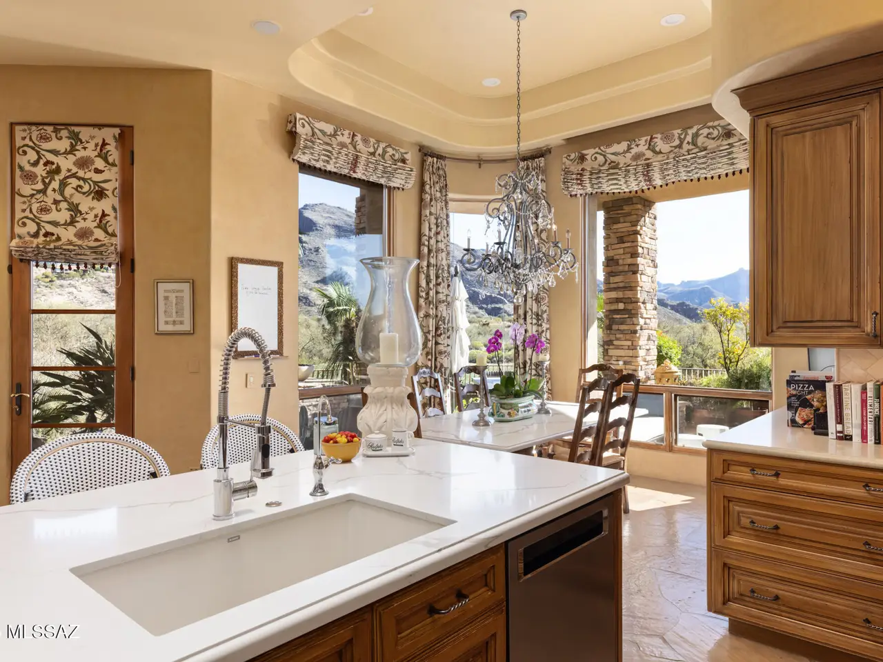 One of Ventana Canyon's Finest Homes Located at The End of Its Most Prestigious Street, Whaleback Place, Offering Commanding Mountain, Golf Course, & Valley Views. Elegant Style & Finishes Throughout This 5535 SqFt 4 BR & 6 BA Custom Home. Fine Features Include: Courtyard Entry - Living Room w/Vaulted Wood Beam Ceilings, Stone Fireplace & Floor to Ceiling Windows w/Spectacular Views - Spacious Island Kitchen w/Stainless Appliances & Breakfast Area - Office w/Wood Panel Ceiling and Fireplace - Media Room - Primary Suite w/Fireplace & Private Balcony w/Sweeping Views, Spa Like Bath w/Fireplace, Soaking Tub, Walk In Shower & Custom Closet - Two Temp Controlled Wine Rooms - 3 En-Suites, Luxurious Outdoor Living Spaces w/Kitchen, Bath, Fireplace, & Pool + Hot Tub, & Unbeatable Panoramic Views