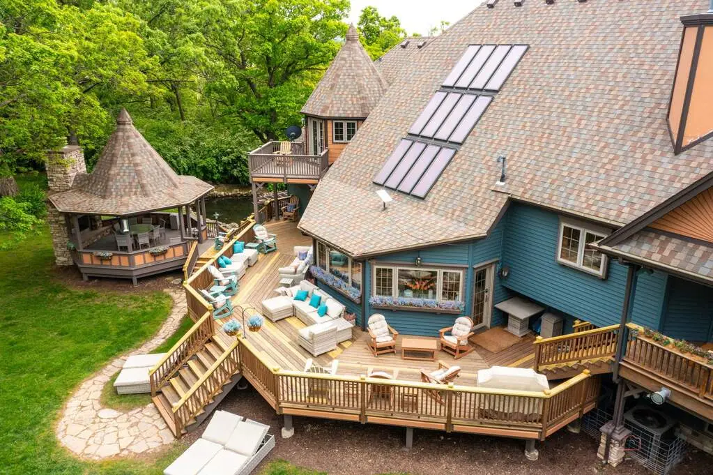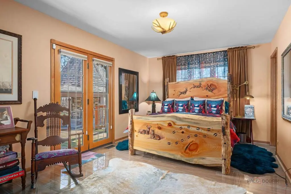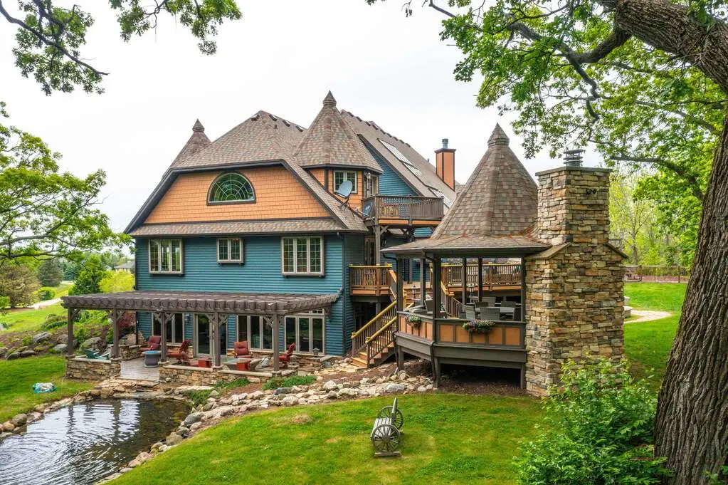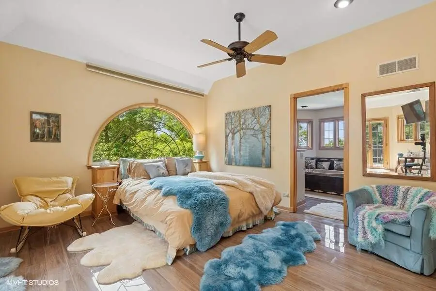 Set on over 27 acres in unincorporated McHenry County, this one-of-a-kind property defies categories. With more than 6,500 square feet of living space, it offers a flexible floorplan full of possibility-multiple bedrooms, bonus rooms, lofts, and spaces that invite imagination. From the moment you enter, it's clear this place is special. Authentic Saltillo tile floors warm the great room, kitchen, and office, complementing the soaring ceilings and statement fireplace in the family room. The current owner has infused the property with character at every turn-hundreds of thousands invested in thoughtful upgrades that respect the spirit of the home while elevating it. The kitchen features 2022 appliances and upgrades. The primary suite is a retreat of its own, complete with new hardwood floors and a spa-like bathroom where you can soak while looking out over your private acreage. A bonus room-accessible from the suite or a private staircase in the garage-could be an art studio, playroom, home theater. The third-floor loft adds a fun surprise, and the walkout lower level includes a bedroom, bathroom, and bar-perfect for guests or extended living. Outdoor living is just as compelling: multiple decks, gazebos, a stocked fishing pond, fireplaces, fire pits, ATV trails and views that go on for miles.The garage? It's a split 6+ car haven with room for toys, tools, and more. One of the garages has been transformed into a luxury dog suite-yes, climate controlled with a dog washing sink and direct access to a whimsical "dog woods"---one acre completely fenced with metal fencing and winding mulched paths. In addition, there are 10 acres fenced with an invisible fence. At the road, there are approximately 10 acres, which could be converted for horse pasture land. New roof, water heater, and one new HVAC system in 2024. Just imagine the possibilities as your family retreat or full time home. Close to Lake Geneva and charming downtown Woodstock, with commuter train access in nearby Harvard.