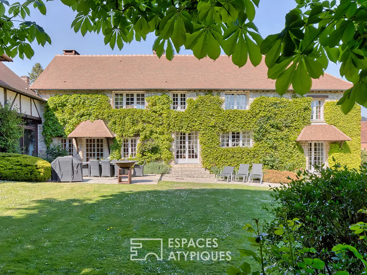 In Saint-Pierre-de-Bailleul, in a secluded village just ten minutes from Vernon and less than an hour from Paris, hides a former 19th-century farmhouse, reinvented without betraying its soul. Behind its cut stone and rubble walls, entwined with Virginia creeper, stretches a 290 sqm main residence, enriched with elegant outbuildings: a separate guest house, a pool house with an indoor swimming pool, two garages, a woodshed, a horse box, and some charming agricultural remains. The interior of the main house opens onto a spacious entrance leading to a vast living room of nearly 60 sqm bathed in light on the right, extending its volume towards a warm kitchen of over 40 sqm, with soft tones and furniture patinated by time, as well as a utility room. Both rooms feature imposing open fireplaces and house an elegant and discreet stone staircase leading to a beautiful vaulted cellar for wine lovers. Opposite the entrance, an office, a separate toilet and direct access to the two large garages complete the ground floor, while to its left stands the staircase leading to the upper floor. This level also benefits from a fluid distribution with three welcoming bedrooms (25, 17 and 36sqm), one of which has a mezzanine and a magnificent unobstructed view of the valley, a dressing room, a second office (both of which can be transformed into a bedroom if necessary), a toilet and two bathrooms offering a comfortable night space, conducive to rest and dreaming. The choice of materials is precise and respectful: Burgundy stone floors, old doors from castles, exposed beams, every detail seems to tell a story. The outbuildings are not just annexes: the guest house (110sqm), fully equipped and completely independent, offers three bedrooms, a cozy living room, a kitchen, a toilet and a shower room. The pool house, a true living space in its own right, houses a swimming pool sheltered under a curved glass roof (part of which is removable), bordered by a bar area and extended upstairs by a games room where billiards and table football games resonate, as well as a room that can be used as an additional bedroom. Outside, the carefully landscaped garden unfolds like a poem: sunny terraces, flower-lined paths, ornamental ponds, large trees dancing in the wind. The whole is part of a green and peaceful landscape, where you can hear the murmur of the water and the discreet song of the birds. Here, time seems suspended, the hustle and bustle distant. Possibility of acquiring wooded plots in addition. This rare property, born from the meeting between heritage and discreet elegance, is aimed at lovers of unique places, those who are looking for more than a house: a living environment, a breath of fresh air, a harmony between stone, nature and light, easily accessible from Paris (A13 motorway less than 10 minutes away, Vernon train station 15 minutes away, Paris 55 minutes away). Main house: ENERGY CLASS: D / CLIMATE CLASS: D Estimated average annual energy expenditure for standard use, indexed to the years 2021, 2022 and 2023: between EUR4,120 and EUR5,640. Guest house: ENERGY CLASS: D / CLIMATE CLASS: D Estimated average annual energy expenditure for standard use, indexed to the years 2021, 2022 and 2023: between EUR2,360 and EUR3,250. Information on the risks to which this property is exposed is available on the Georisques website: www.georisques.gouv.fr REF. 10736EAE Additional information * 15 rooms * 6 bedrooms * 3 bathrooms * 1 floor in the building * Outdoor space : 6046 SQM * Parking : 6 parking spaces * Property tax : 1 987 € Energy Performance Certificate Primary energy consumption d : 167 kWh/m2.year High performance housing