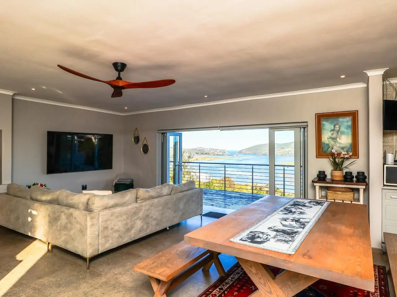 Exclusive Mandate: These are the kind of views that postcards envy and camera lenses simply can't do justice. With the Knysna Lagoon and The Heads practically winking at you from your balcony, this home's location is nothing short of extraordinary. This splendid residence features four generously sized bedrooms, each with its own en suite bathroom - offering privacy and comfort for everyone. Upstairs, the open-plan living area flows effortlessly into the kitchen, creating a warm and welcoming space ideal for both everyday living and entertaining. Slide open the doors to a grand balcony, where the views stretch out like a well-told story, revealing nature's finest chapters. Downstairs, three additional bedrooms continue the theme of indulgent privacy, each with its own en suite and direct access to the lower deck. Imagine waking up, stepping outside, and being greeted by lagoon views. This isnGÇÖt just a home - it's a daily invitation to live beautifully, breathe deeply, and never settle for mediocre. In addition to the main residence, there's a newly renovated one-bedroom flat - ideal for extended family, guests, or as an income-generating unit. It features its own open-plan kitchen and living area upstairs, with a spacious bedroom and en suite bathroom below. Private access from both levels ensures flexibility and privacy. The property is fully fenced. For boating enthusiasts, there's dedicated undercover parking for your boat, ready for spontaneous lagoon adventures. There's also ample off-street parking behind a remote-controlled gate for added convenience. This home truly ticks all the boxes: location, views, space, privacy, and thoughtful extras - ideal for relaxed everyday living or as a high-potential holiday investment.