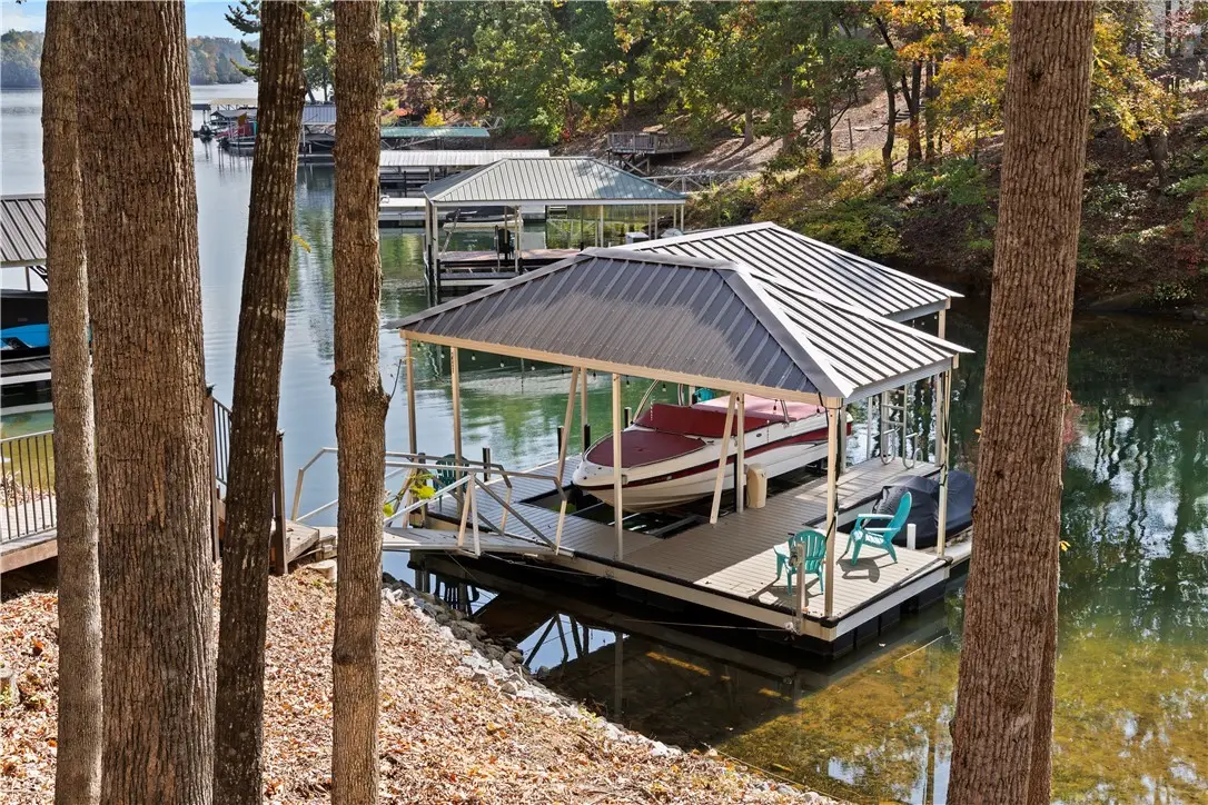 Welcome to your dream home in the prestigious Harbor Oaks community! This exquisite waterfront craftsman lake home at Lake Keowee offers a serene escape on a generous 1.30-acre lot, perfectly blending modern elegance with rustic charm. Built just four years ago, this custom-designed masterpiece features an abundance of natural light and lake views that will leave you in awe. Step inside to discover soaring vaulted ceilings with exposed wood beams, an open floor plan that flows seamlessly, and a stunning 2-story stone gas log fireplace that serves as the heart of the home. Experience the ultimate outdoor living on the expansive upper and lower wood decks, where the upper deck is adorned with a gas wood-burning fireplace, perfect for cozy evenings under the stars. The main floor houses a luxurious primary suite with an ensuite bathroom and a huge closet, alongside two generously-sized bedrooms with a shared bathroom. Culinary enthusiasts will appreciate the gourmet kitchen, showcasing leathered granite countertops, mixed wood cabinets with designer pull handles, and a chic tile backsplash. Venture to the lower level, where guests, children, or in-laws will find their haven in a comfortable secondary suite boasting stunning lake views, a walk-in closet, and a private bath. This lower level also includes a large living area, kitchenette, office, and flexible space, complemented by an additional full bath with washer and dryer hookups. With an oversized 2-car garage upstairs and a 1-car deep heated and cooled garage downstairs, your storage and parking needs are met. Enjoy effortless lake access with a paved path leading to your covered private dock, complete with a boat lift for a 22-foot boat and a Jet Ski dock that conveys. Rest assured with rip rap shoreline protection and 15 feet of water depth behind the boat for secure mooring. This rare opportunity to own a stunning piece of paradise on one of the most desirable lakes in the country is not to be missed. Schedule your private showing today and immerse yourself in a lifestyle of luxury and tranquility. Your waterfront sanctuary awaits!