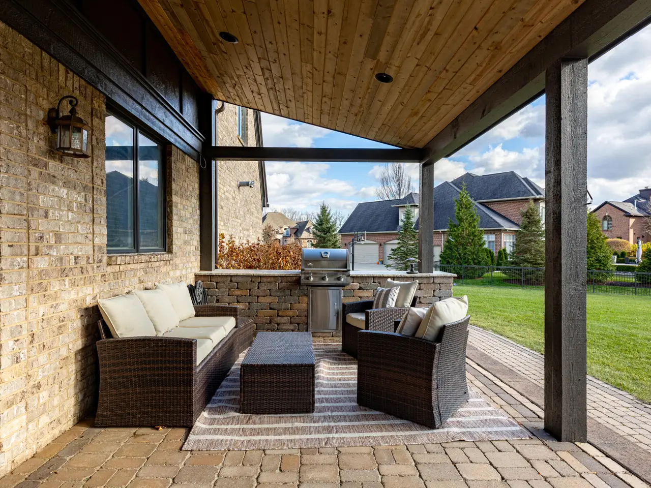 Experience timeless luxury in this custom-built masterpiece, expertly crafted to elevate everyday living into an extraordinary retreat. Boasting 5 beds + bonus room and 5.1 baths, this impeccably designed residence offers generous spaces, refined finishes and the finest attention to detail. Soaring ceilings, wood beams, gorgeous wood floors all set a stunning architectural tone thru out the home. The chef's kitchen offers warm, glazed cream cabinetry, granite surfaces, high end appliances, and butlers pantry. An open concept layout flows seamlessly from a sun drenched great room w/ custom surround F/P and beautiful wood beams to the breakfast nook & kitchen. Upstairs features a serene private ensuite w/spa like bath, 4 additional bedrooms and 3 baths, all providing flexible space/uses and elevated comfort. An expansive LL redefines living space w/large media/recreation area, gym space, a full kitchen, wood fired pizza oven, wine cellar, full bath, craft/hobby room, hidden reading nook & bonus non-conforming bedroom all offering multi-generational living potential, abundant privacy, ultimate storage and entertaining opportunity. Additional features and updates include-NEW tankless H2O heater, A/C & furnace upstairs, dishwasher, exterior paint, interior paint, carpet, shiplap in powder room, wainscoting in formal dining room, F/P tile surround, garage doors, wood floors in entry, den & powder room, light fixtures and more. Added features-first floor den, first floor study, first floor laundry and mudroom. Professionally landscaped yard with paver porch, covered paver patio and fire pit area lending itself to wonderful gatherings. Northville schools, close to Maybury Park, close to shopping, restaurants and freeway access. Gated community.