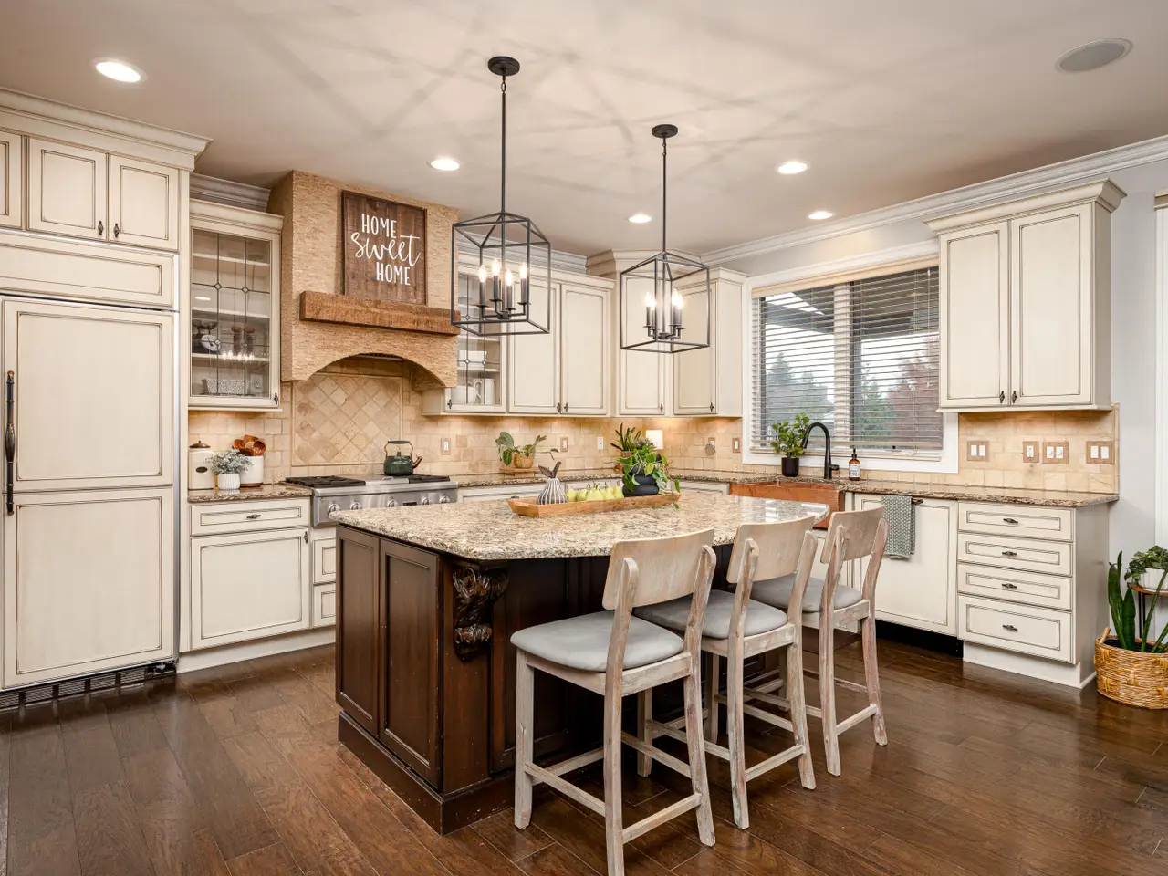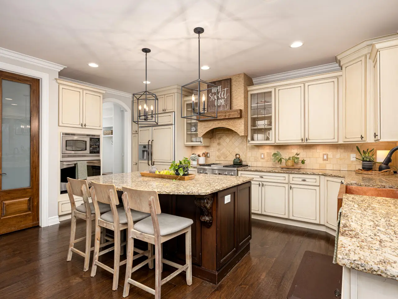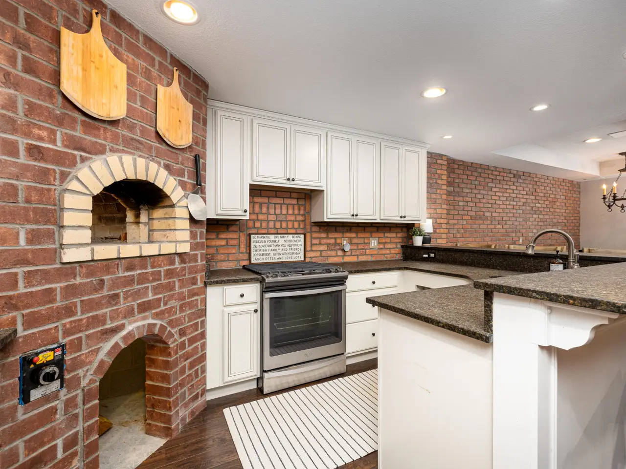 Chef's kitchen with granite surfaces