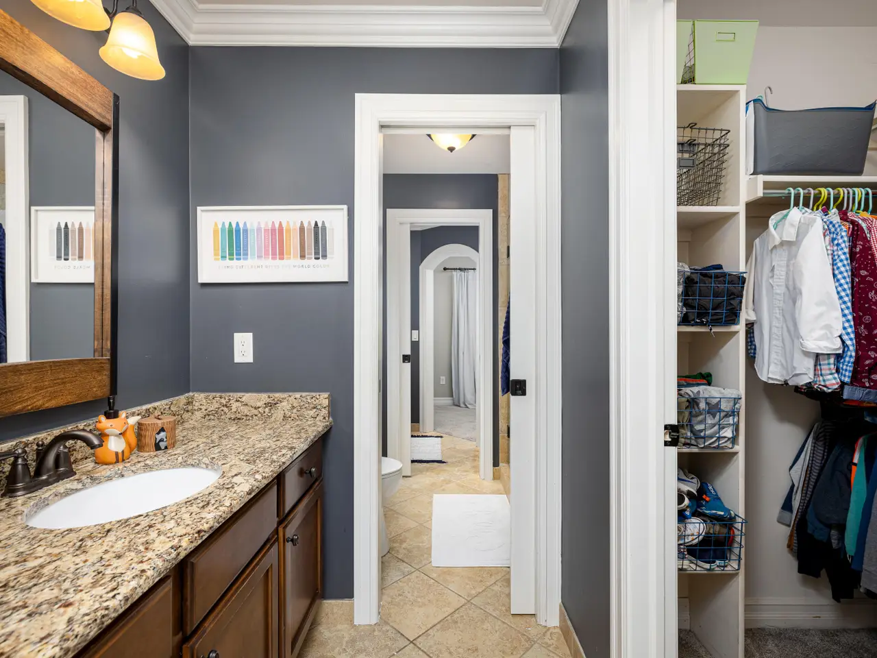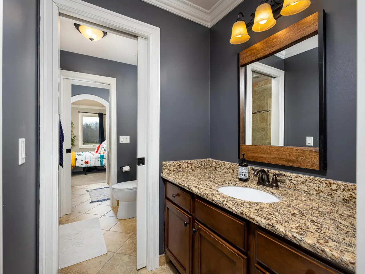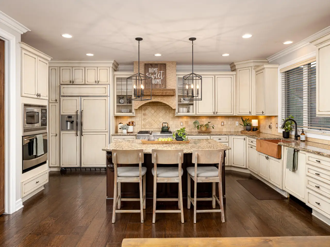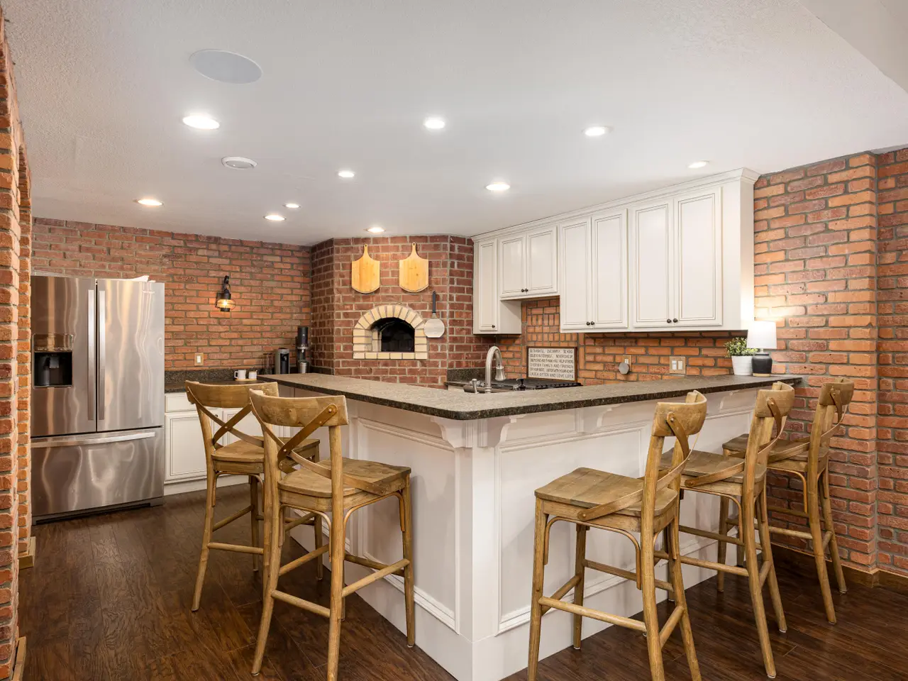 Chef's kitchen with granite surfaces