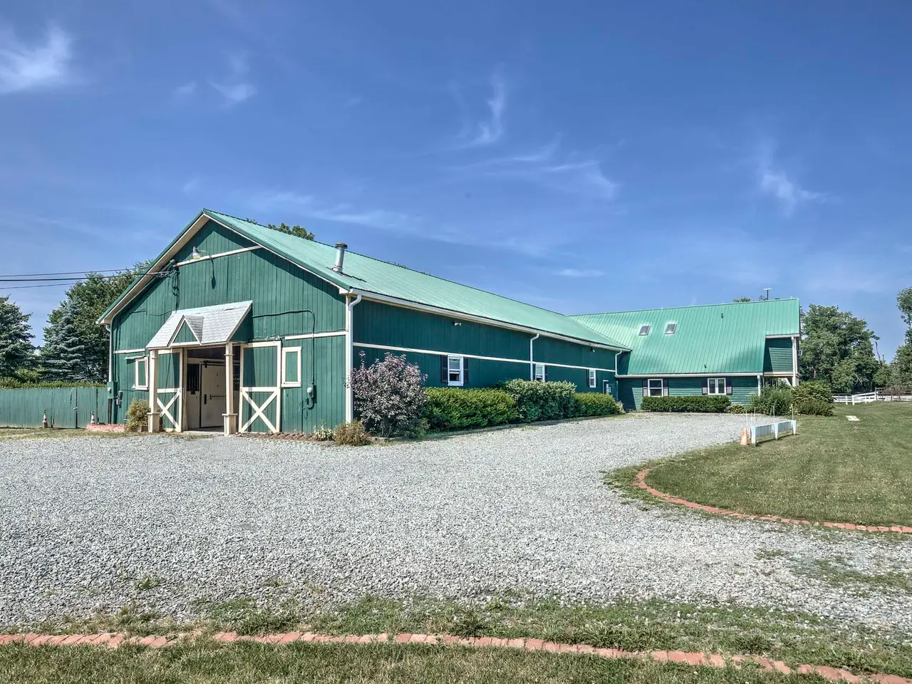 • 21-stall stable with center aisle and attached apartment