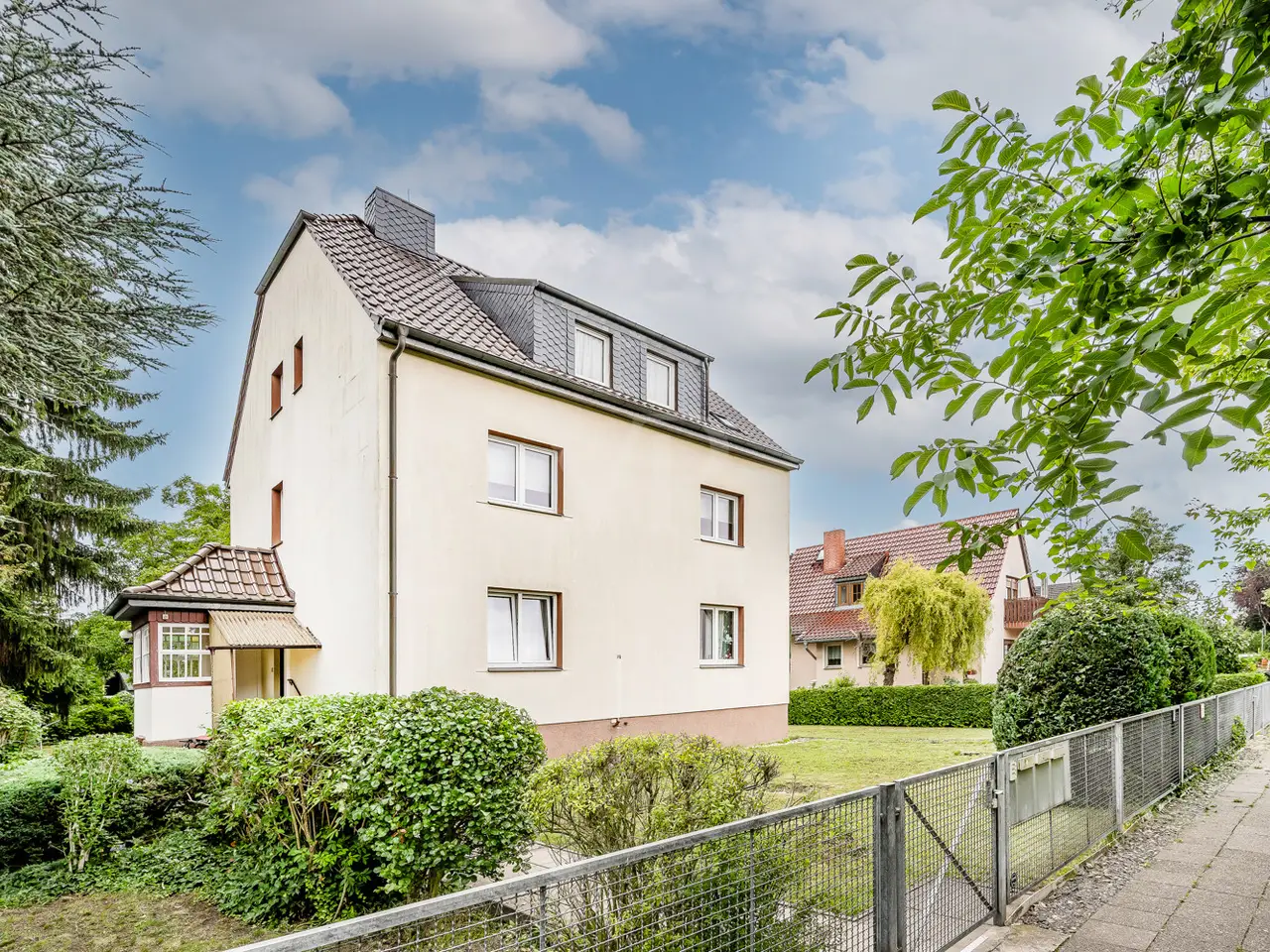 Sunny views meet extensive usage possibilities, here the whole family comes together under one roof - For sale is a multi-family house with a full basement and a living/usable area of approx. 330 m², which was built in 1928 in solid construction. The house is visually appealing and is in a well-kept condition, as numerous modernizations have already been carried out. Situated in a friendly residential area of Berlin-Rudow, the 1,268 m² property impresses with its good layout and ideal location. There is a green garden at the rear of the property which can be used as a further building area if required. The living and usable space of approx. 330 m² is spread over three and a half floors and offers a total of three separate residential units. A central staircase divides the individual storeys and residential units. The basement can be reached via a garden entrance. A staircase leads to the veranda on the house, which serves as the central entrance area. A hallway with staircase leads to the respective residential unit. The first residential unit on the first floor is divided from the hallway into a bathroom, kitchen, bedroom one, bedroom two and living room. This residential unit is currently rented out. The monthly net rent is 525.00 euros. On the upper floor is residential unit two, which is divided into a hallway, bathroom, kitchen, bedroom, living room and study. This residential unit is available for rent or for owner-occupation. The top floor houses residential unit three. This area is divided into a hallway, bathroom, kitchen, bedroom with walk-in closet and spacious living and dining area. The staircase leads to a separate hobby room. The loft offers further storage space for future owners. The basement of the property offers separate cellar rooms for the residential units which can be used as storage space. There are also two rooms in the basement for building and heating technology. Tranquillity and seclusion are combined here with an excellent infrastructure. Shopping facilities for daily needs, schools, kindergarten, public transport links and the Gropius-Passagen are all in the immediate vicinity. Enjoy the peace and quiet in this quiet residential street with its well-kept detached houses and apartment buildings