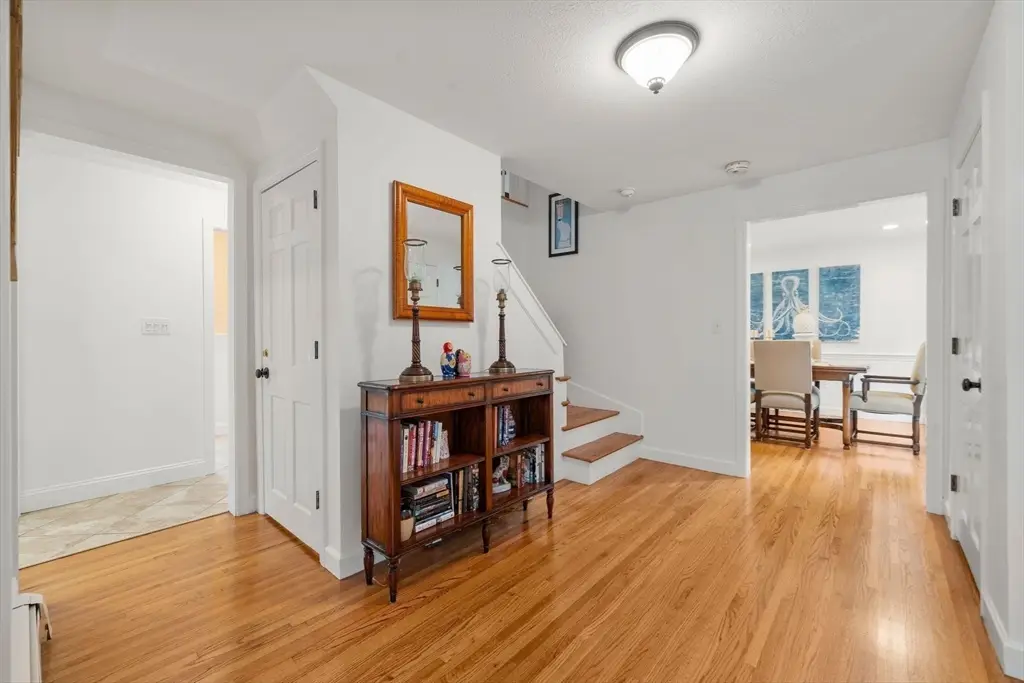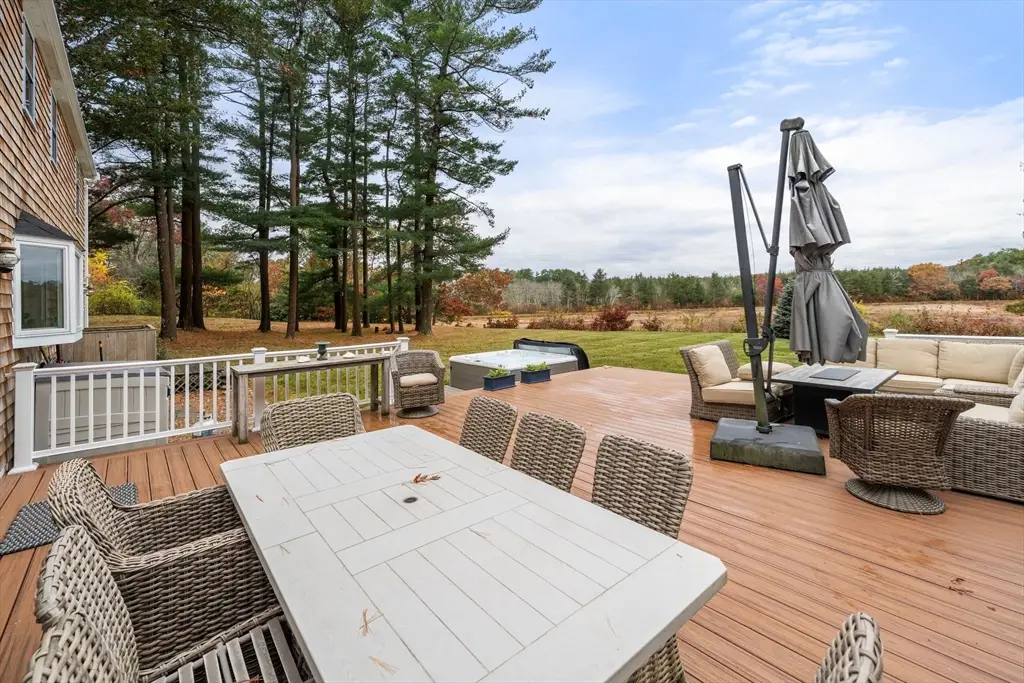 Charming and beautifully maintained Colonial home set on a private .94-acre lot, offering serene views of the surrounding cranberry bogs and amazing sunsets. This 4-bedroom, 2.5-bath residence exudes timeless New England charm with gleaming hardwood floors and two spacious living rooms, each featuring a cozy wood-burning fireplace. The kitchen showcases stainless steel appliances, ample cabinetry, and a welcoming layout ideal for everyday living and entertaining. Upstairs, the primary suite offers a private en suite bath for added comfort. Step outside to enjoy the peaceful natural setting from the expansive yard, complete with an inviting outdoor jacuzzi - perfect for relaxing under the stars. Recent renovations include a partially finished lower level with a home gym, bonus room, and a dedicated storage area with a workbench. With a two-car garage and a set-back location ensuring exceptional privacy, this property combines classic style, modern updates, and tranquil outdoor living.