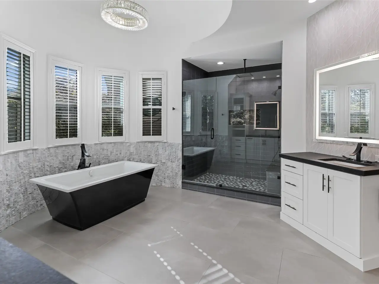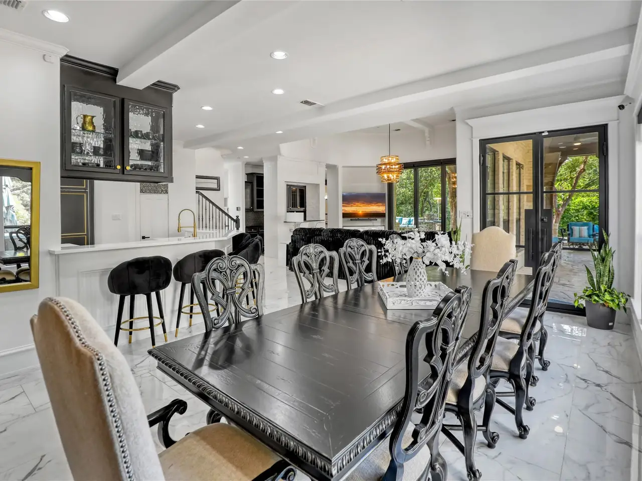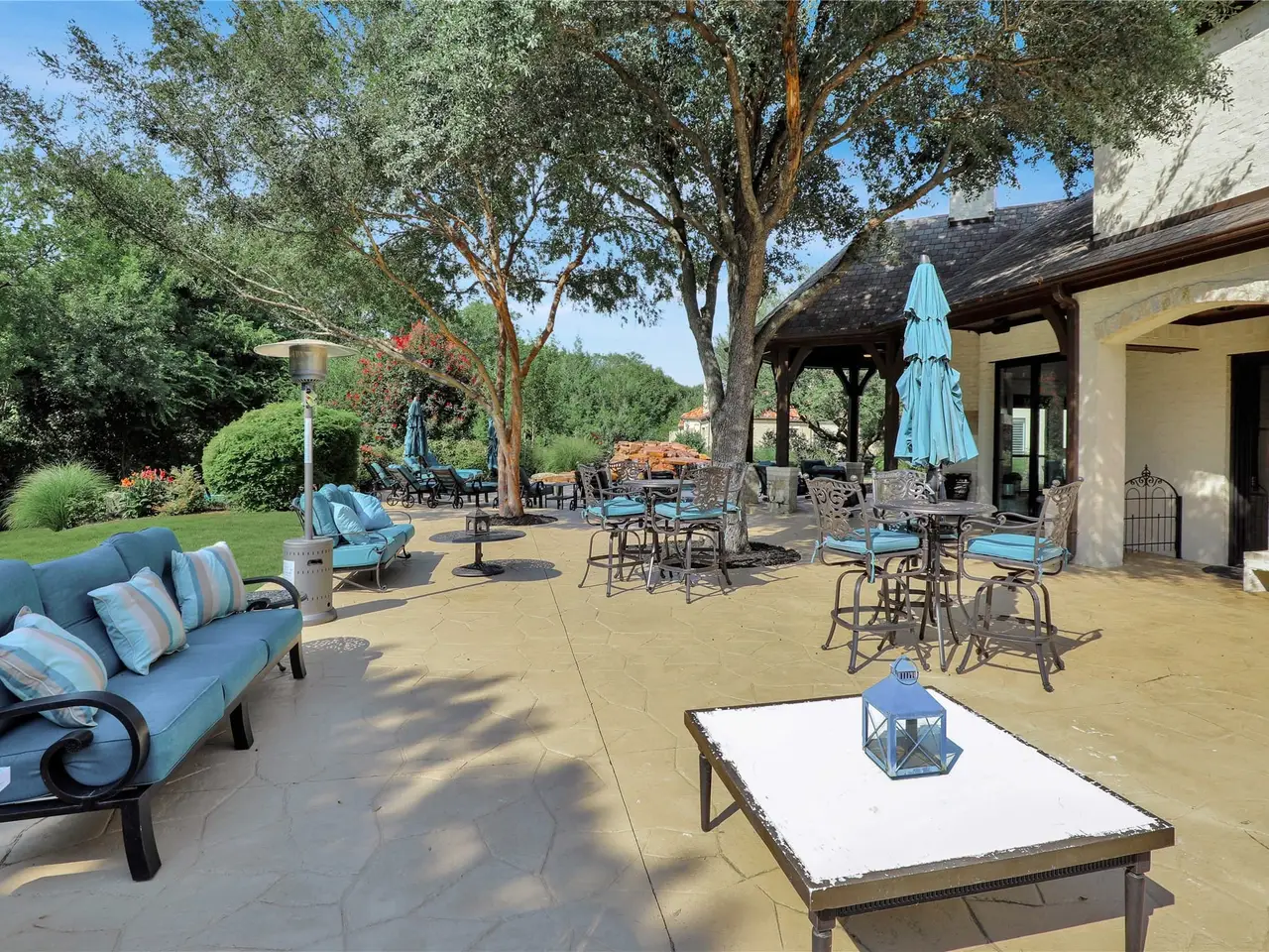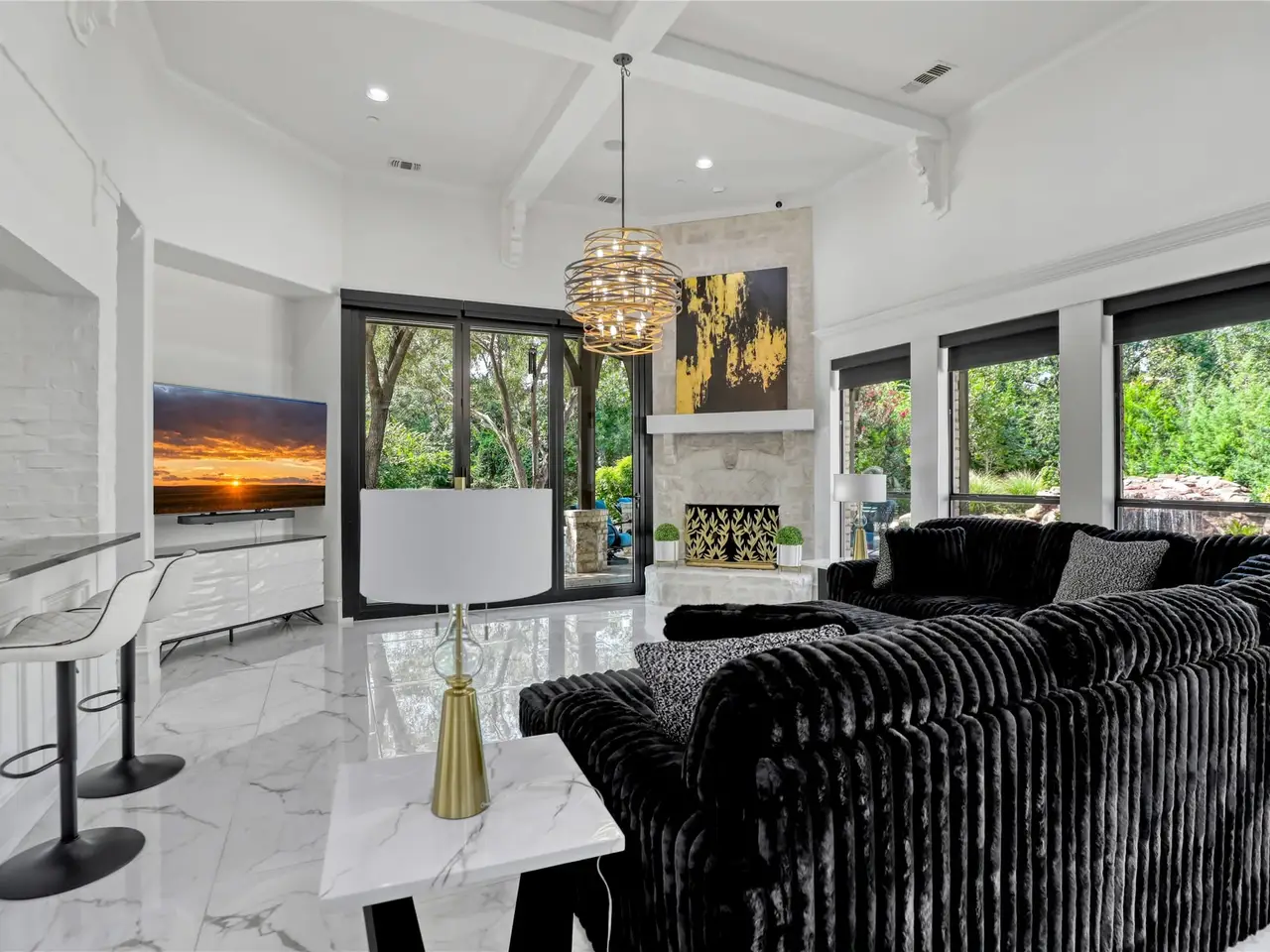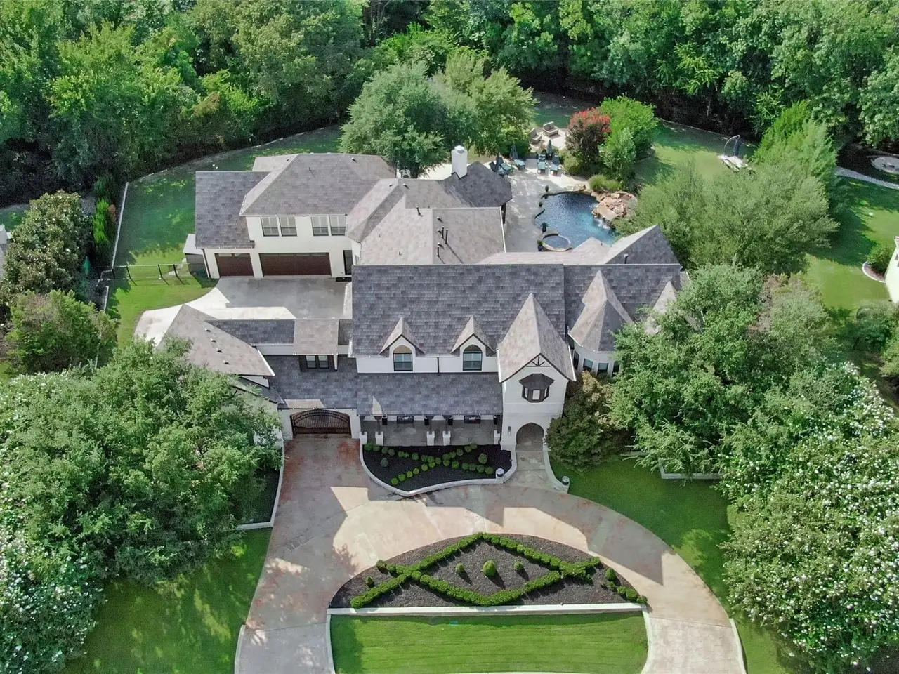 Timeless Elegance Meets Modern Luxury in Exclusive, Gated Stonebridge Estates. Presenting over 7700 sqft situated on a 1.1 acre greenbelt lot with $350k in recent updates! Enjoy breathtaking panoramic treeline views from nearly every vantage point ~ from large picture windows, custom wrought iron & glass doors & retractable sliders in the living room. Sophisticated outdoor entertaining all year long...whether you're relaxing by the waterfall swimming pool-spa, under the pergola-covered patio or warming up by the backyard firepit. This porte cochere plan boasts 4 split garages, 6 bedrooms including an in-law suite down, an elevator to the primary bdrm, an executive study with a fireplace, exercise room or second office, game & media rooms. You'll love the redesigned kitchen featuring Calcatta Quartz counters, Chef Z-Line gas range & custom Zephyr vent hood, a SubZero refrigerator, Wolf appliances including 2 dishwashers & double ovens + 2 Thor beverage drawers. More modern updates in this jewel: Remodeled primary bathroom with an oversized frameless shower, designer tile & lighting, backlit mirrors, a bidet & California closet system; extensive marble-look tile floors; beamed living room ceiling, a wine cellar & wet bar; designer chandeliers, hardware & lighting; remote control shades & plantation shutters. Topping it off--a refreshed exterior + native TX landscaping, replaced HVAC units & pool equipment, whole-house integrated sound & security systems. Your suburban sanctuary awaits ~ as close to perfection as it gets!