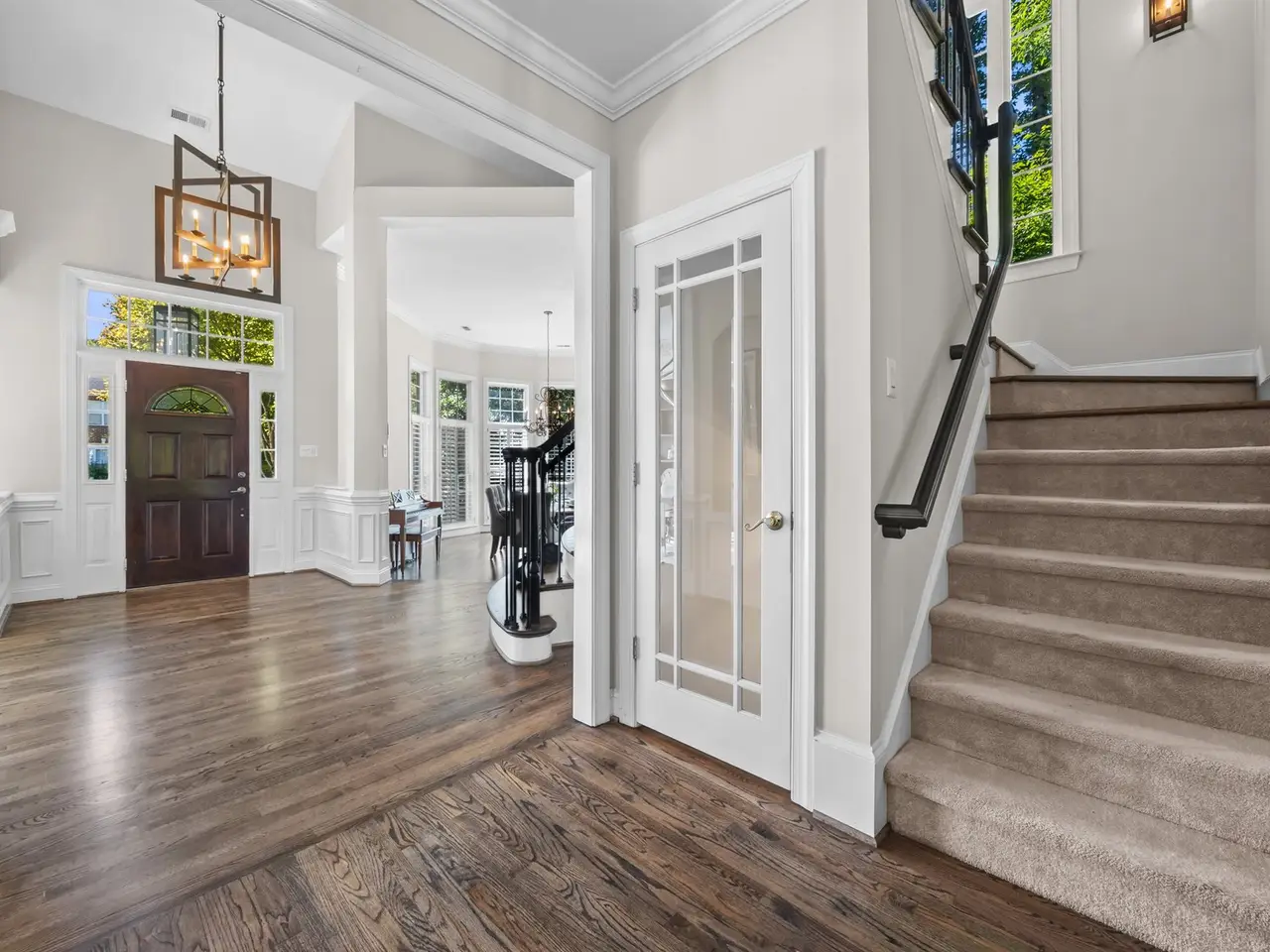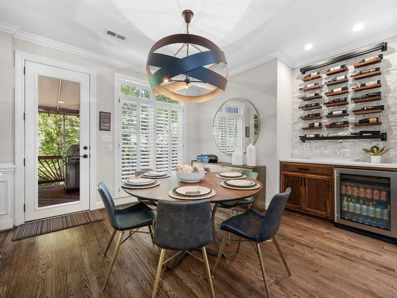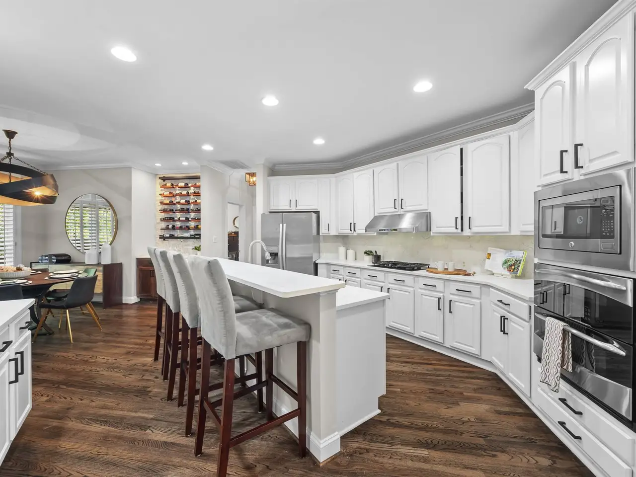 This stunning move-in ready 5-bedroom, 5-bathroom home boasts 5,000 sq ft. Nestled in highly sought-after Providence Plantation, known for its top-rated schools, the home offers unparalleled privacy on a serene, tree-lined street. The open floor plan is complemented by tasteful updates and renovations throughout.The light filled chef's kitchen is equipped with stainless steel GE Profile double wall ovens, an oversized sink, white quartz countertops, and two pantries. Extensive renovations completed in 2020 include the full bathroom on the main floor, beautifully refinished hardwood floors, custom built-in cabinetry in the office, custom wine bar complete with a built-in beverage fridge, laundry/mudroom featuring a convenient drop zone/bench, and large second pantry.Enjoy Sonos surround sound extending throughout the home and onto the deck. Three gas log fireplaces create a cozy ambiance, framed by custom built-in cabinets and a custom mantle (2020). Additional upgrades include an irrigation system for both front and backyard, a new garage door with a quiet motor (2023), new doors leading into the garage and on the main level (2024), a new door opening to the deck (2024), and oversized gutters and downspouts (2024).The finished walk-out basement, thoughtfully remodeled in 2024 with new luxury vinyl plank flooring and fresh paint, offers versatile additional living space. This expansive area is perfect for a home gym with an additional bedroom, and full bathroom, and seamlessly opens to a large stone patio.Step outside to a private backyard oasis, where a covered deck awning overlooks an exceptionally private wooded lot spanning approximately .70 acres. Providence Plantation residents enjoy access to a swim and racquet club and will benefit from easy access to the new 485/Weddington Rd. exit, expected to be completed in 2025. The home's prime location offers convenient proximity to gyms, Harris Teeter, Publix, and an array of other great shops and restaurants.