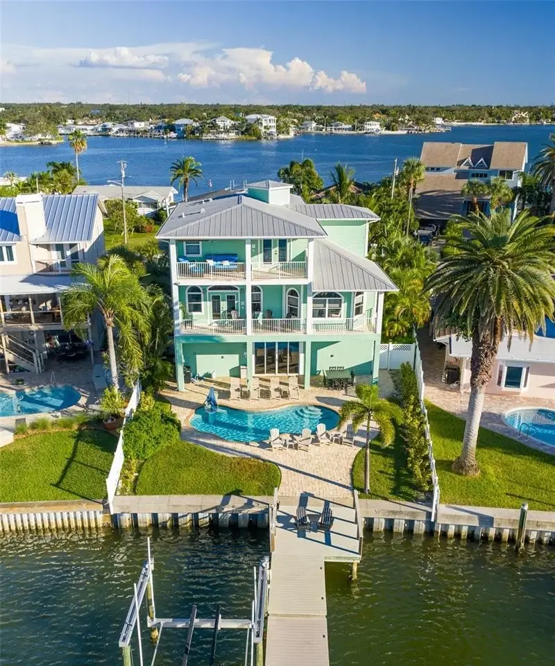 Providing the BEST in waterfront living where extensive space and understated elegance combine to provide a retreat for family and guests, this completely FURNISHED residence is more than just a home; it’s a lifestyle for those seeking a comfortable yet sophisticated setting encompassing the tranquil beauty of waterfront living. A well-designed floor plan comprised of three living levels, offers terraces off each floor capturing fabulous water views, from sunrise to sunset. An elevator services all levels of this spacious floor plan of four bedrooms, three baths, and a versatile ground level recreational area, home gym, storage or flex space. The ideal kitchen provides fine culinary experiences with its center island prep area and ample perimeter space, top-of-the-line appliances, pantry, and fine finishes; this is the heart of the home and sure to impress the most selective chefs. Step inside the primary bedroom sanctuary, a space designed for ultimate indulgence and comfort with its private balcony, massive walk in closet, and adjacent spa-like primary bath area, a haven of relaxation with walk in shower, soaking tub, and twin vanities for effortless morning routines. Customized to perfection, the intricate detail of custom millwork and soft lighting adds to the home's open, airy feel. Exceptional outdoor space is designed for serious water enthusiasts -heated swimming pool, expansive deck area, deep water dockage with boat lift and separate area for kayaks or other marine toys; just minutes away from the Gulf of Mexico for all day cruising, fishing or relaxing. Appreciate the ambiance of this lovely neighborhood in this very desirable seaside town with close proximity to beach, parks, fine restaurants, just a golf cart ride away! Life could not be better than owning this outstanding property with its very lucrative short term rental or vacation home usage. ENJOY IT throughout the year as your primary residence or as an investment property when you're not using it providing significant financial and personal benefits. Isn't it time to live the Florida dream?
