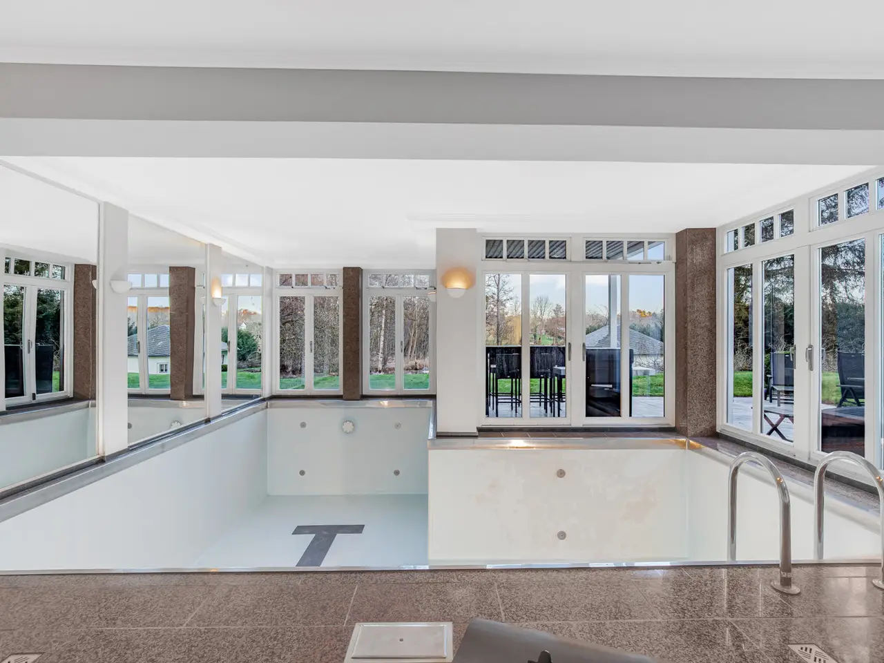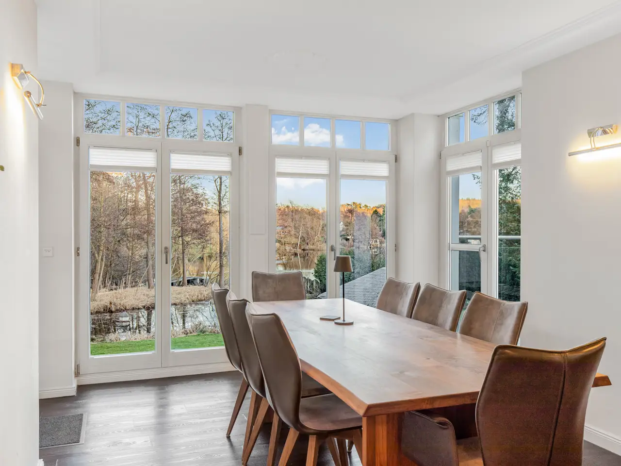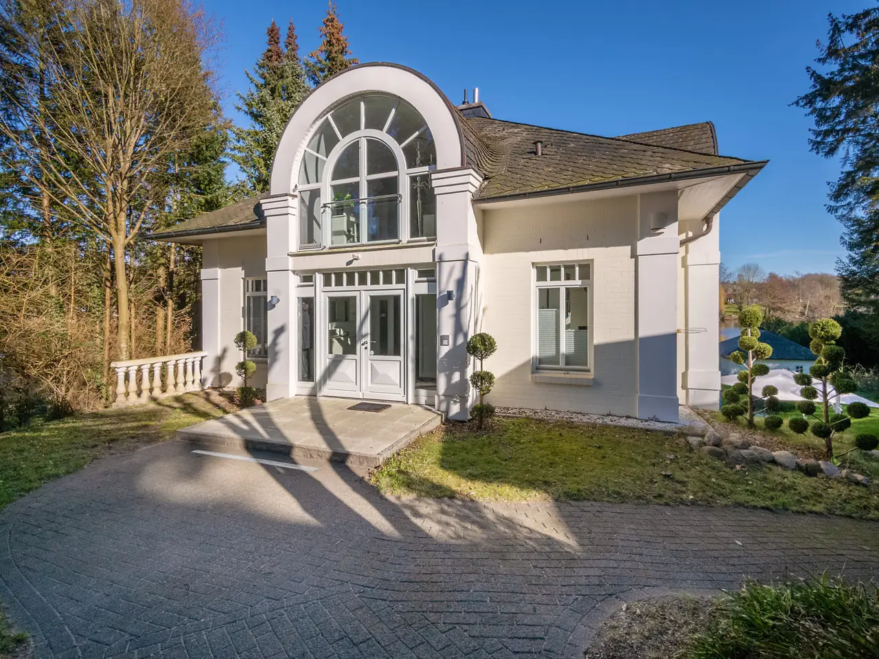 This exclusive property offers a luxurious living atmosphere on a living area of approx. 260 m² and a spacious plot of approx. 3400 m². Built in 2001, the villa is in a very well-kept condition and impresses with its high-quality furnishings. The park-like, yet low-maintenance plot and the private lake access ensure an impressive and sheltered residential location with a magnificent view over the garden and water. The property is divided into a total of six rooms, including four bedrooms, which provide a pleasantly bright living atmosphere thanks to their brightness and large glass surfaces. Three modern daylight bathrooms offer comfort and functionality in equal measure. One of the many highlights is the separate guest or hobby house, which is ideal for individual uses, such as a home studio, atelier or additional space for guests. The indoor swimming pool and a sauna on the garden level also contribute to relaxation and recreation, inviting you to enjoy extensive wellness. The outdoor area has been carefully designed and brings out the character of a park-like garden. On the spacious terrace, you can enjoy the benefits of the peaceful surroundings and spend relaxing hours outdoors. The garage building with carport and additional cellar offers enough space for two vehicles and additional storage facilities or a small workshop. The technical and visual condition of the property is very good, all furnishings and installations have been carefully maintained and can be taken over without further effort. The luxurious furnishings of the villa, combined with the unique surroundings and the well thought-out room concept, will appeal particularly to those looking for a prestigious home that combines tranquillity and exclusivity.