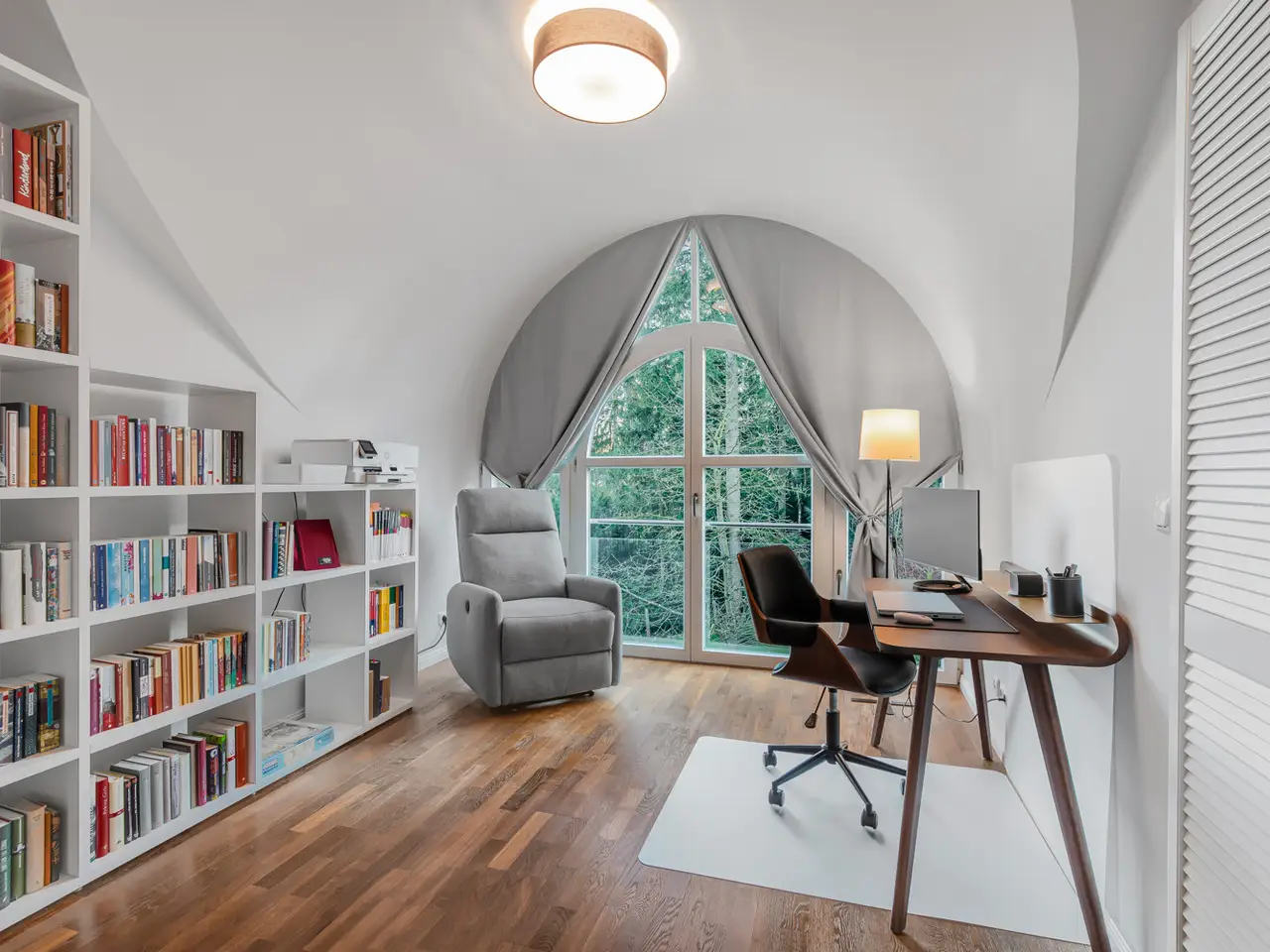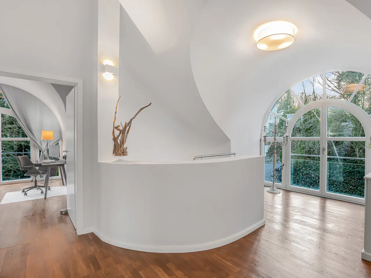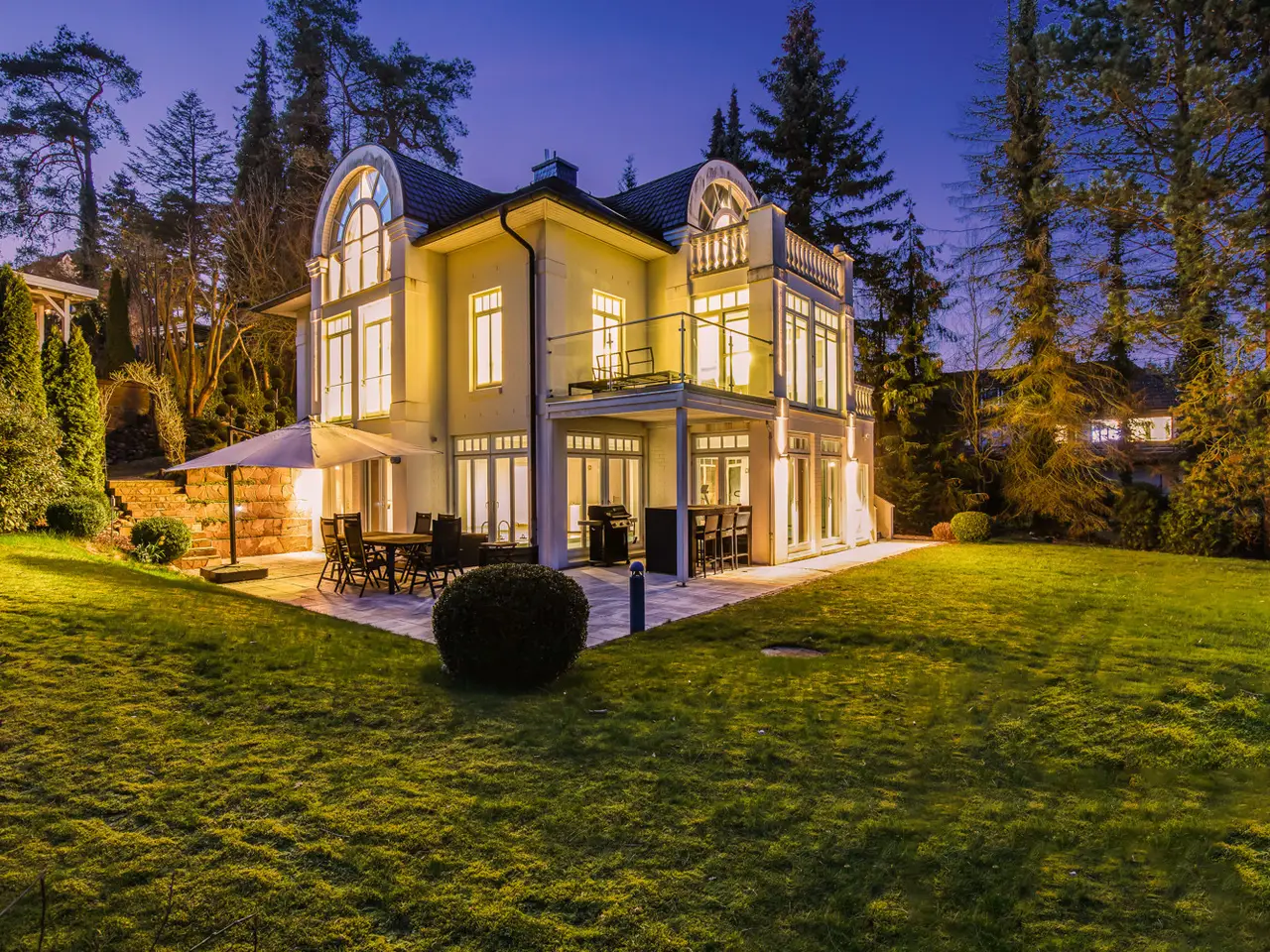 This exclusive property offers a luxurious living atmosphere on a living area of approx. 260 m² and a spacious plot of approx. 3400 m². Built in 2001, the villa is in a very well-kept condition and impresses with its high-quality furnishings. The park-like, yet low-maintenance plot and the private lake access ensure an impressive and sheltered residential location with a magnificent view over the garden and water. The property is divided into a total of six rooms, including four bedrooms, which provide a pleasantly bright living atmosphere thanks to their brightness and large glass surfaces. Three modern daylight bathrooms offer comfort and functionality in equal measure. One of the many highlights is the separate guest or hobby house, which is ideal for individual uses, such as a home studio, atelier or additional space for guests. The indoor swimming pool and a sauna on the garden level also contribute to relaxation and recreation, inviting you to enjoy extensive wellness. The outdoor area has been carefully designed and brings out the character of a park-like garden. On the spacious terrace, you can enjoy the benefits of the peaceful surroundings and spend relaxing hours outdoors. The garage building with carport and additional cellar offers enough space for two vehicles and additional storage facilities or a small workshop. The technical and visual condition of the property is very good, all furnishings and installations have been carefully maintained and can be taken over without further effort. The luxurious furnishings of the villa, combined with the unique surroundings and the well thought-out room concept, will appeal particularly to those looking for a prestigious home that combines tranquillity and exclusivity.