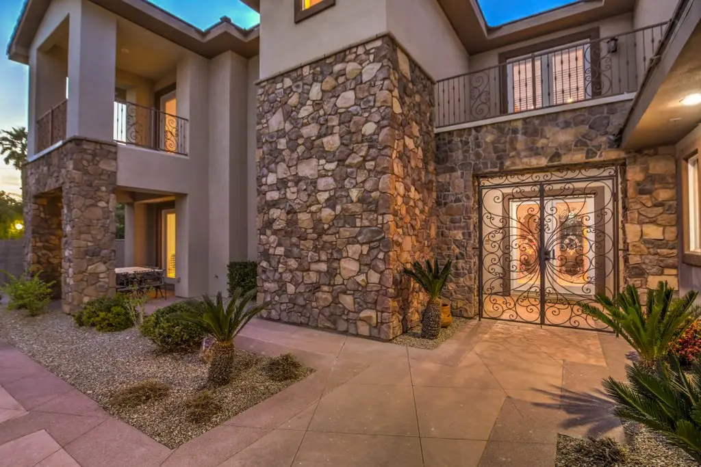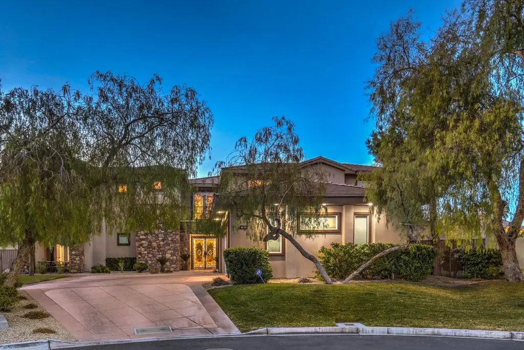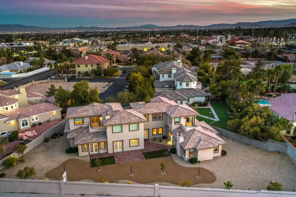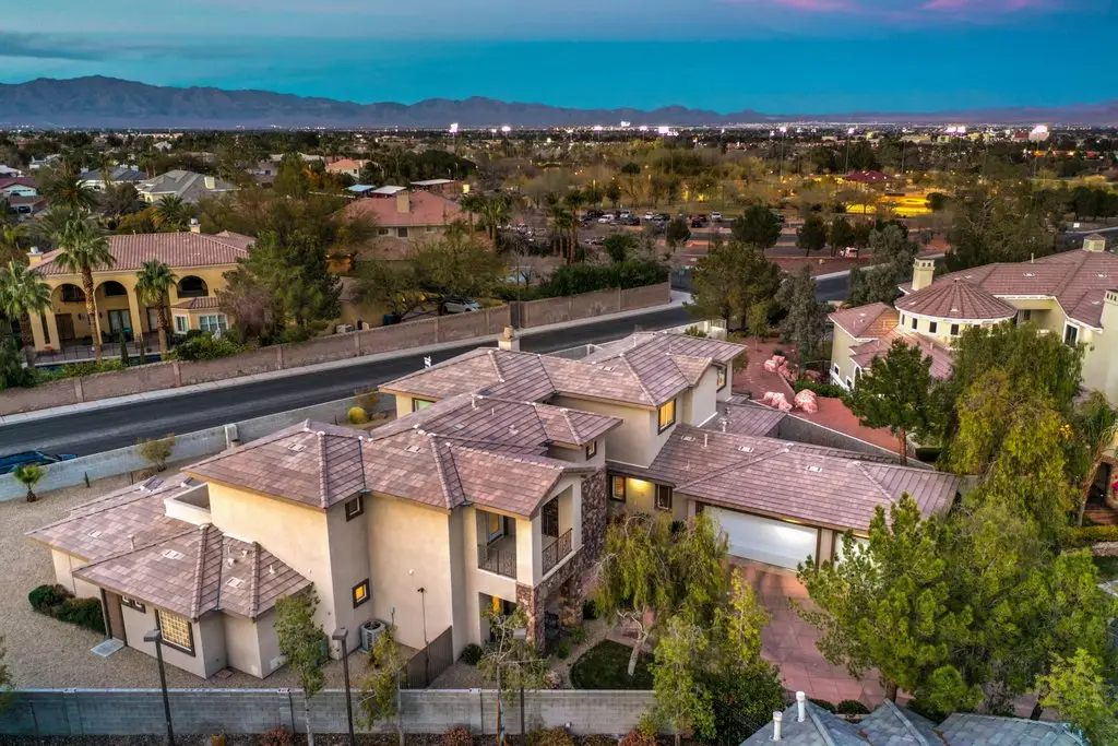 In beautiful Belcastro Estates lies this stately mansion, just shy of 6,000 square feet, situated between two larger homes on nearly half an acre. One of seven grand homes in this exclusive gated subdivision, this home is brimming with high-end millwork from master craftsmen. Highly upgraded by its current owners, it is ideally located between the world famous Las Vegas strip and Summerlin, and features: en suite living in each of its five oversized bedrooms, with a minimum 10-foot ceiling height in every room, downstairs primary suite with an immense three-headed shower, steam shower, large platform Jacuzzi, his and hers private commodes, two large walk-in closets and a spectacular fireplace, large formal dining room with detailed millwork, white gourmet entertainer’s kitchen with newer high end appliances with two refrigerator/freezers, large library which can hold thousands of books, CDs, DVDs, etc., and a massive landscaped backyard on timed sprinklers with multiple pool sites.