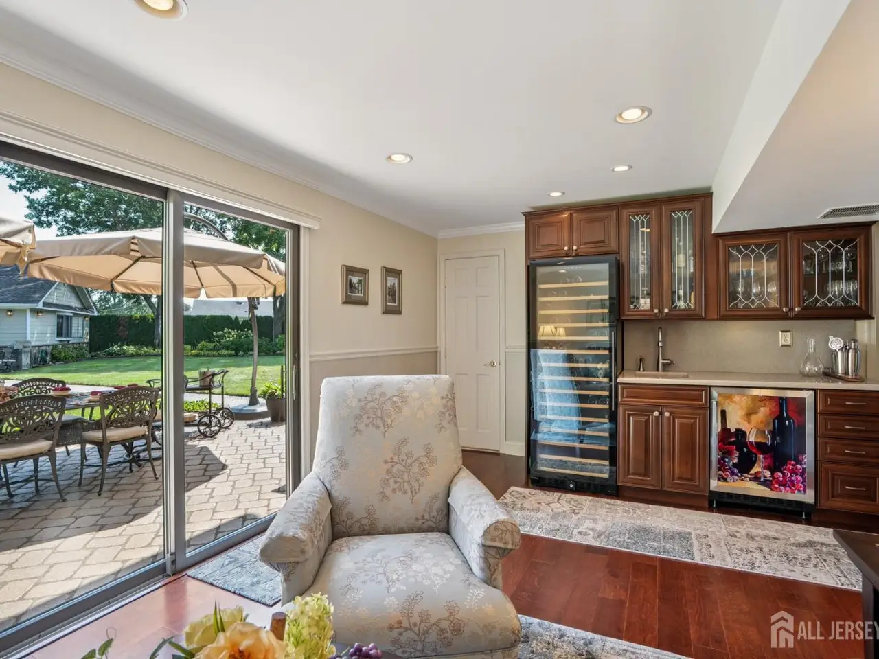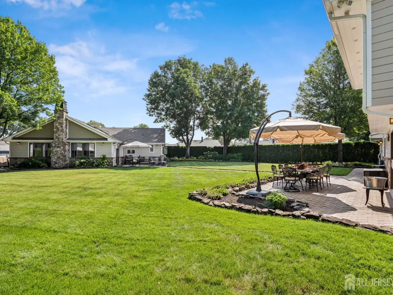 Your Private Poolside Paradise Awaits! At the heart of this property lies a one-of-a-kind all-season pool house retreat-a true destination in itself with over 2,000 sq. ft. of resort-style living. Enjoy a 16' x 32' in-ground pool, framed by elegant finishes and anchored by a floor-to-ceiling stone fireplace that brings warmth and ambiance year-round. A dedicated game room with pool table ensures endless entertainment, while the fully equipped kitchenette is perfect for cocktails, snacks, and poolside dining. A full bathroom with washer/dryer and large soundproof windows make the space as practical as it is luxurious. Whether you're hosting lively gatherings, unwinding with family, or enjoying a private swim, this pool house is designed for unforgettable entertaining and total relaxation. Complementing the pool house is a beautifully maintained 4-bedroom, 3.5-bath home with custom upgrades, Corian countertops, a lower-level family room with wet bar, and a spacious primary suite. Outdoors, professional landscaping with over 300 arborvitae, underground sprinkling system, multiple patios with pavers, and accent lighting create an ideal setting for both privacy and entertainment. Close to shopping, to New Jersey Transit, and major highways. This property is more than a home-it's a lifestyle.