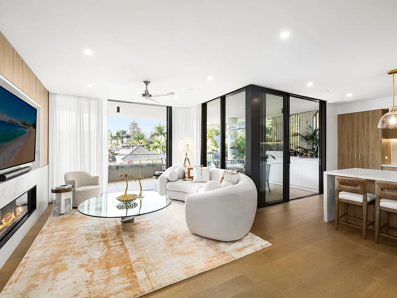 Inspect By Appointment A masterwork of contemporary coastal design, The Palms by Laxale sets a new benchmark for luxury apartment living on the Northern Beaches. Completed in 2023 and positioned just steps from the surf and sand, this expansive 337sqm residence embodies enduring craftsmanship and refinement in every detail. A seamless interplay of premium natural materials, texture and soft curves creates a mood of timeless sophistication, while state-of-the-art finishes and bespoke joinery elevate every space. The light-filled open-plan living domain flows effortlessly to a north-facing entertainer's terrace with outdoor kitchen. Three serene bedrooms include a king-sized main retreat opening to a private garden terrace, complemented by exquisite stone-detailed bathrooms. With lift access and a quadruple garage offering vast storage, this exceptional home unites luxury, functionality and effortless beachside living – just steps from village conveniences, cafés, the cinema and Collaroy's golden shoreline. - Luxury 337sqm residence within The Palms Collaroy, completed 2023 - Premium coastal craftsmanship and architectural detail throughout - Expansive open living with gas fireplace framed in engineered stone - Seamless connection to deep sunlit north-facing entertainer's terrace - Outdoor kitchen with double door bar fridge, Beefeater BBQ and wok burner - Kitchen with statement stone island, butler's pantry, Subzero fridge and wine fridge - Wolf Professional gas cooktop, teppanyaki plate oven and steamer - Luxurious main retreat with walk-in robe, ensuite and private terrace - Bathrooms with Parisi tapware, underfloor heating, heated towel rails - Auto garden irrigation, EV charger, fob/card/key access, lift access - Automated blinds, ducted zoned air, HIK security and intercom system - Quadruple car garaging plus an enormous 23sqm storage room