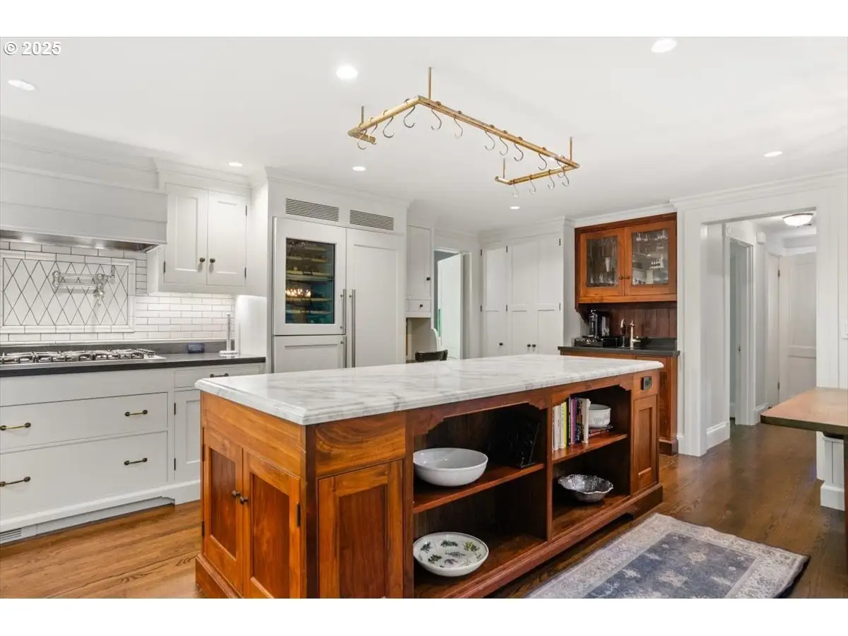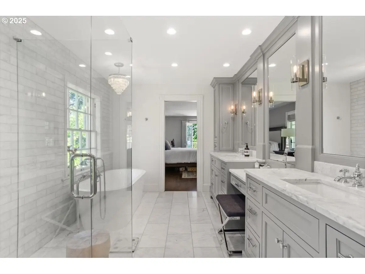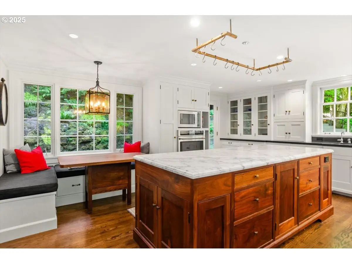 Portland Heights Retreat with City Views & ADUWelcome to this beautifully reimagined two-story home in the coveted SW Hills/Portland Heights neighborhood. Every detail has been thoughtfully updated, blending modern luxury with timeless charm.Step inside to a light-filled main level with floor-to-ceiling windows, multiple fireplaces, and elegant French doors that open to a private walk-out patio—perfect for entertaining or enjoying peaceful evenings. The chef’s kitchen is a true showpiece, featuring a pot filler, banquette seating, custom cabinetry, and premium finishes designed for both everyday living and gourmet cooking. A stylishly updated half bath with a custom marble counter completes the main floor.Upstairs you will find three bedrooms with en suites and a convenient upstairs laundry closet. The primary suite is a luxurious retreat, boasting a wall of built-in cabinets, a Restoration Hardware crystal light fixture, and French doors leading to a private patio with sweeping downtown views. The fully finished basement offers peace of mind with professional waterproofing and earthquake upgrades, plus new plumbing, electrical, and a high-efficiency water heater. The basement has an additional laundry space and dual wine refrigerators. A standout feature is the separate ADU with a private entrance—perfect for extended family, guests, a home office, gym, or even short/long-term rental income.