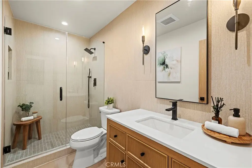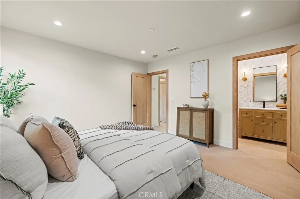 Welcome to this stunning custom-built home in Encino, perfectly situated on a generous lot! This organic modern 4-bedroom, 3.5-bath residence offers nearly 2,500 sq ft of beautifully designed living space with an open-concept indoor/outdoor layout—perfect for entertaining. From the moment you arrive, the wide frontage impresses with its expansive driveway and striking front entrance. Step inside and you’ll be greeted by a bright, airy floor plan that immediately sets the tone for sophisticated living. The formal living room at the front of the home is ideal for elegant gatherings, while the expansive great room offers the ultimate space for hosting luxurious indoor/outdoor events. The kitchen is a true showpiece, featuring floor-to-ceiling wood cabinetry, exquisite Taj Mahal quartzite countertops, and a full walk-in pantry. Adjacent to the kitchen, the sun-drenched dining area seamlessly connects to an oversized family room, where built-ins, custom shelving, and a cozy fireplace create the perfect evening retreat. Panoramic sliding doors open to a spacious deck and large backyard, creating effortless flow and extending your living space outdoors. The extra-large primary suite is a private sanctuary, complete with a walk-in closet and a luxurious spa-style bathroom featuring a double vanity and oversized shower. A secondary suite includes its own private bathroom, while two additional spacious bedrooms share a beautifully appointed bathroom at the front of the home. A separate laundry room and stylish powder room round out the interior amenities, offering total convenience and function. With thoughtful attention to detail and a well-planned layout, this home is designed to impress—featuring wood doors throughout, high ceilings, recessed and accent lighting inside and out, brand-new appliances, a finished garage, EV Plug, an oversized driveway, and lush landscaping. Plus, there’s plenty of space to add a sparkling pool - seller has a permit ready for you! This home truly has it all—style, space, and sophistication. ADT Alarm included with 1 year subscription. Welcome home!