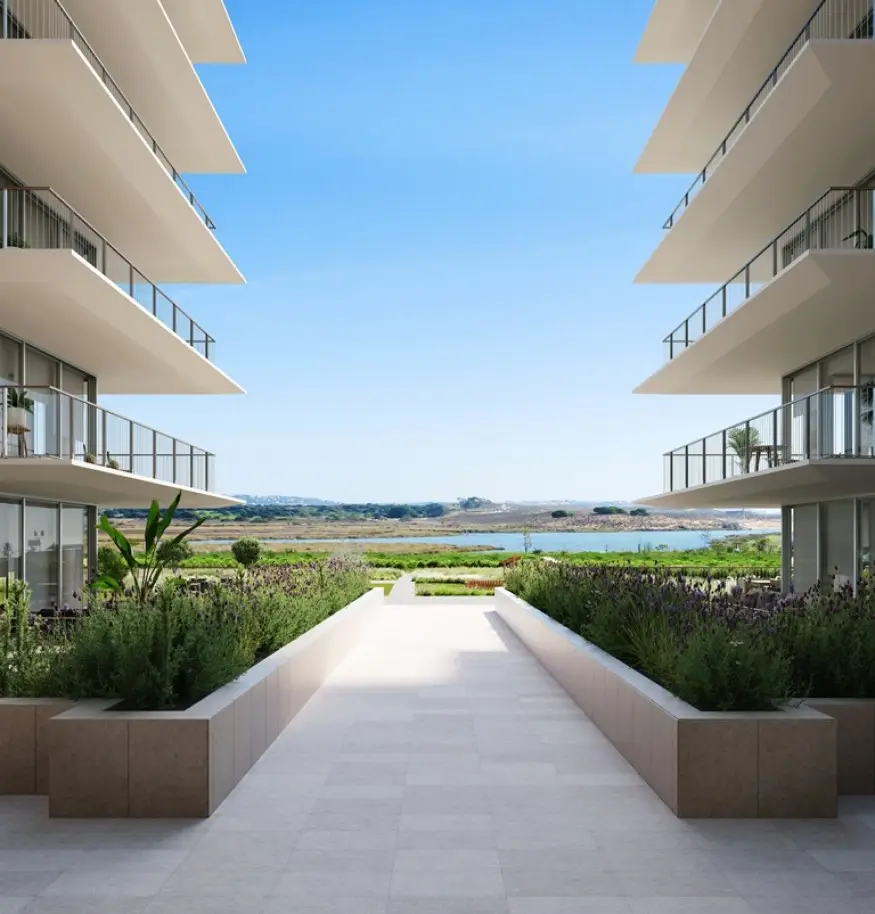 On the seafront, next to the beach and Lagoa dos Salgados, in Armação de Pera, in the Algarve, we find this modern two-bedroom apartment. The apartment is part of a new and exclusive development called Bayline. The apartment was designed to combine comfort and functionality with luxury, high quality construction and attention to detail. This fantastic apartment consists of two large suites. The master suite has a living room, adjacent to the sleeping area, which leads to the dressing room and large bathroom, and the other suite has a large built-in closet. The fully equipped kitchen is compact and functional, directly connected to the laundry room and the open-plan living area, with access to the fantastic terrace, which runs along part of the apartment, has space for relaxation, leisure and socializing, always framed by the beautiful view of the garden, the bay and the beach. The development offers residents exclusive use of a large outdoor swimming pool, a spa with a heated indoor pool, sauna, Turkish bath and gym. Residents can also take advantage of the concierge service and private parking with a charging station for electric vehicles, as well as 2 hectares of lush garden. CHARACTERISTICS:Area: 288 m2 | 3 105 sq ft Useful area: 81 m2 | 874 sq ft Bedrooms: 2 Bathrooms: 3 Garage: 2 Energy efficiency: B FEATURES: 2 bedrooms Equipped kitchen Terrace Outdoor swimming pool Heated indoor pool Garden Private parking