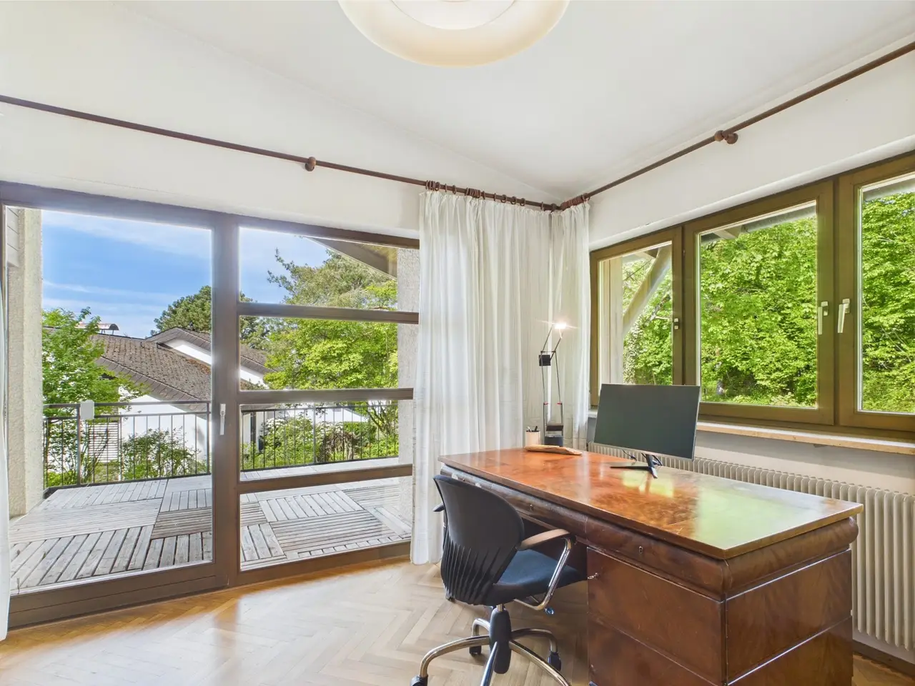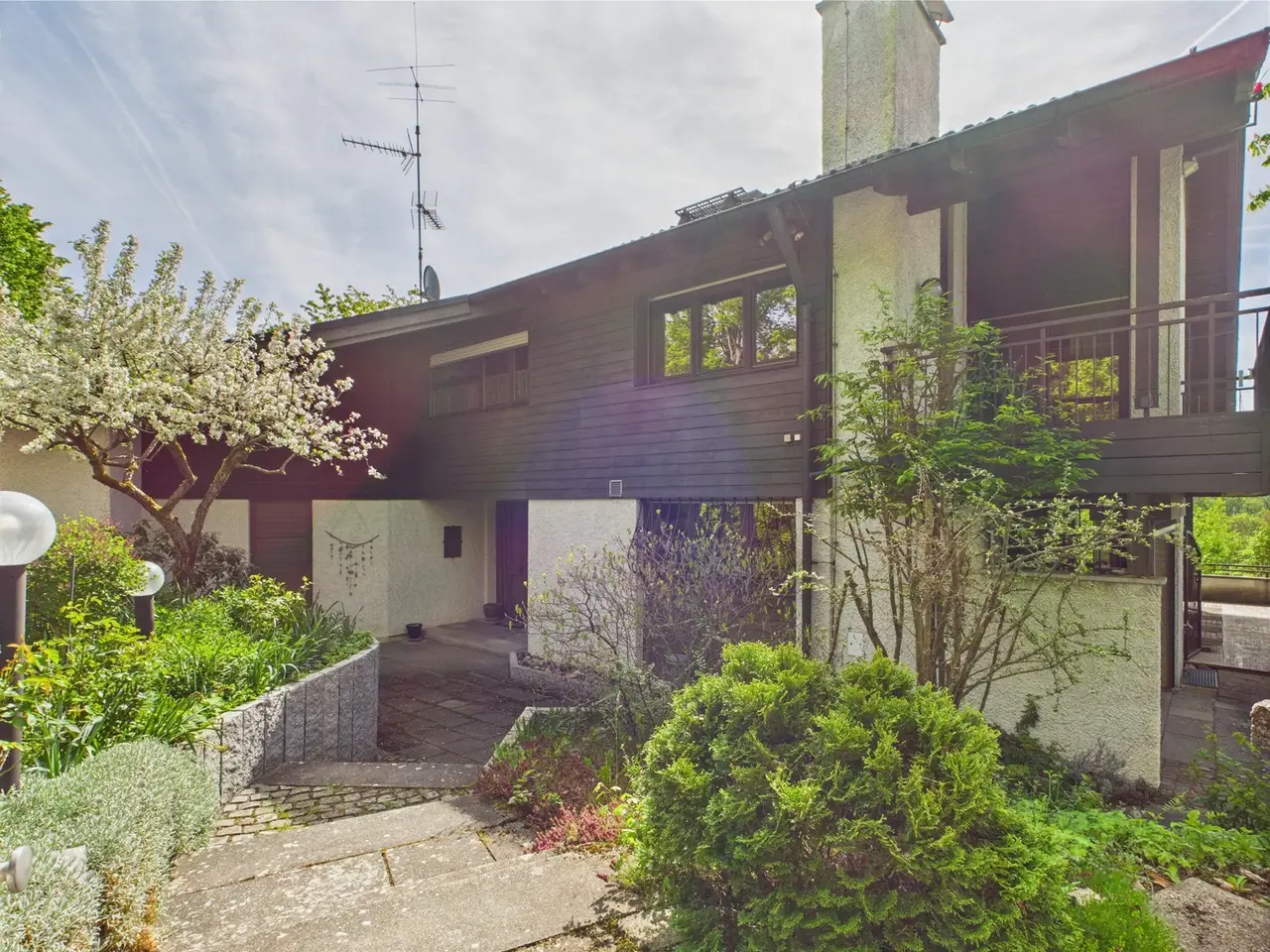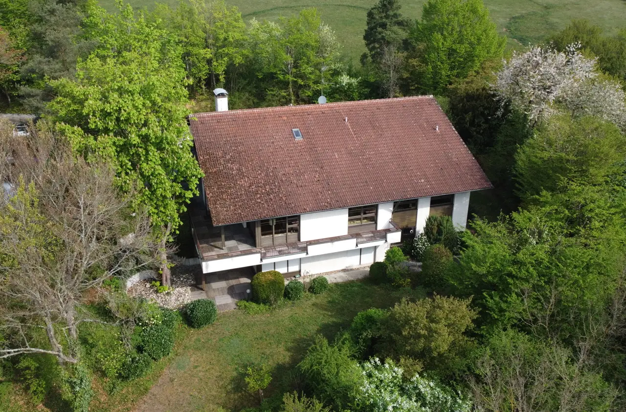 Bamberg / Wildensorg Plenty of space for a family and as a multi-generational home – Quiet location directly on the nature reserve – Guest apartment – ​​Separate children's area These are some of the keywords to describe this impressively large yet immediately cozy house, located at the end of a private road right on the edge of the Altenburg / Rothof nature reserve and the Michelsberg Forest in the Bamberg district of Wildensorg. The villa was built in 1979 and extends over three floors with a generous total living space of approximately 226 m². The property itself covers an area of ​​1942 m² and offers a large, secluded garden surrounded by greenery. Due to its size, layout, location, and flexible design options, this property is ideal for families looking for plenty of space in the countryside or as a multi-generational home. It's also an exciting option for people looking for a retreat with enough space for visitors, good connections to the city, and nature right on their doorstep, and is well worth a visit. The architect-designed house offers a variety of options for realizing your living ideas – from a customized room layout to utilize the basement and storage rooms to the future use of the existing granny flat. The current features include a cozy, light-filled library and a pre-prepared swimming pool area. Two generously sized balconies and two terraces allow for sun and relaxation around the clock. The property is almost completely surrounded by greenery and largely fenced – thus offering ideal conditions for dog owners. The spacious rooms in the basement, attic, and outdoor area offer children of all ages ample space to play. The property is located in an exceptionally quiet yet central location. The small private road is particularly quiet and secluded, with only one direct neighbor. The property borders the Rothof nature reserve. This is located on a high plateau southwest of Bamberg and offers impressive views, especially in good weather. This means you can set off for beautiful, long walks right from your front door, or simply enjoy a picnic in the nearby meadows under the fruit trees. Arrange a viewing today and see for yourself the charm and diverse possibilities for the future development of this villa in the countryside.