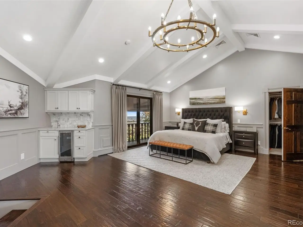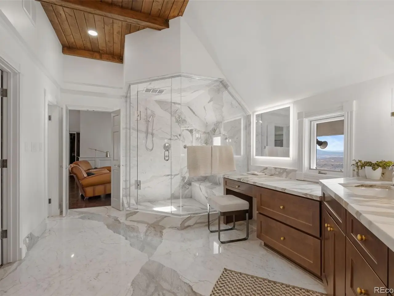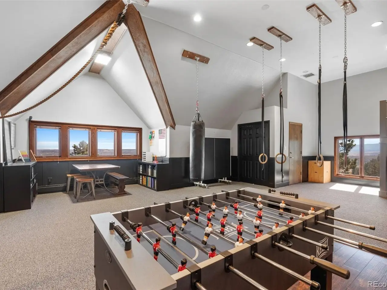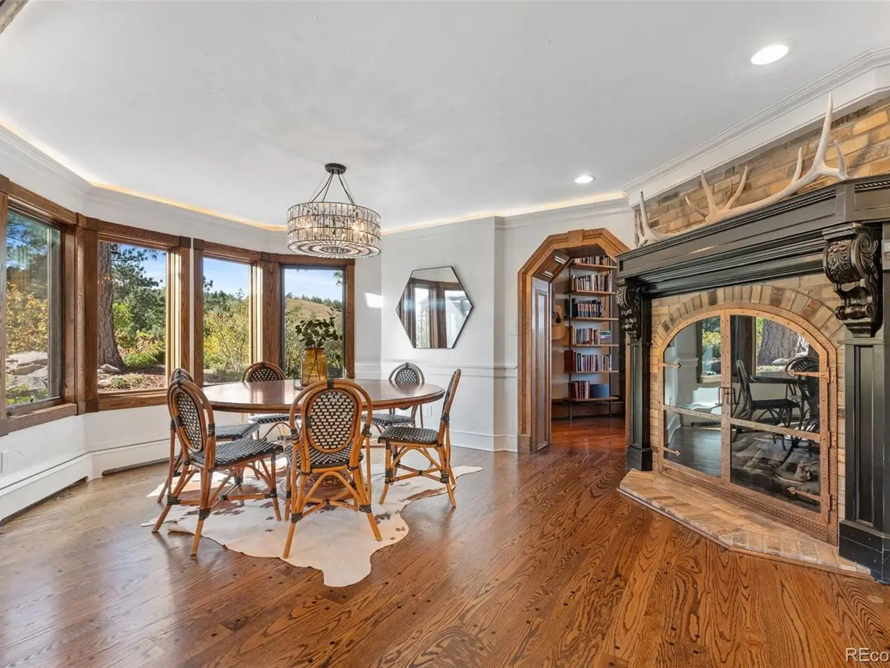 Situated atop 40 acres of breathtaking Colorado landscape, this fully renovated Tudor estate in Sedalia offers an unparalleled blend of sophistication and country charm in a private setting. The gourmet kitchen has been artfully reimagined with top-of-the-line finishes, fixtures, and appliances, featuring a rare artifact from the French Revolution as the cooktop backsplash. Charm and intrigue continue to flow throughout the home, highlighted by remarkable details such as an authentic stage coach bar, historic period fixtures, stunning chandeliers, and custom stonework, complemented by five inviting fireplaces and elegant marble flooring. This residence boasts a striking two-story glass atrium that invites natural light and panoramic views of the majestic mountains and Downtown Denver. The expansive outdoor living areas are equally impressive, showcasing meticulously landscaped grounds complete with low-maintenance turf, serene water features, sports field, grazing pasture, ATV track, shooting range, treehouse, and walking trails that enhance the estate's tranquility. Additional amenities include a spacious bonus/playroom, a state-of-the-art home theater, and two versatile outbuildings, ideal for vehicles, animals, or potential caregivers accommodations. The expansive primary suite is the epitome of luxury with dual walk-in closets, sitting area, fireplace, coffee bar and five piece marble bathroom. The generously proportioned secondary bedrooms are perfect for children and guests. For those with a passion for sustainable living, this estate features a goat and chicken farm, adding a unique touch to this luxurious retreat. Situated just 25 minutes from the Denver Tech Center and a mere 12 minutes from Whole Foods, this property ensures both privacy and accessibility. This exceptional estate is a rare opportunity, embodying the height of luxurious mountain living while providing countless amenities for a lifestyle of comfort and seclusion.
