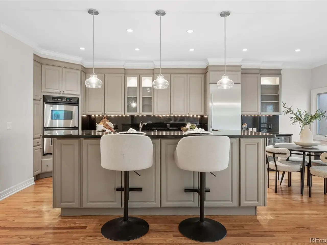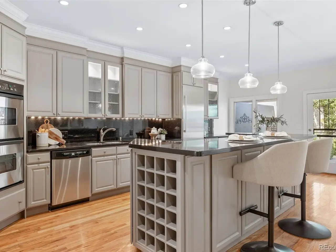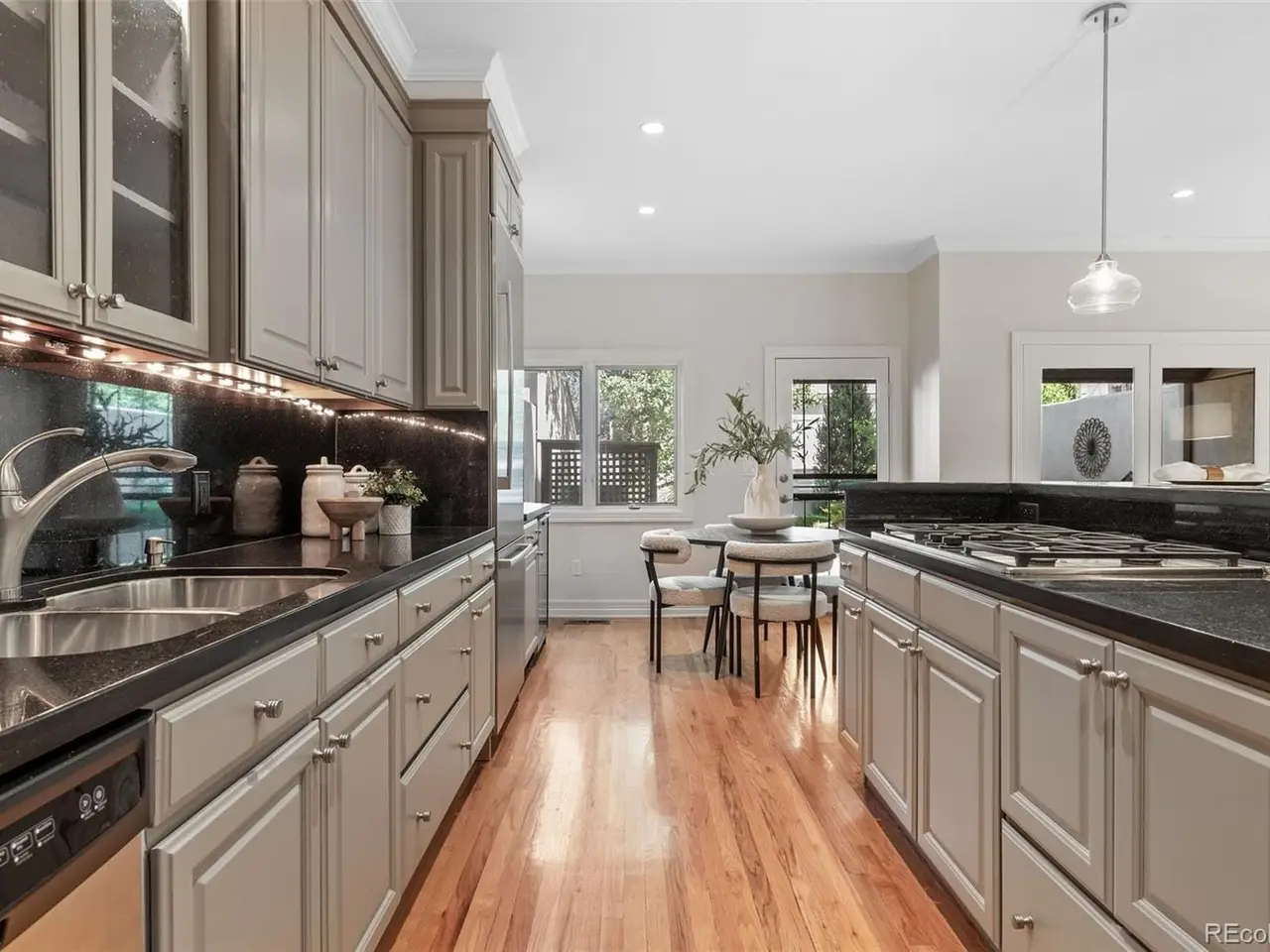 Positioned in the heart of Cherry Creek, this home offers an unparalleled blend of timeless elegance and striking sophistication. Thoughtfully designed, the floor plan welcomes an abundance of natural light through its numerous windows. The spacious main level is ideal for entertaining and relaxed family gatherings, featuring hardwood floors, crown molding, beautiful paint finishes, and exquisite new light fixtures. Sunlight beams into the study, adjacent to the inviting living room adorned with a gas fireplace flanked by built-in bookshelves, and open to a generous dining room. The chef's kitchen features gorgeous newly-painted cabinetry, center island, and stainless appliances, adjacent to the breakfast area and family room, both looking out to a private, lush yard and patio, perfect for relaxing and seamless indoor to outdoor living. Upstairs, the primary suite is a sanctuary, complete with its own private balcony, sky-lit five-piece bath, and two walk-in closets. Two additional bedrooms, four-piece full bath, and upper laundry complete the second level. The finished lower level hosts a spacious en suite bedroom with full bath, mirrored exercise room, lower laundry room, additional storage, an oversized two-car garage with built-in cabinetry, plus two parking spaces and one on-street parking permit. This phenomenal property is situated in a prime Cherry Creek location on a gorgeous, tree-lined street.