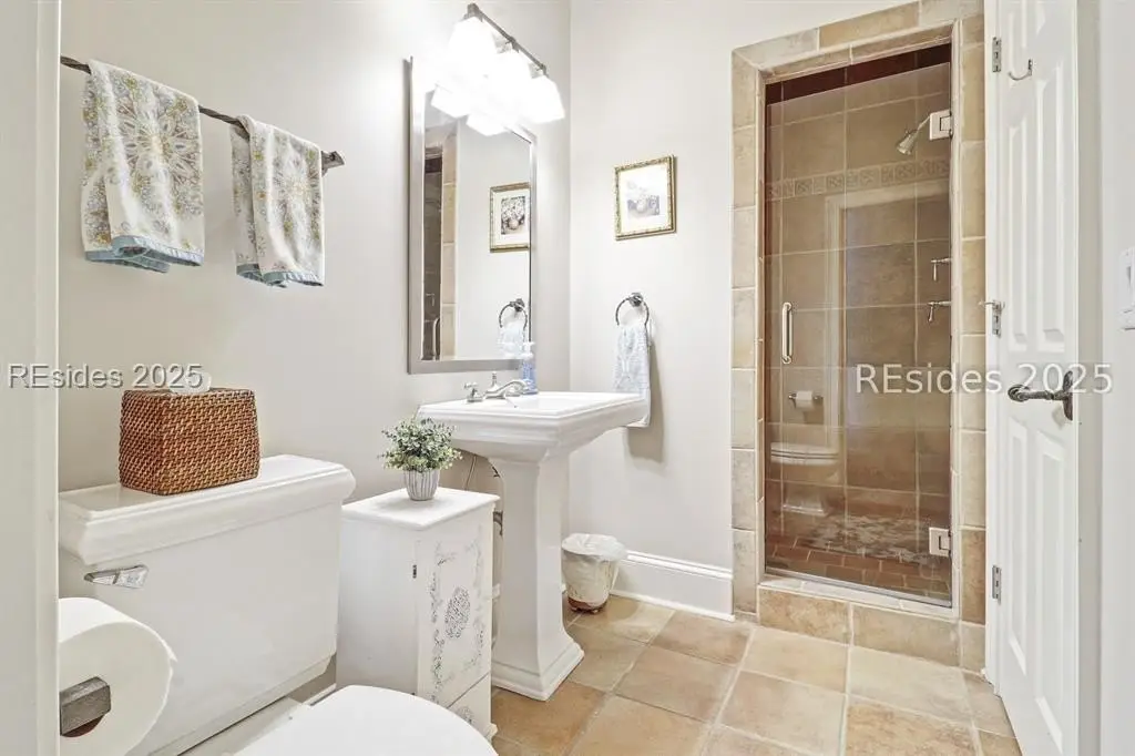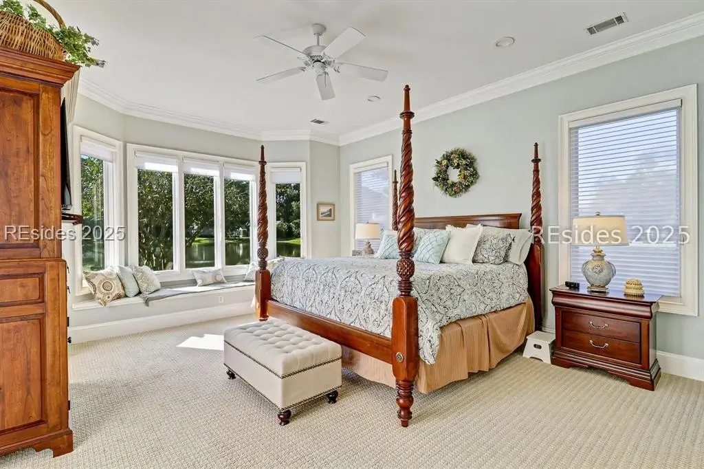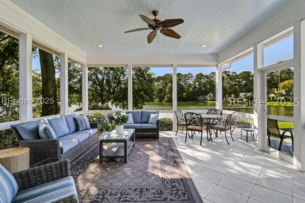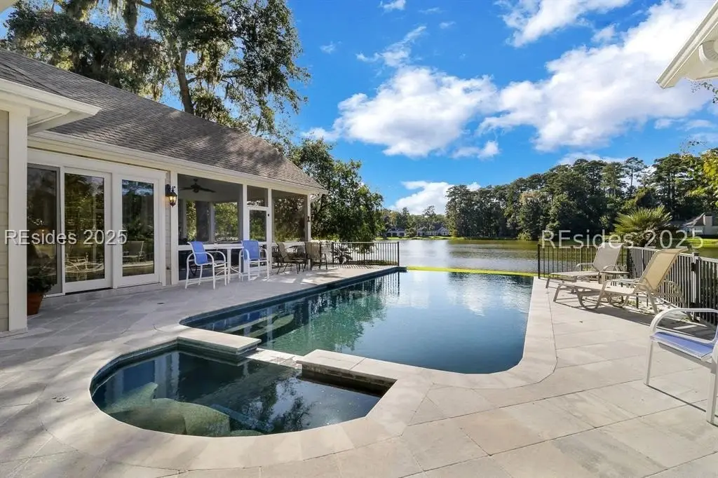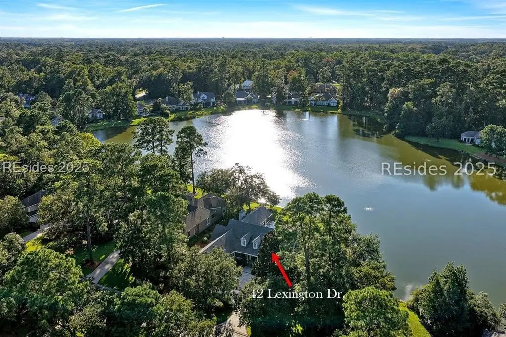 Arriving at 42 Lexington in Belfair, you will see that the hardiplank home bursts with Low Country charm. A circular tabby driveway surrounded by lush mature landscaping brings one to the Southern exterior of the home. Upon entering you begin your peaceful and calm journey of being "home". The infinity edge pool appears to flow right into Hickory Lake creating a feeling of serenity. This 4 bedroom 4 bath home has plenty of room for expansion in the large bonus room over the garage to create another bedroom if needed allowing one of the 4 bedrooms on the first floor to be an office. Primary bathroom update has just been completed. The living/dining room open concept features a soaring beamed ceiling filled with light. Off the kitchen/great room is a screen porch. Gourmet kitchen with Wolf oven/stove, Sub Zero refrigerator. The home is perfect for entertaining friends and family whether a pool party, BBQ dinner, cocktail party or just spending quiet time with yourself and loved ones. You will not be disappointed viewing this home and considering it for your own.